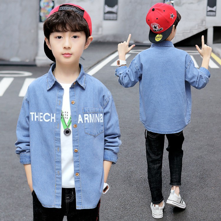소년 소프트 데님 가을 긴팔 셔츠 2025 새로운 소년 봄, 가을 유행 재킷 어린이 느슨한 셔츠스토어 가기