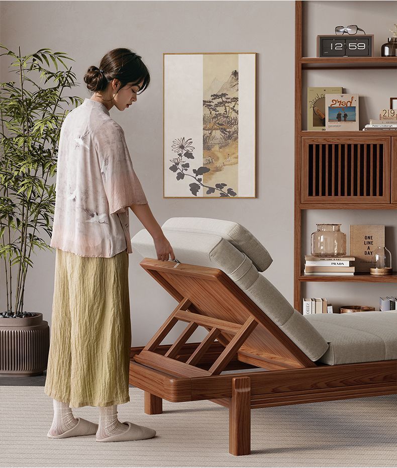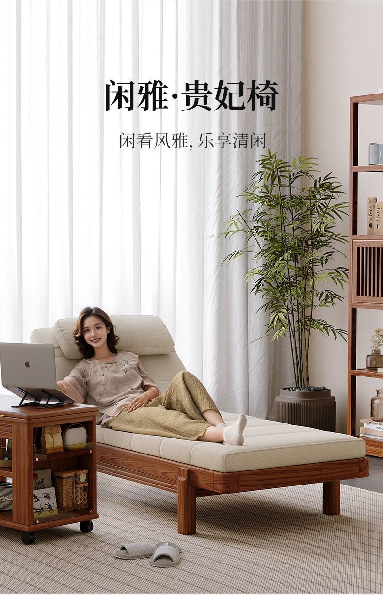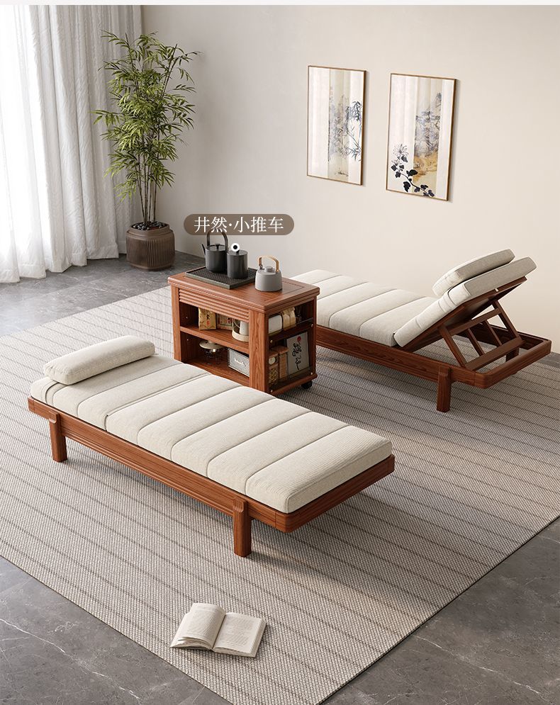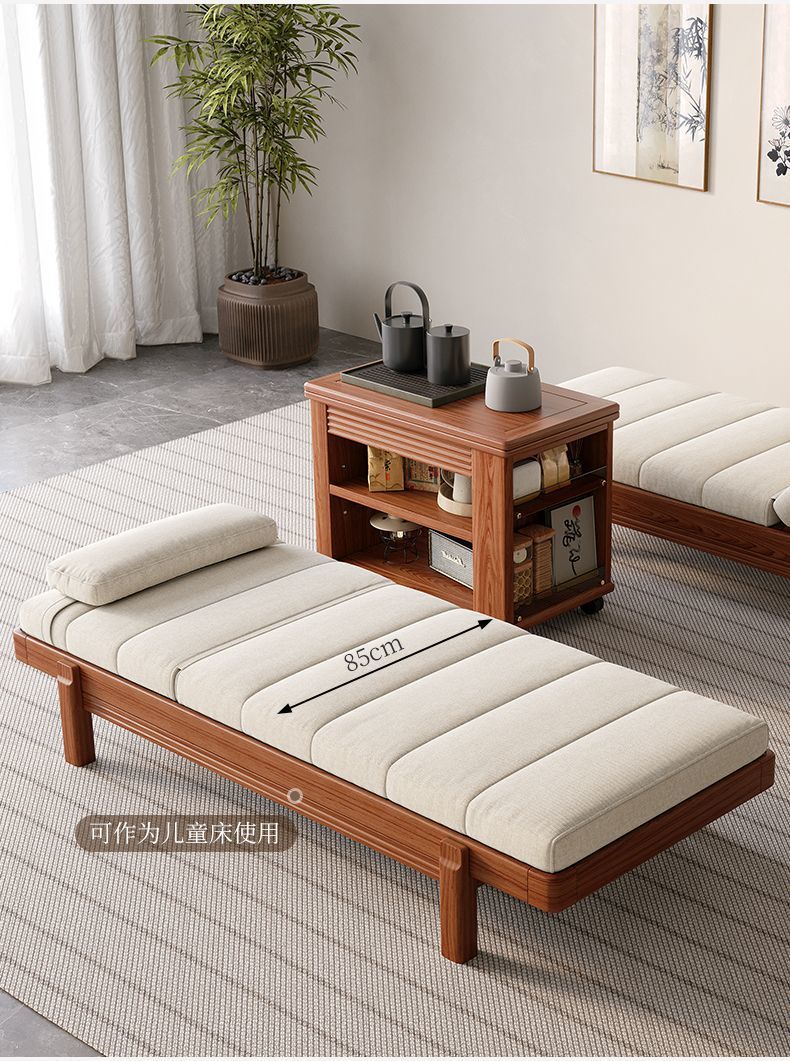단단한 나무 새로운 중국 스타일의 소파 침대 작은 아파트 거실 침실 연구 발코니 현대 간단한 긴 의자 침대 이중 목적 안락 의자