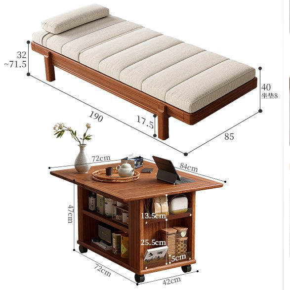 • 원목 소파베드(쿠션 없음) + 잘 정리된 접이식 커피 테이블