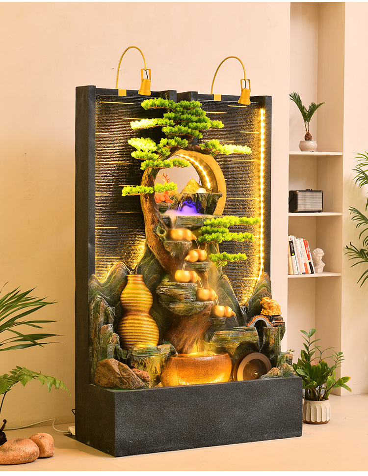 흐르는 물 분수 벽 커튼 물고기 탱크 사무실 안뜰 물 시스템 조경 장식품 거실 풍수 휠 순환 물 장식