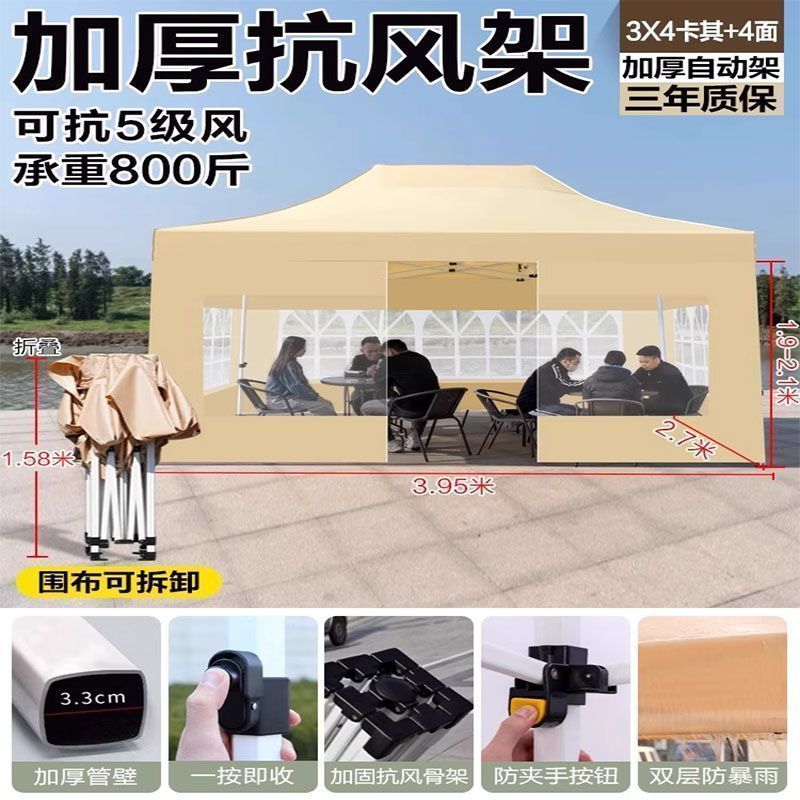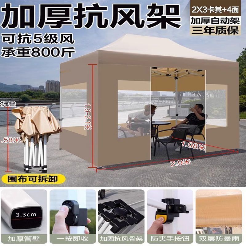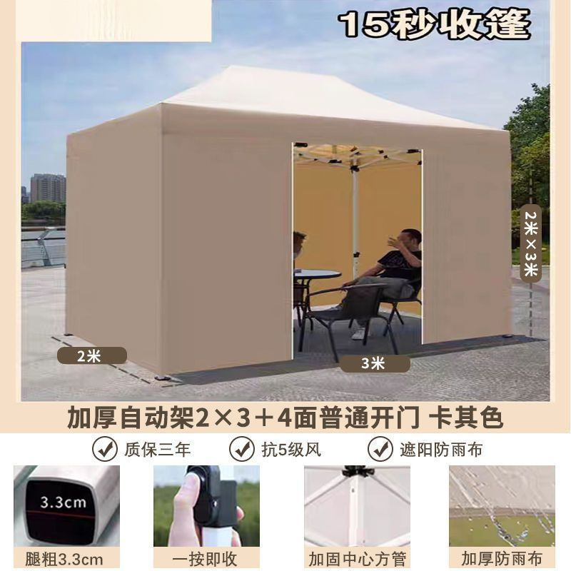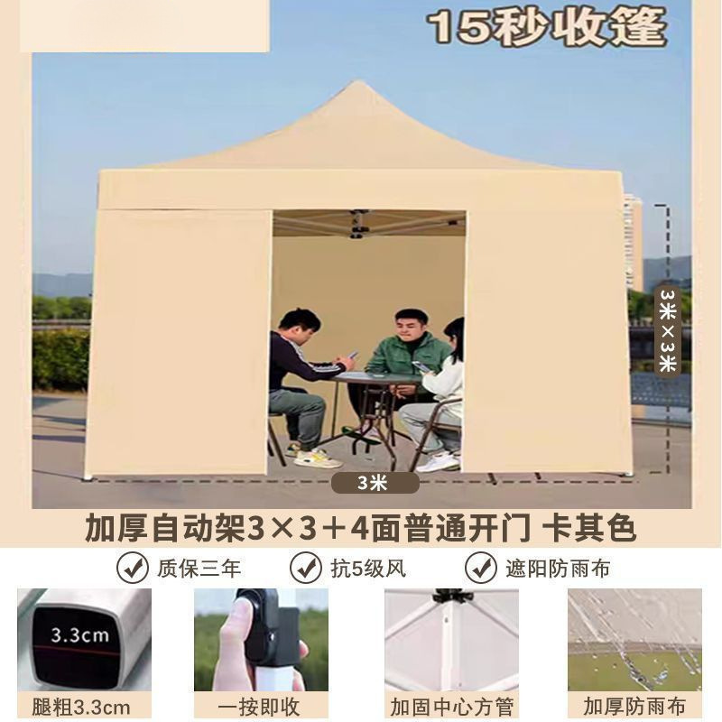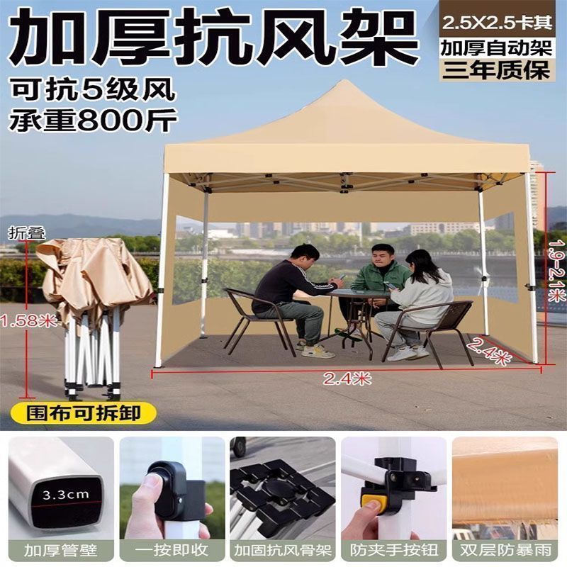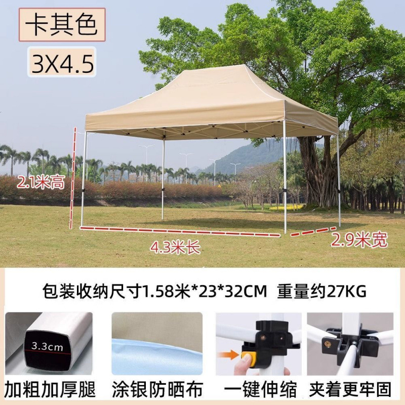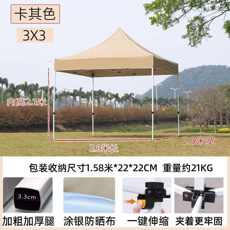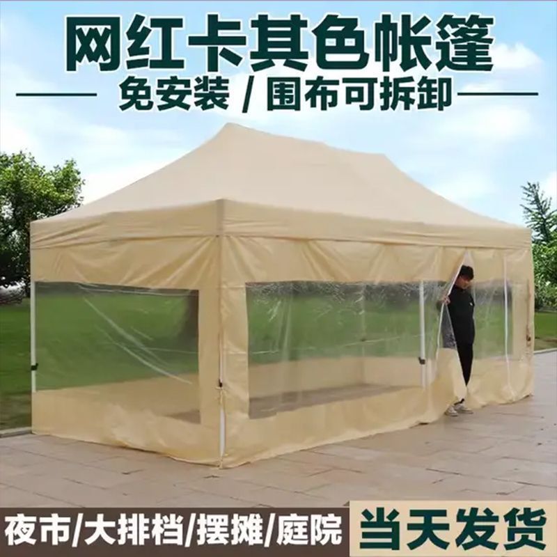 야외 매점용 4각 우산 텐트, 야시장 야외 카키색 대형 우산 차고, 접이식 차고, 4각 차양