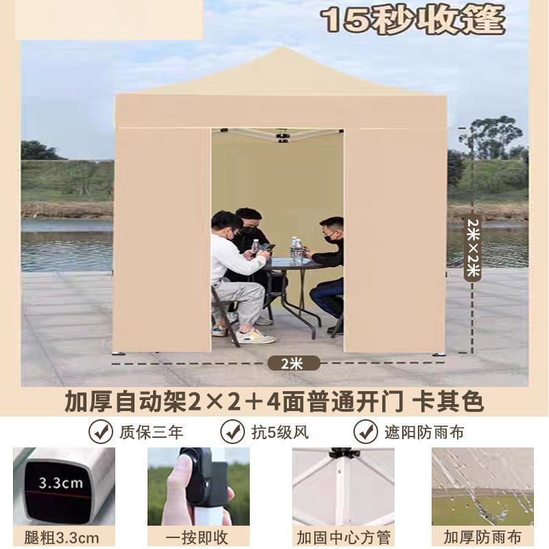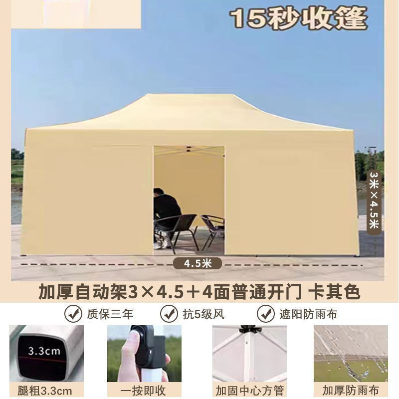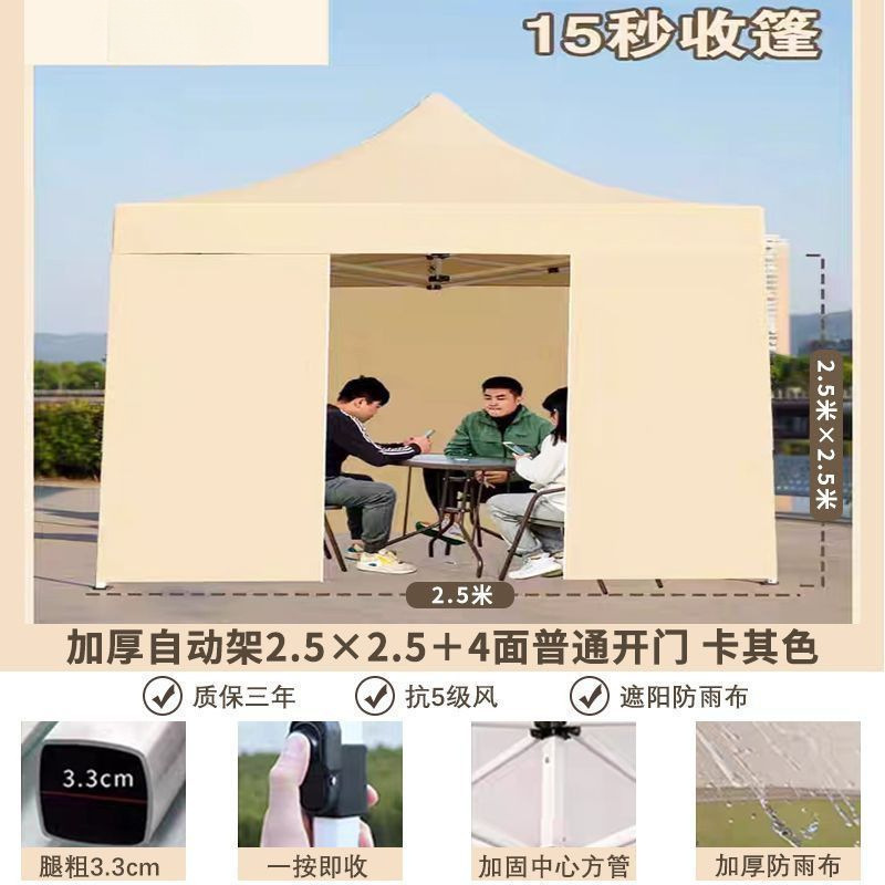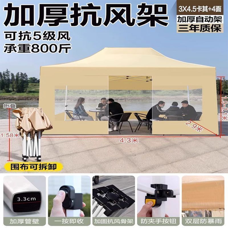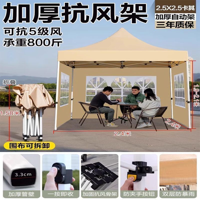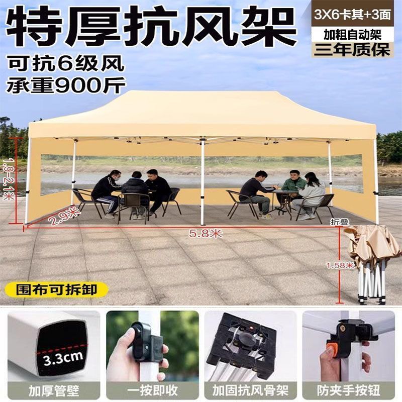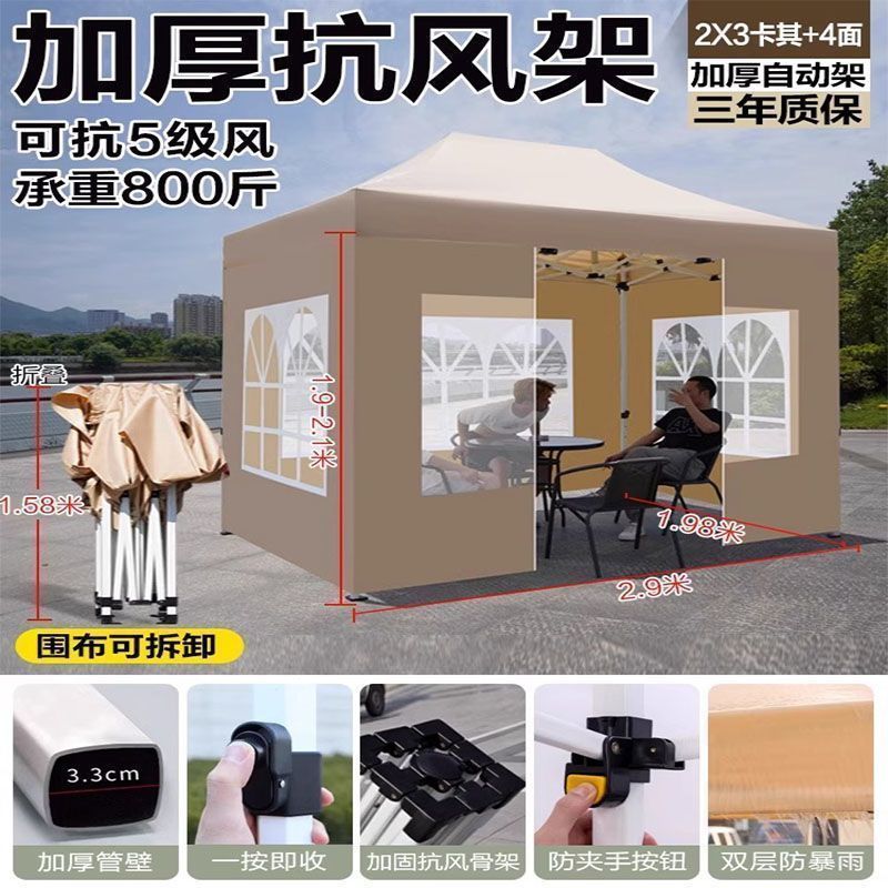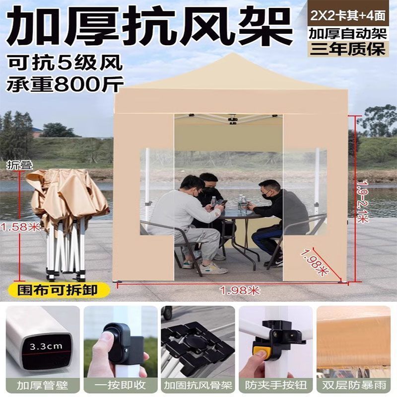 야외 매점용 4각 우산 텐트, 야시장 야외 카키색 대형 우산 차고, 접이식 차고, 4각 차양