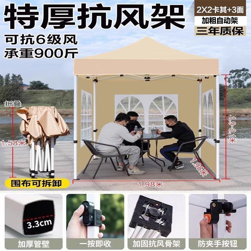야외 매점용 4각 우산 텐트, 야시장 야외 카키색 대형 우산 차고, 접이식 차고, 4각 차양스토어 가기
