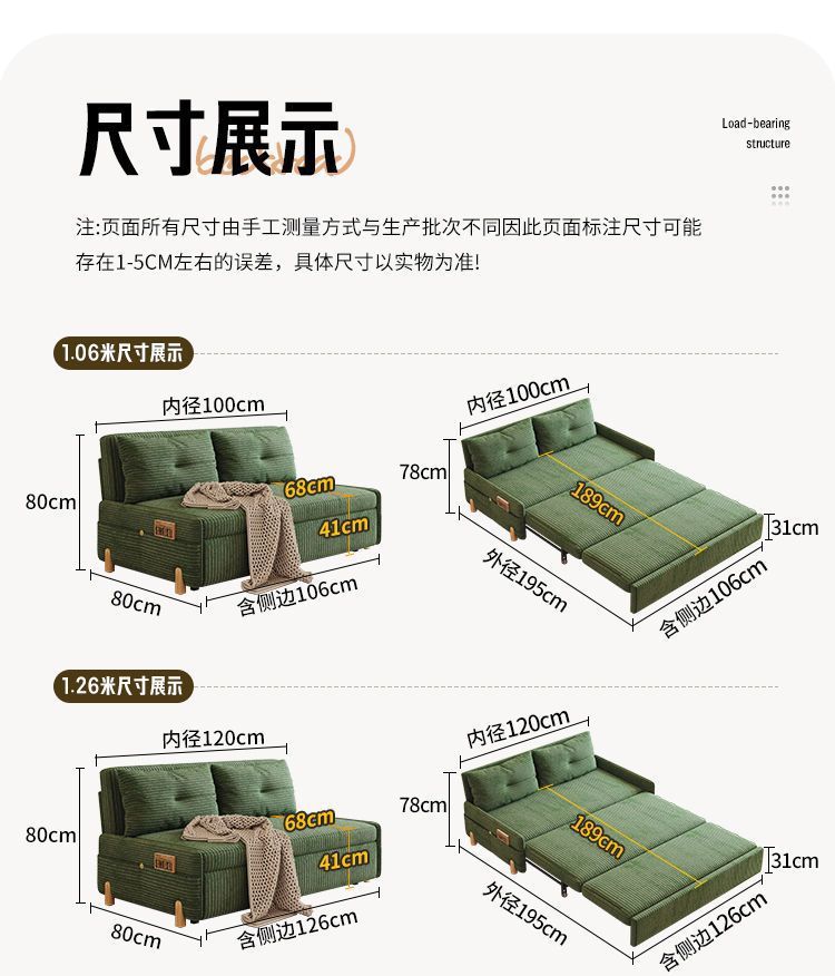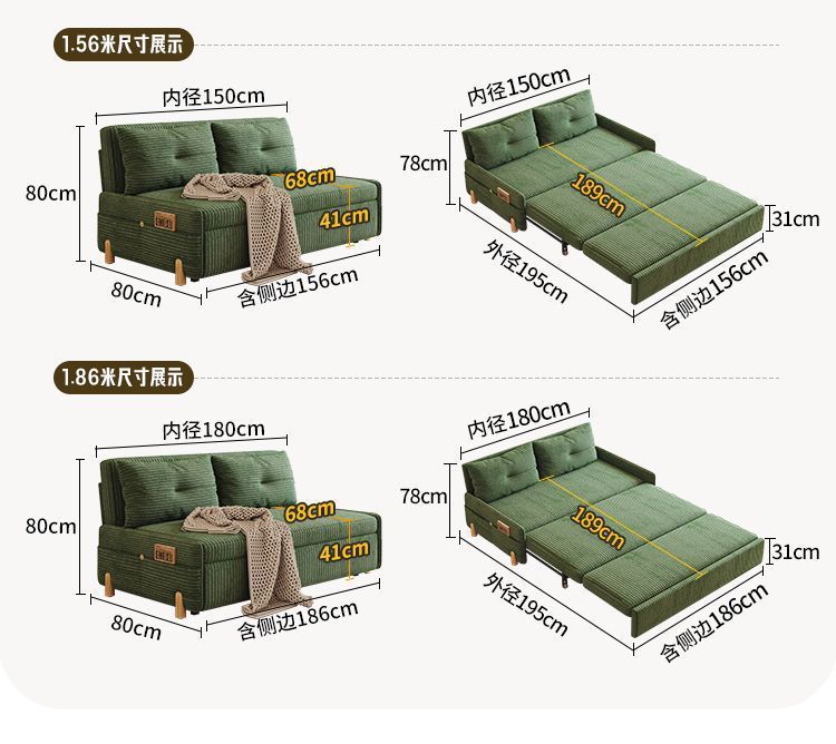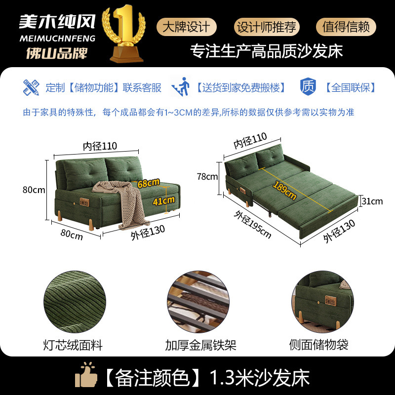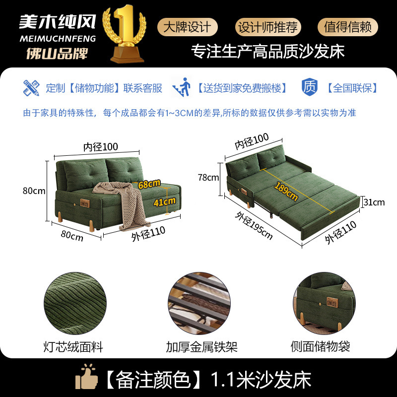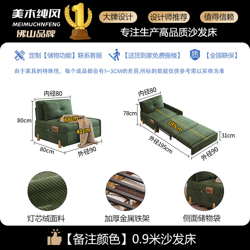 코듀로이 접이식 소파 베드 이중 목적 다기능 소형 거실 더블 싱글 발코니 개폐식 새 모델