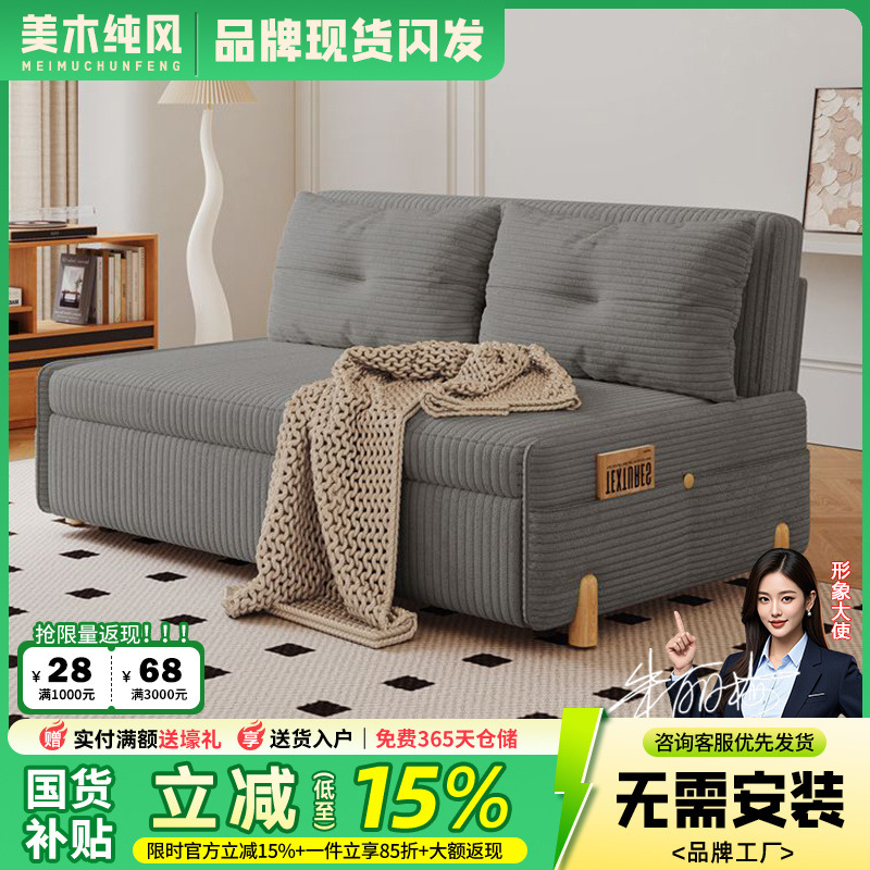 코듀로이 접이식 소파 베드 이중 목적 다기능 소형 거실 더블 싱글 발코니 개폐식 새 모델스토어 가기