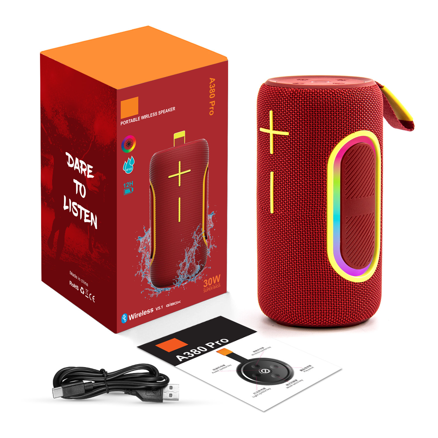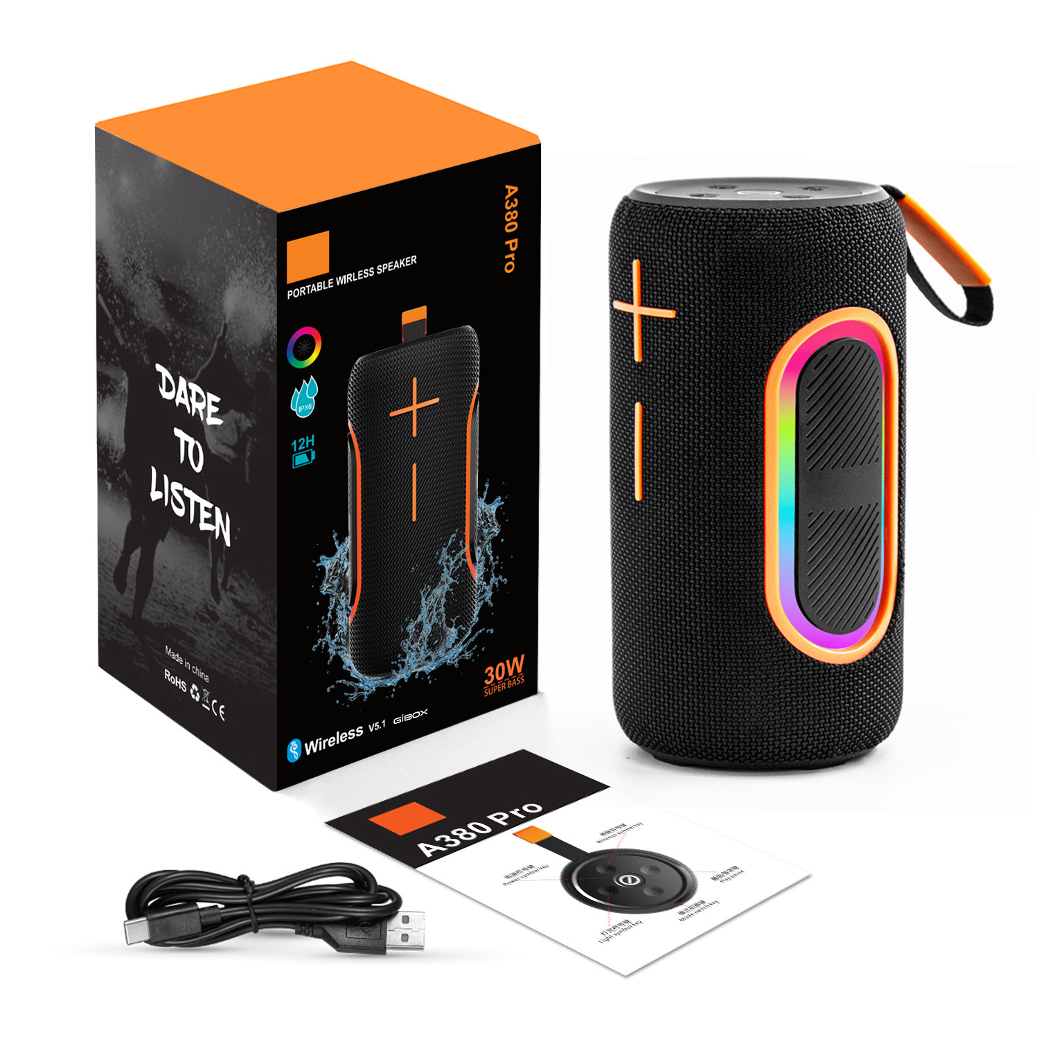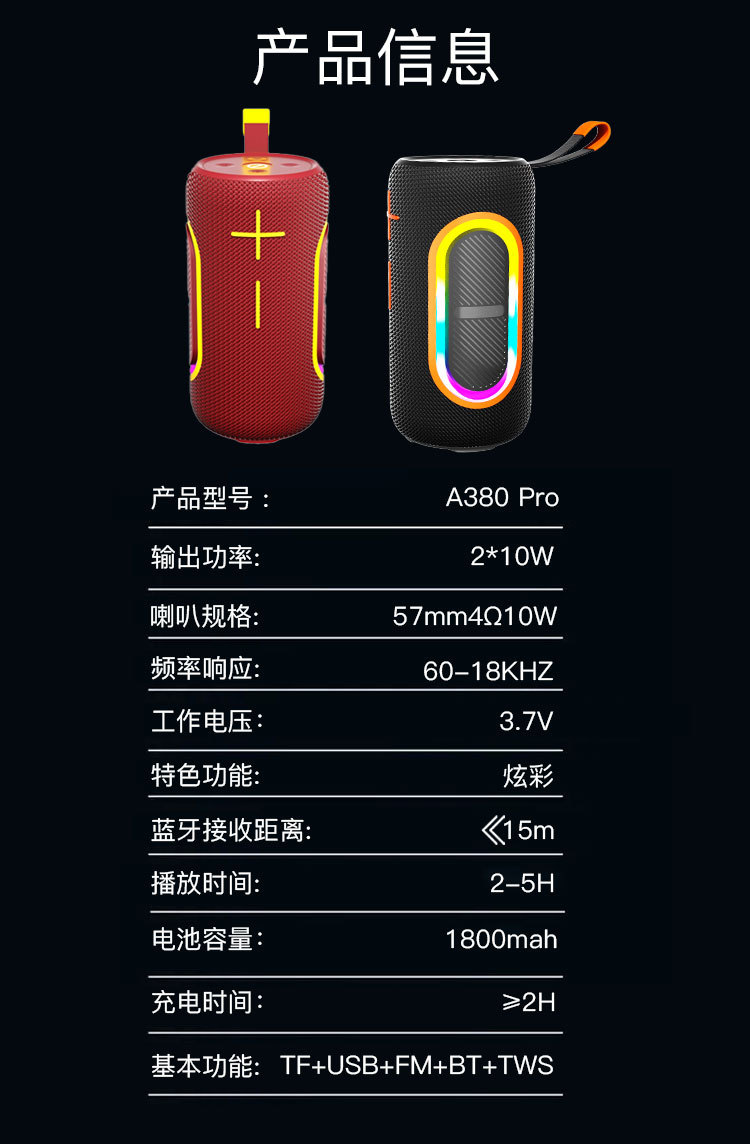 蓝牙名:A380 Pro 基本功能:TF+USB+FM+BT+TWS