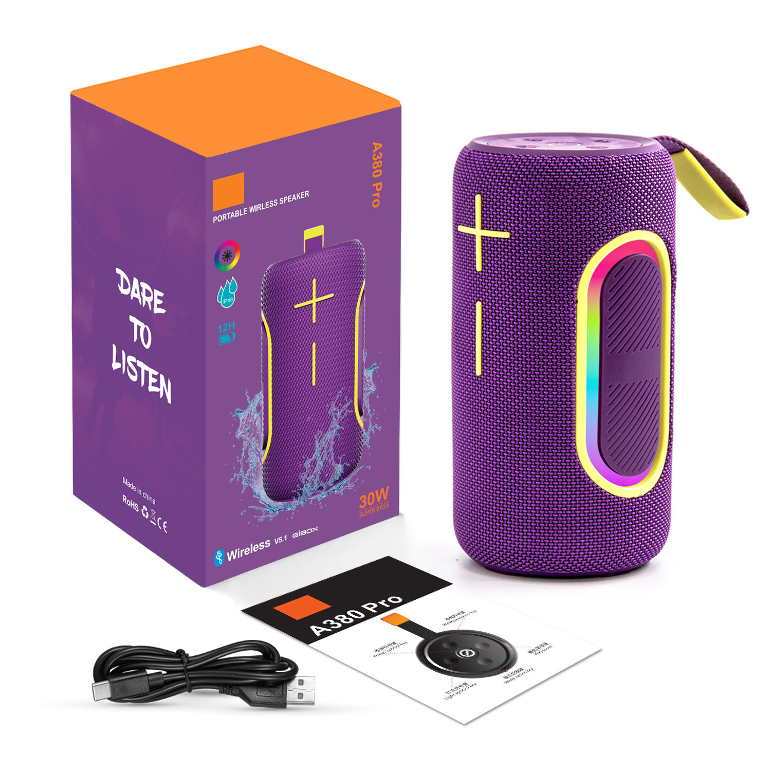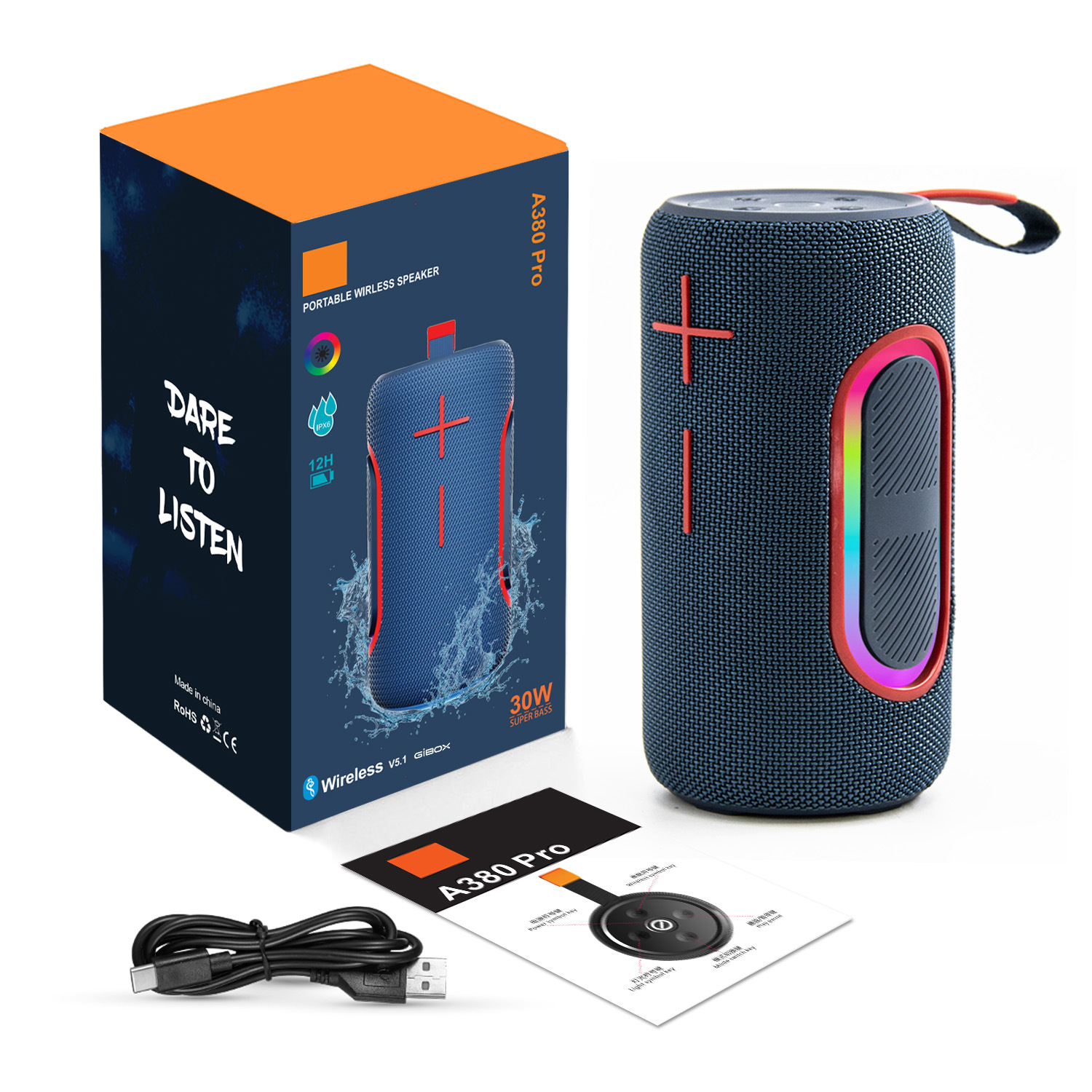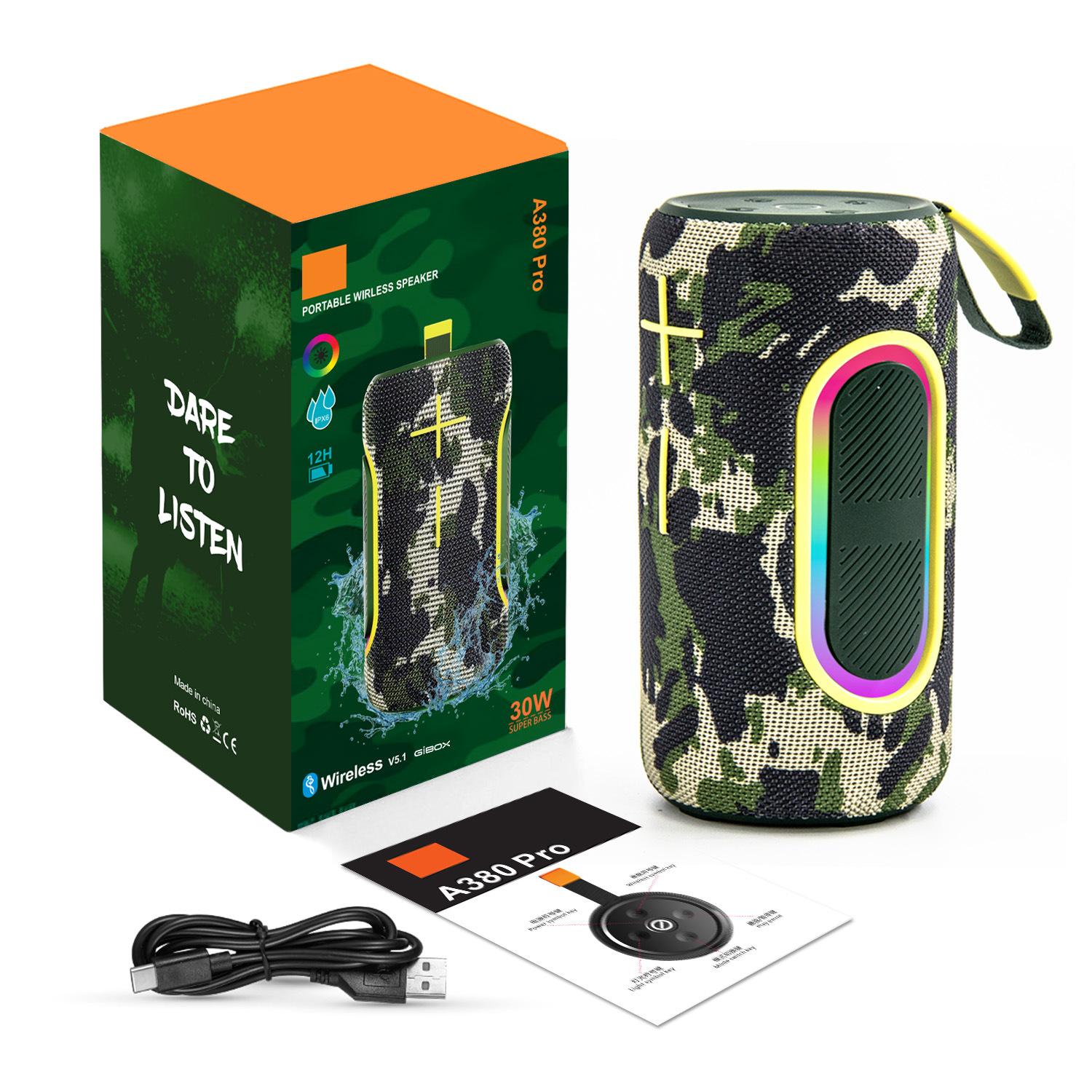 蓝牙名:A380 Pro 基本功能:TF+USB+FM+BT+TWS