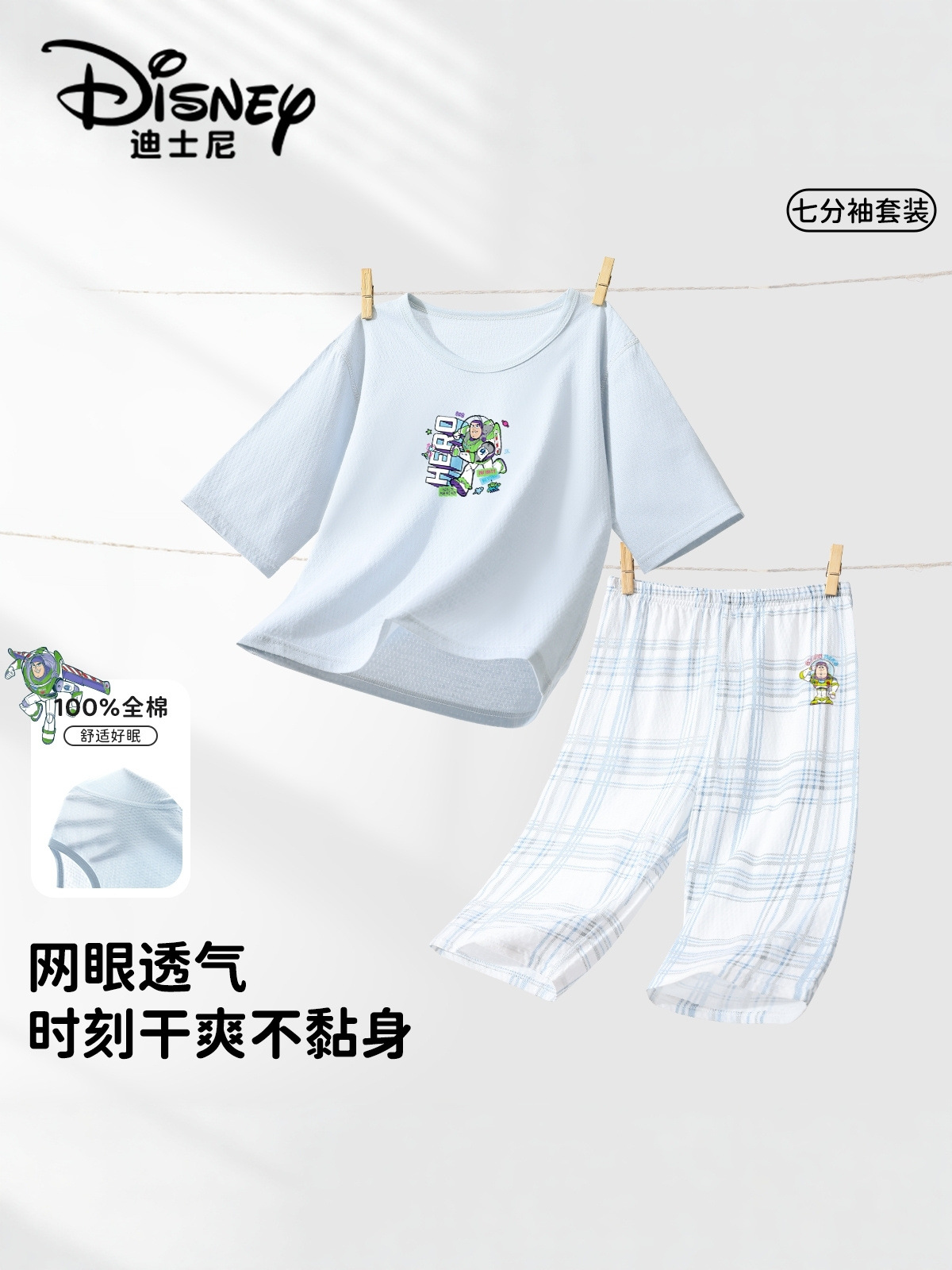 디즈니 어린이 잠옷, 가정복, 남아용 긴팔 에어컨 의류, 여름용 얇은 중대형 어린이 순면 잠옷 세트스토어 가기