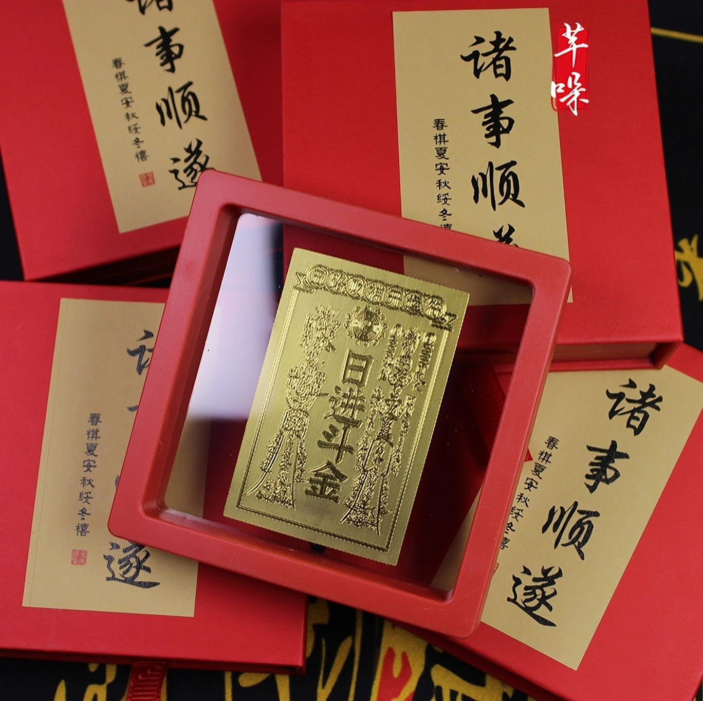• 아크릴 레드 박스 일일 금 장식품