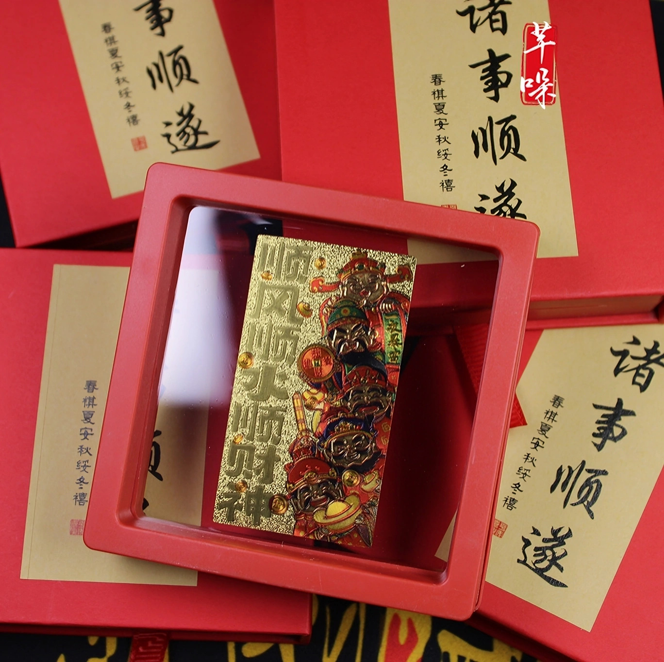 • 아크릴 레드 박스 부의 신 장식품