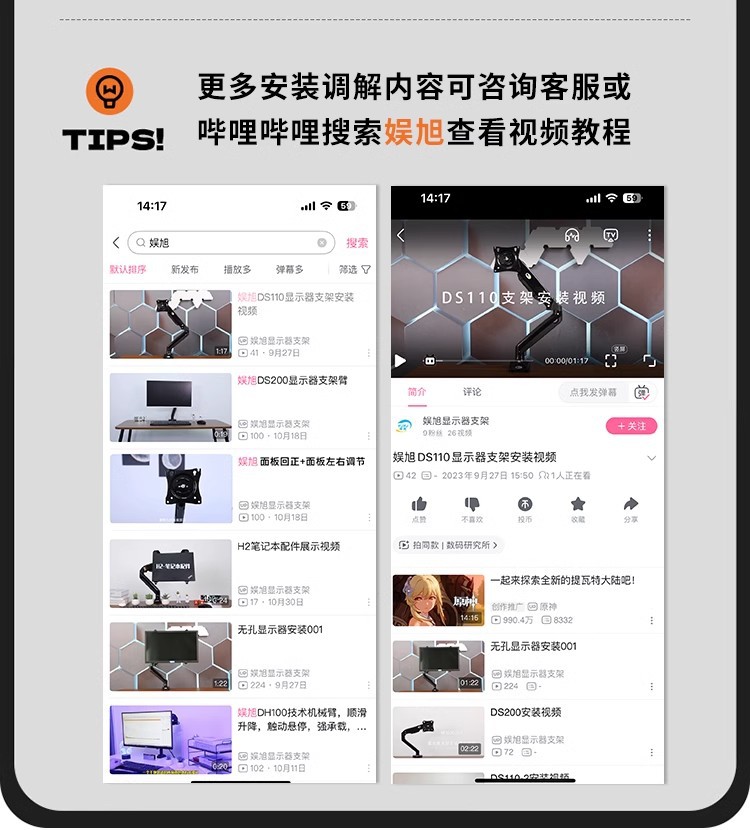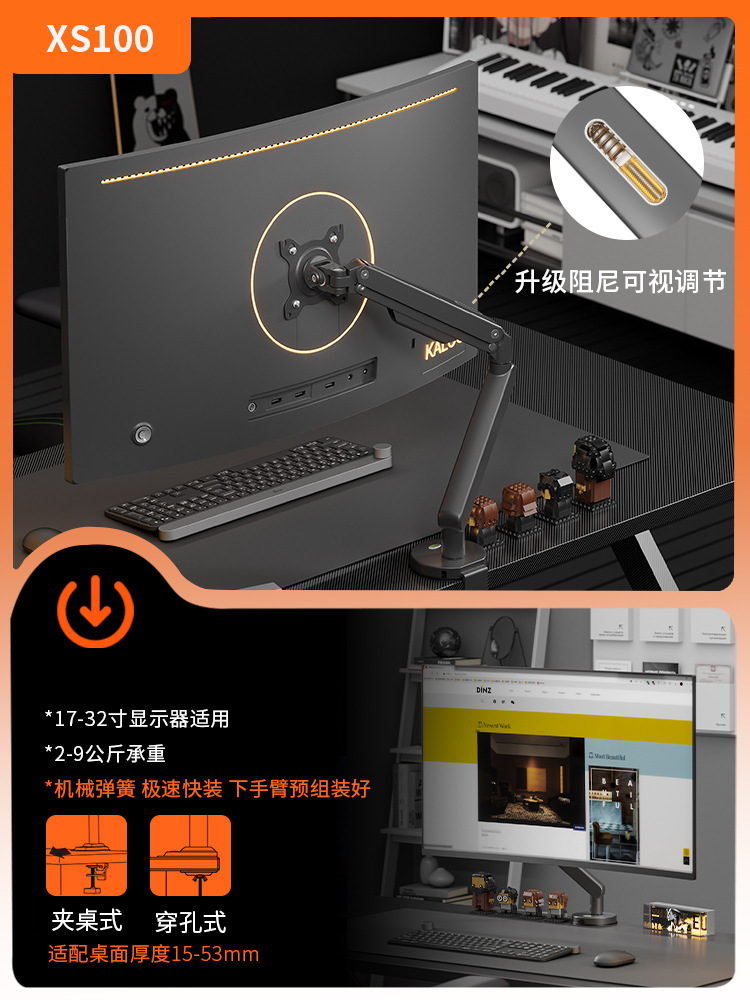 • 건 애쉬/댐핑 시각적 조정 [17-32inch /9KG 내하중] 매우 빠른 설치