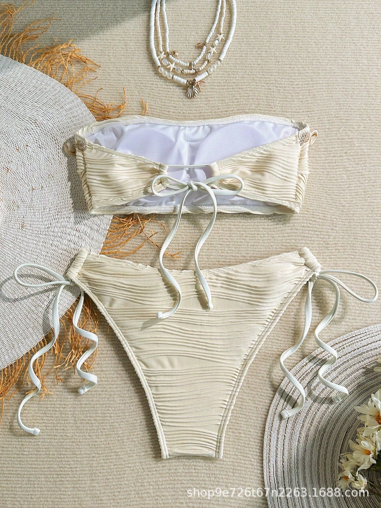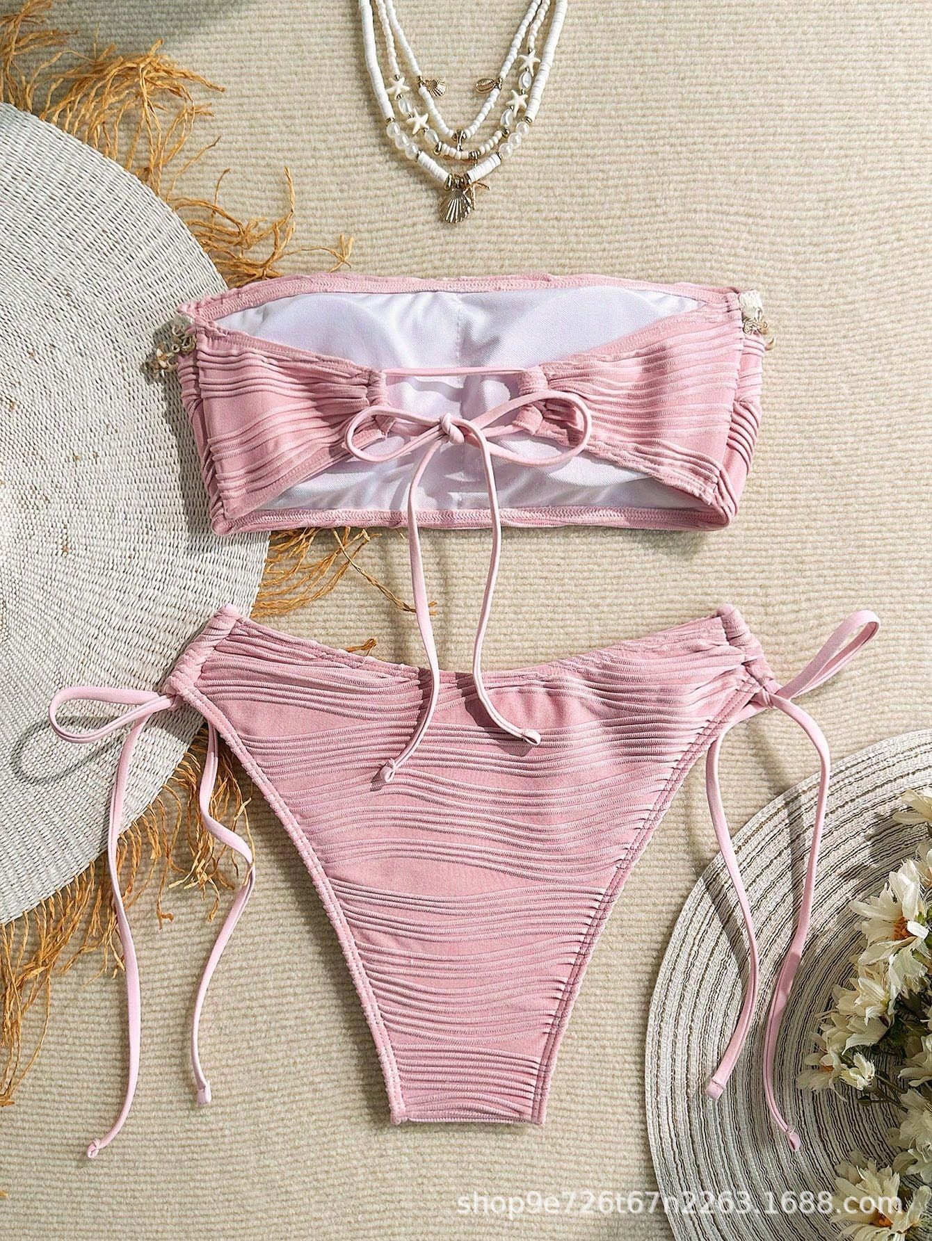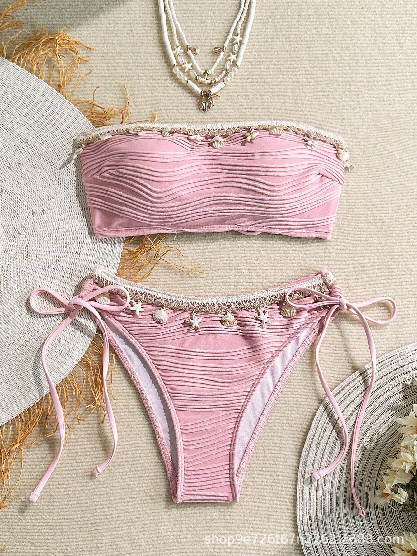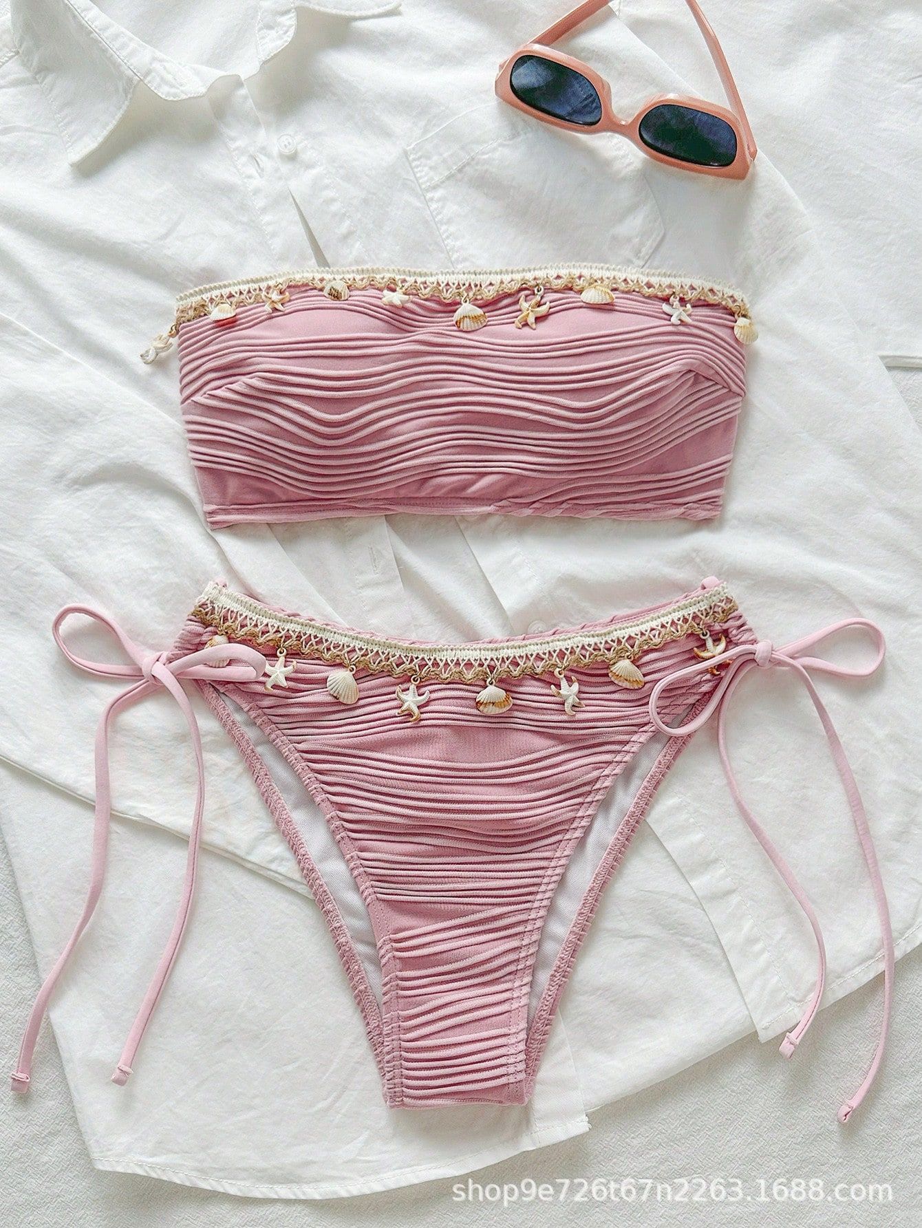 2025 유럽과 미국의 새로운 섹시한 솔리드 컬러 튜브 탑 쉘 여성 해변 휴가 수영복 비키니 대외 무역 수영복