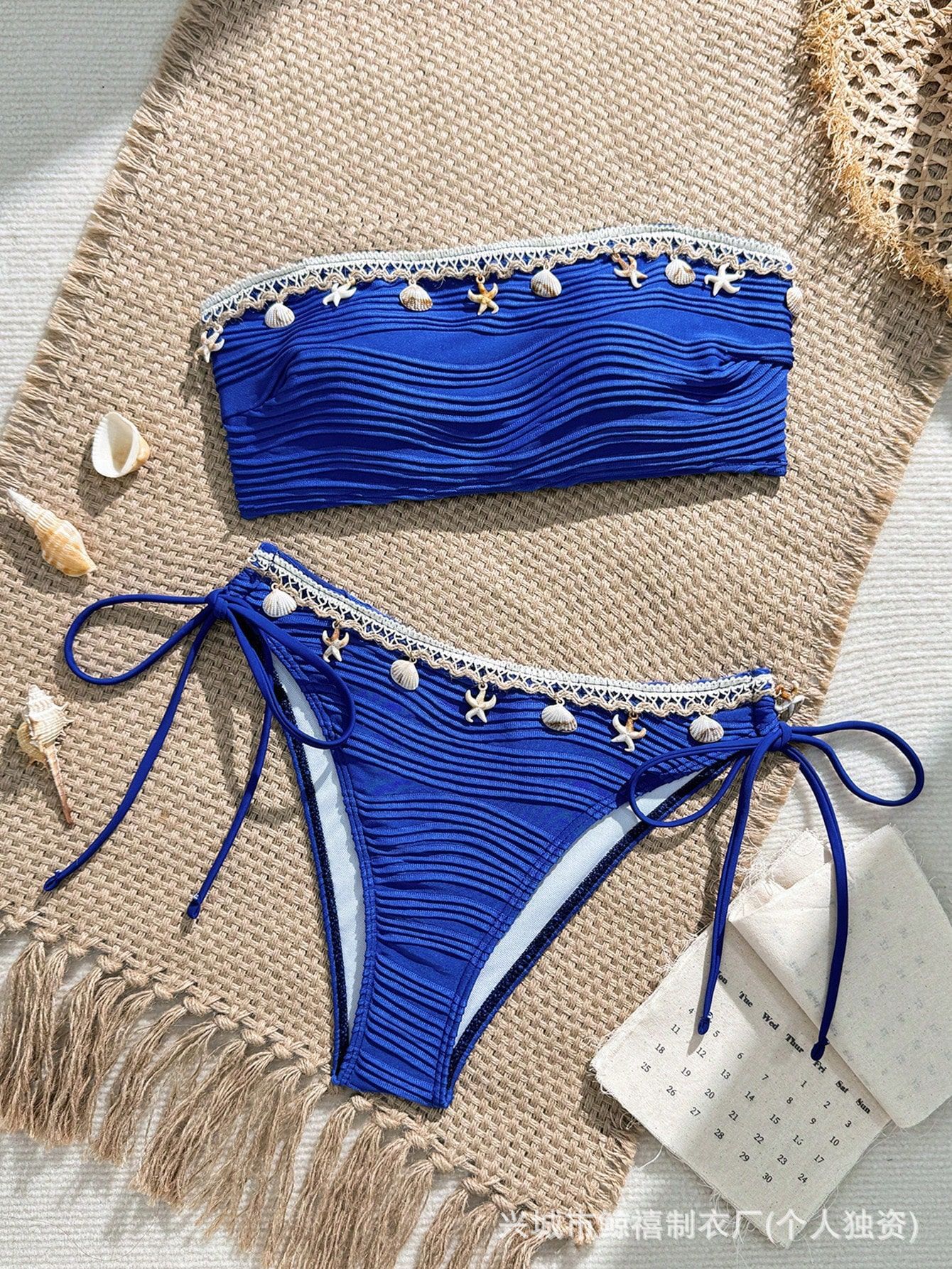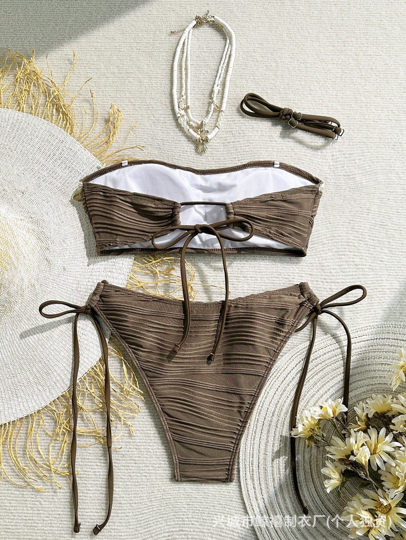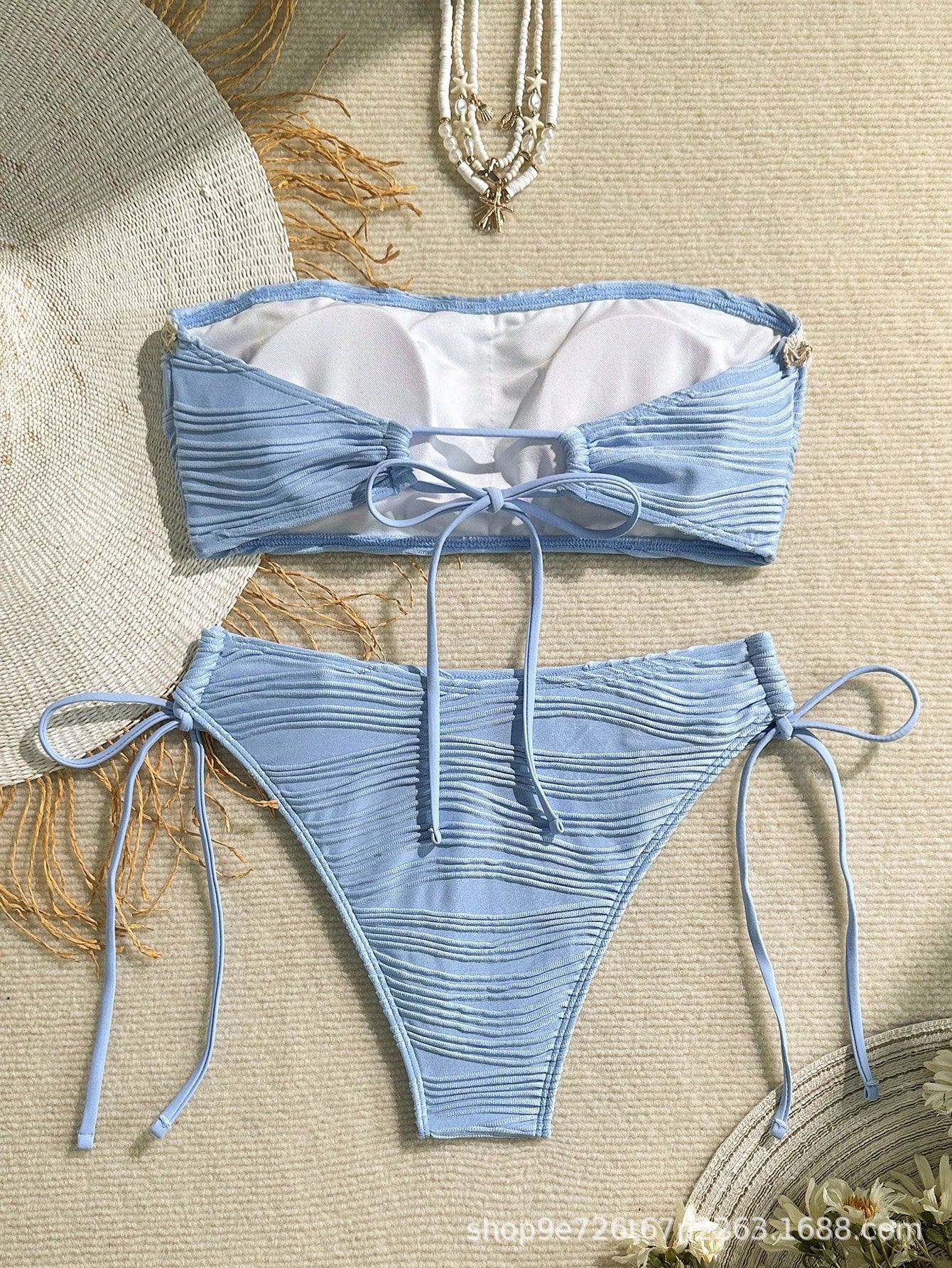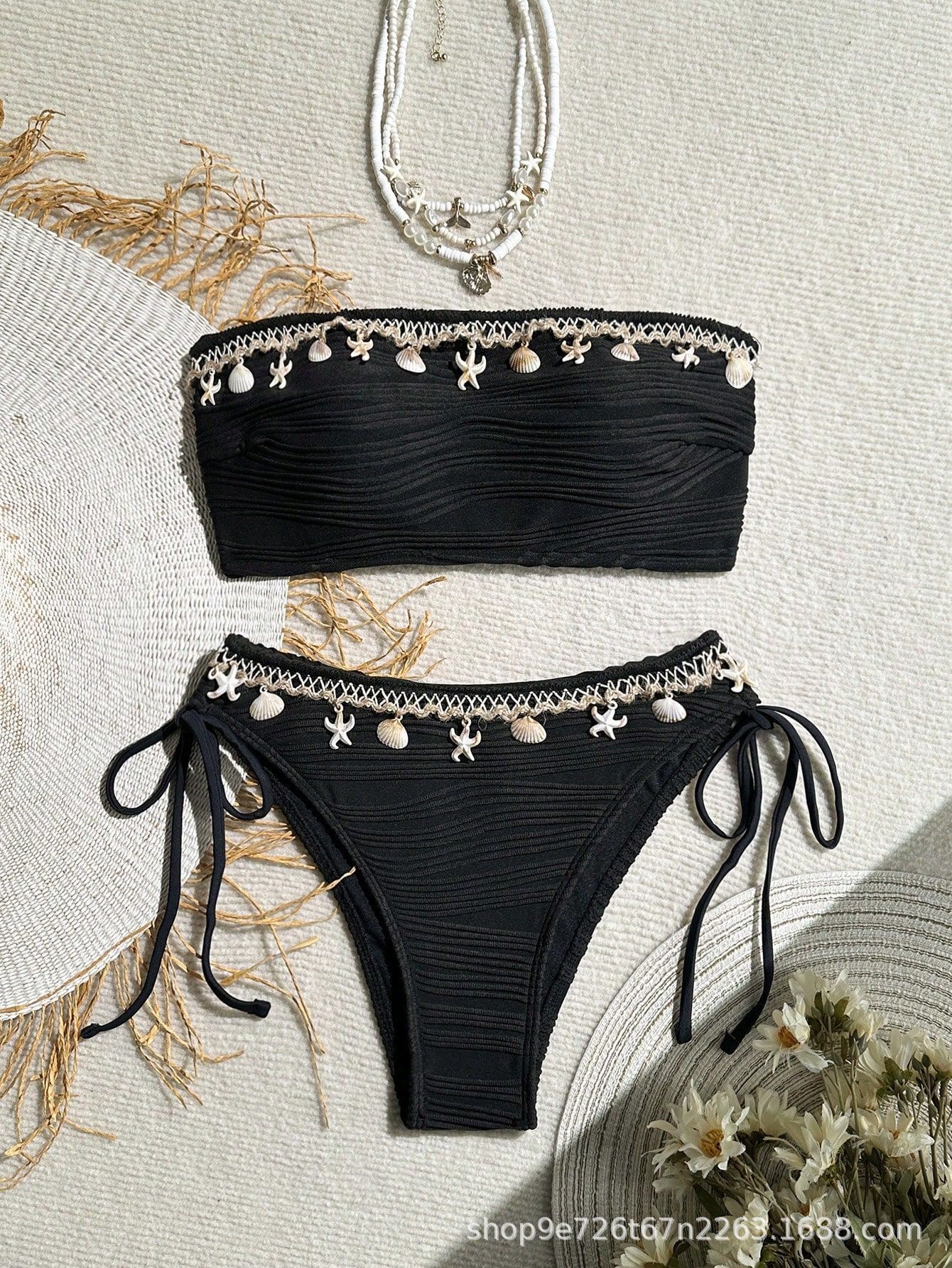 2025 유럽과 미국의 새로운 섹시한 솔리드 컬러 튜브 탑 쉘 여성 해변 휴가 수영복 비키니 대외 무역 수영복