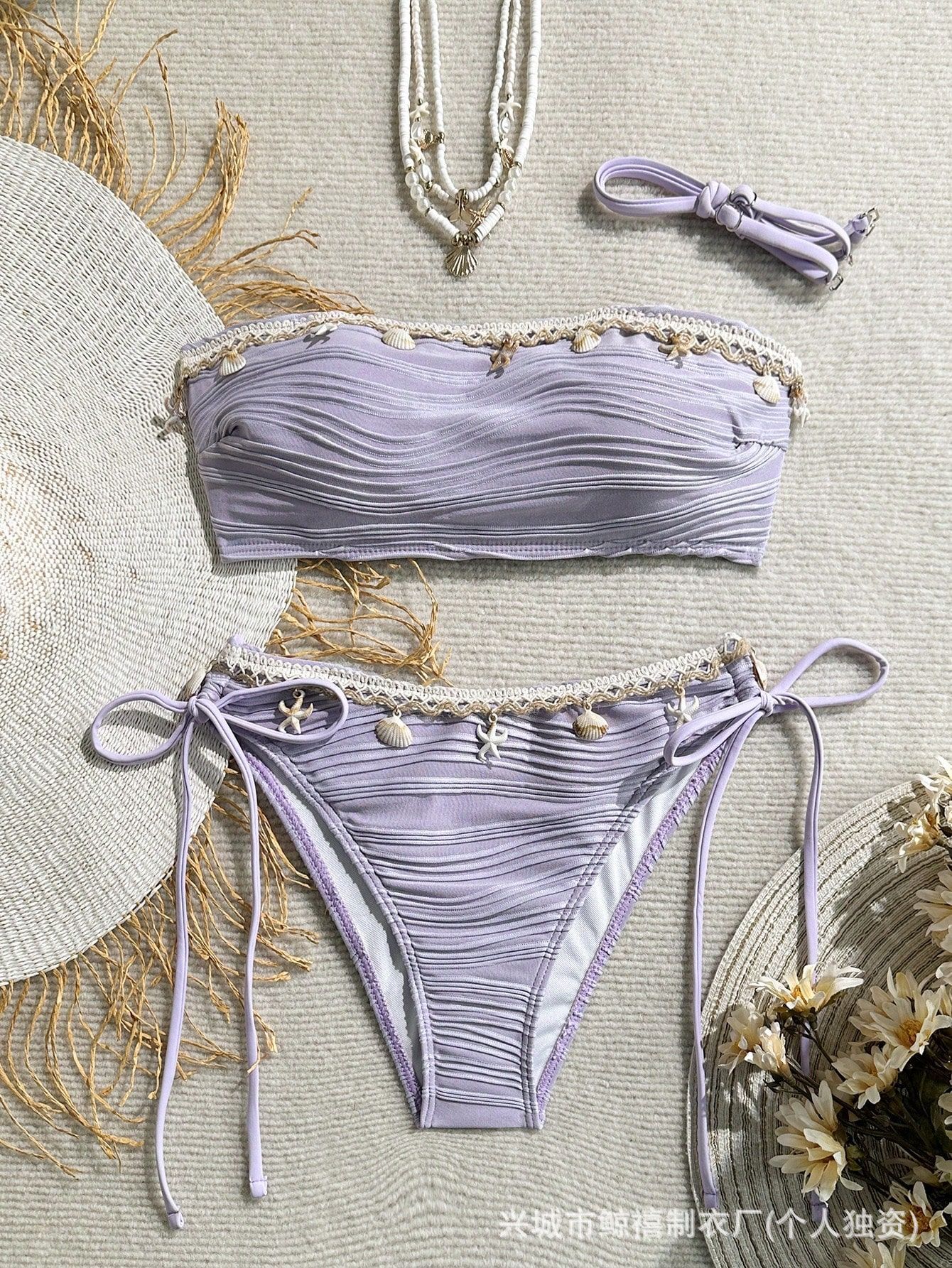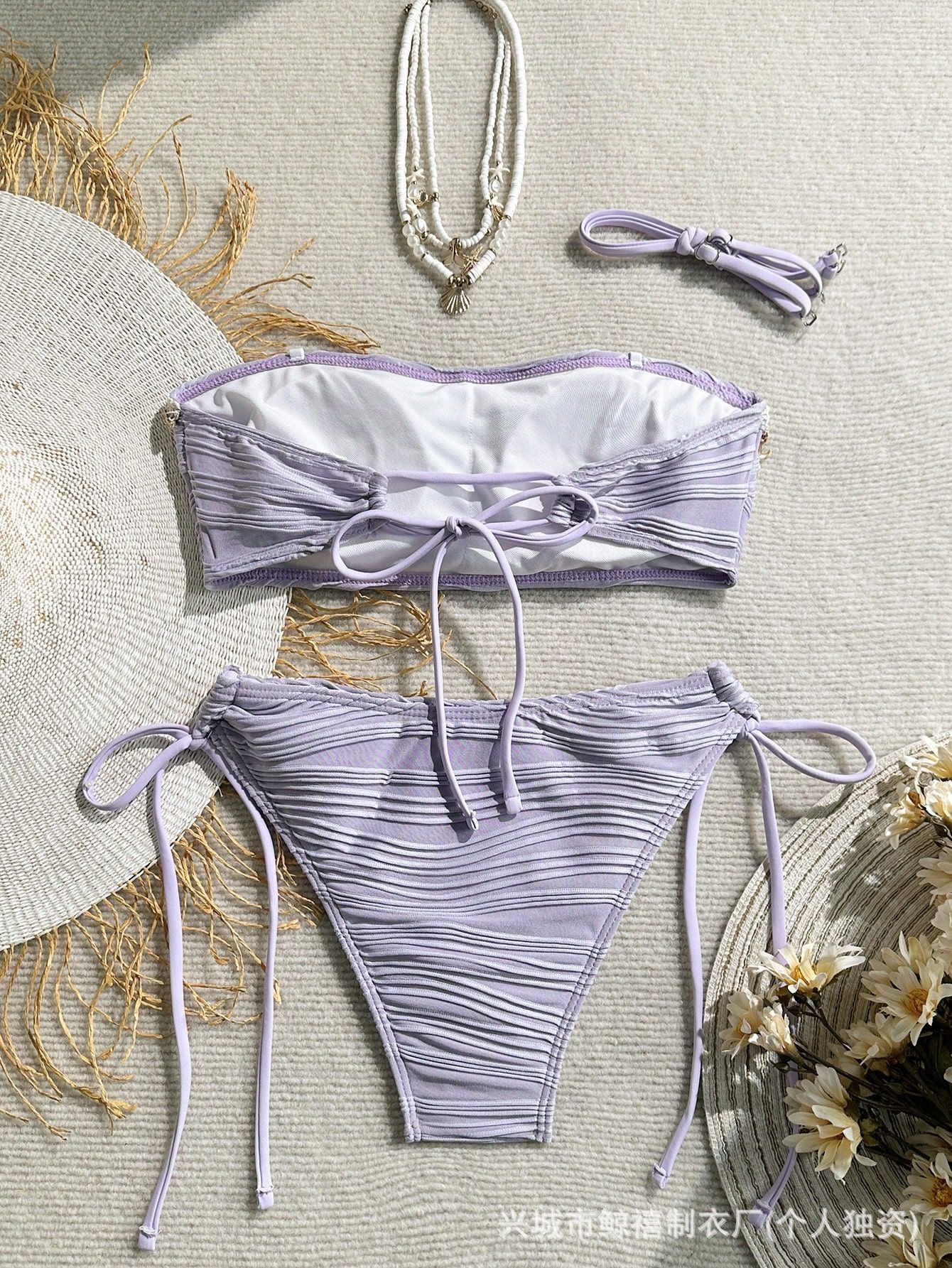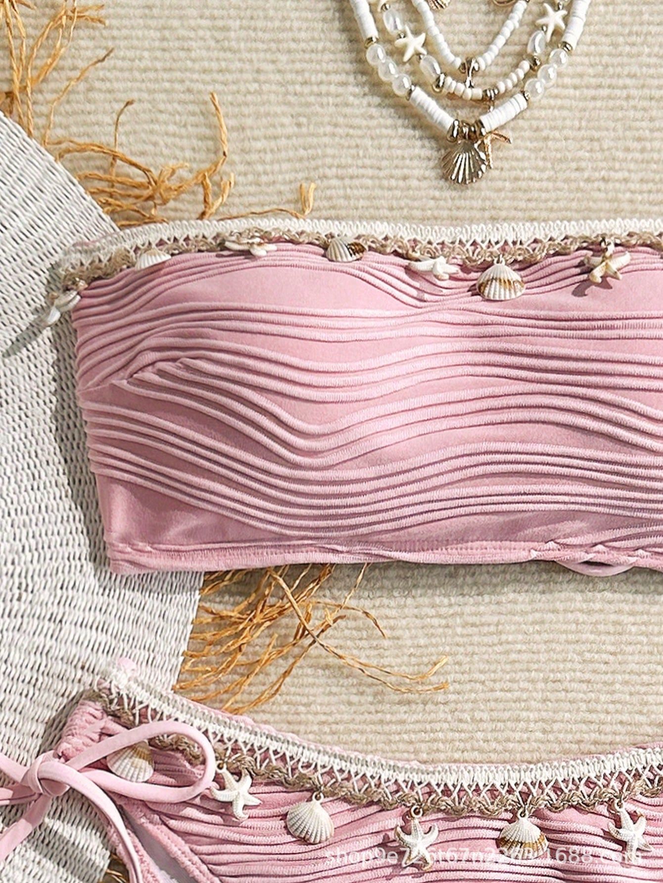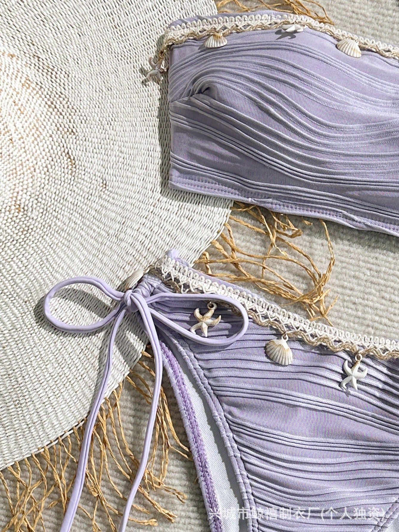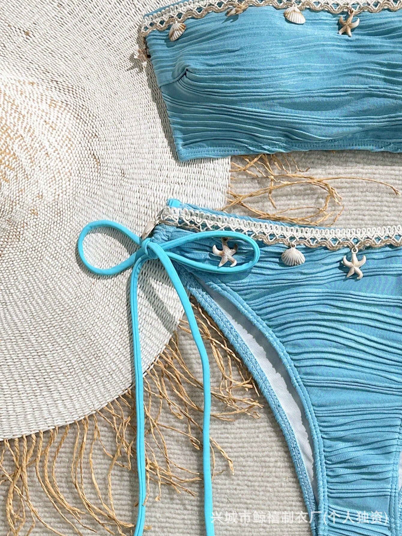 2025 유럽과 미국의 새로운 섹시한 솔리드 컬러 튜브 탑 쉘 여성 해변 휴가 수영복 비키니 대외 무역 수영복