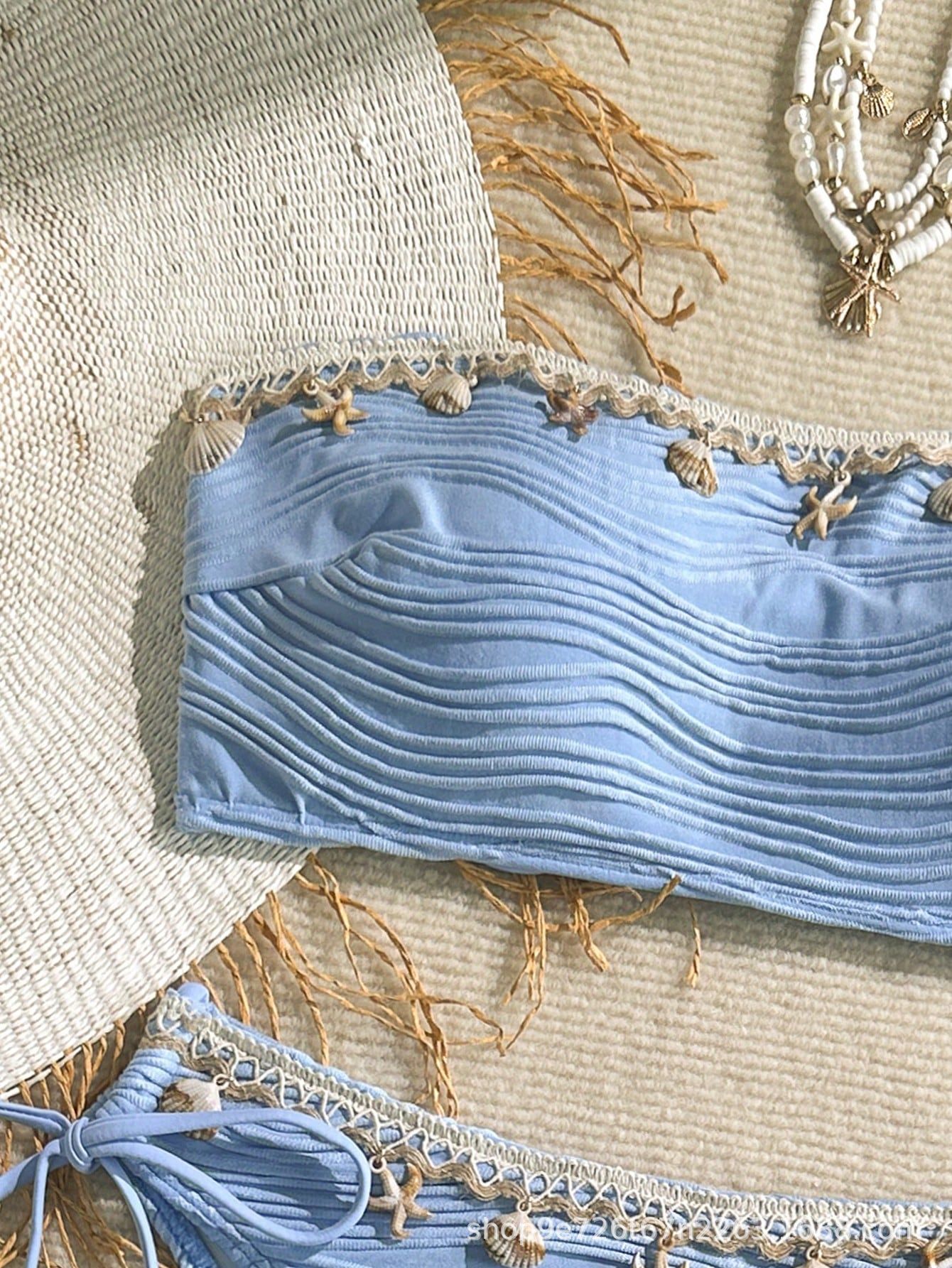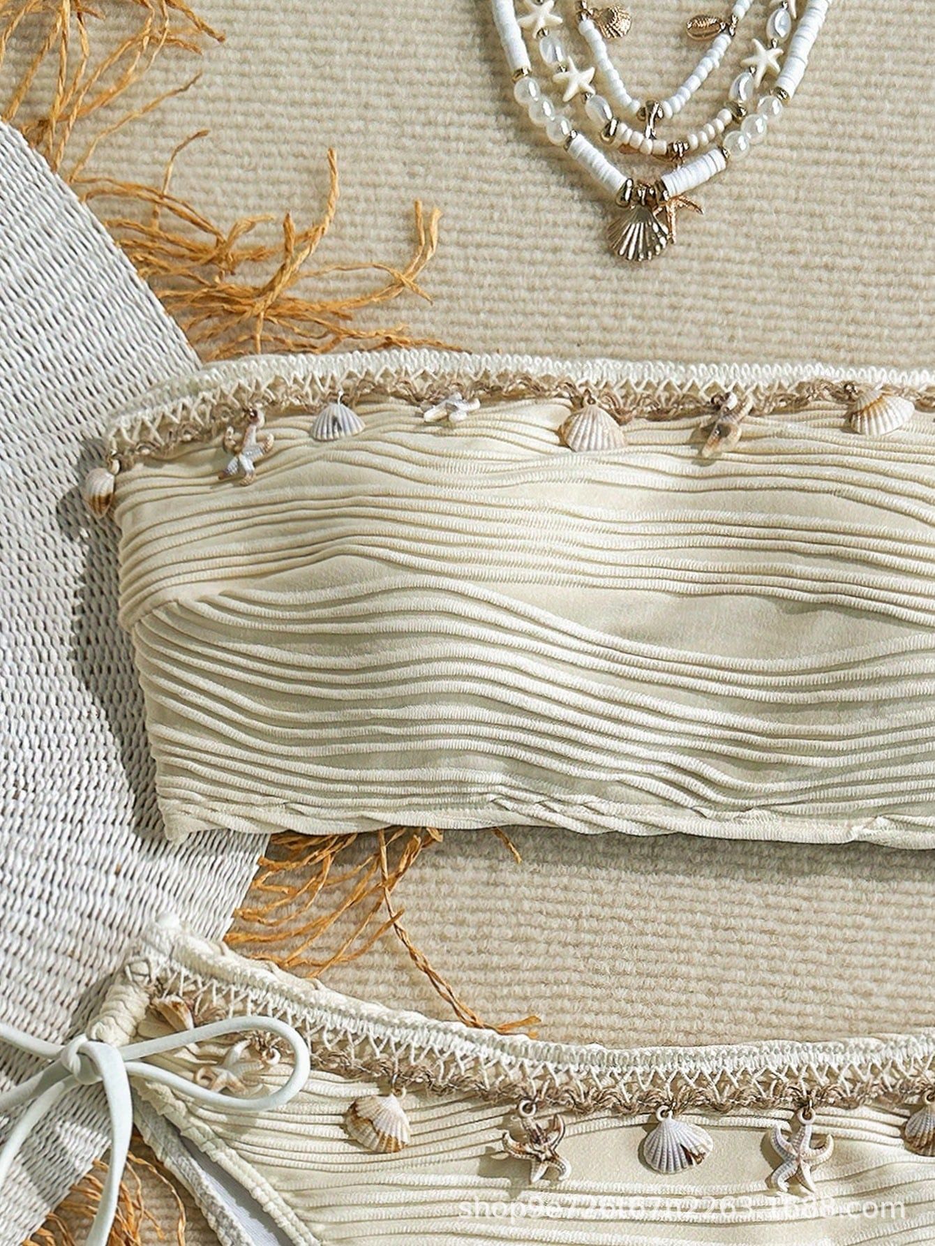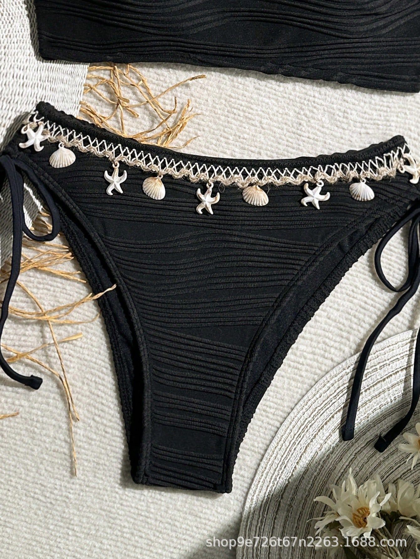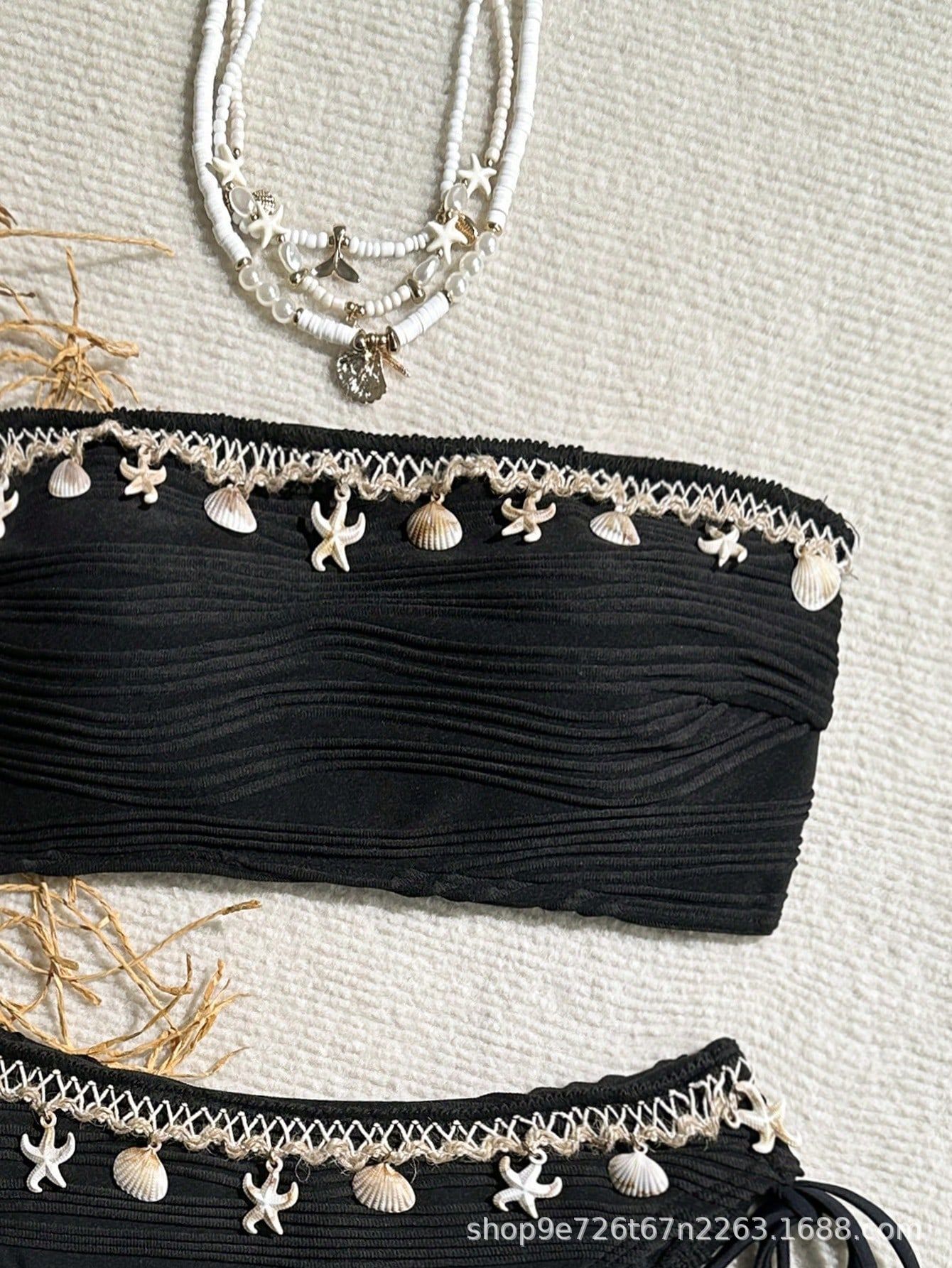 2025 유럽과 미국의 새로운 섹시한 솔리드 컬러 튜브 탑 쉘 여성 해변 휴가 수영복 비키니 대외 무역 수영복