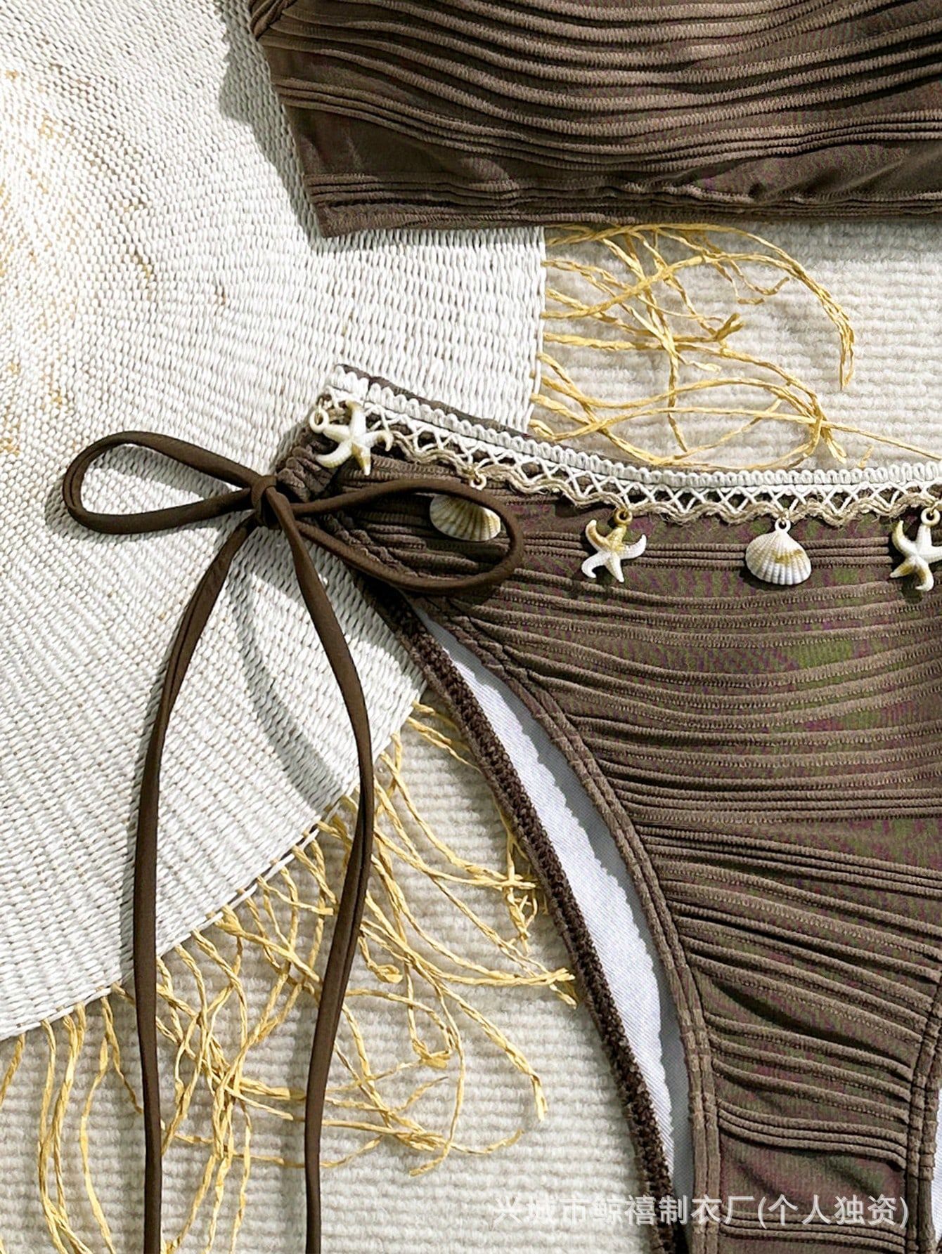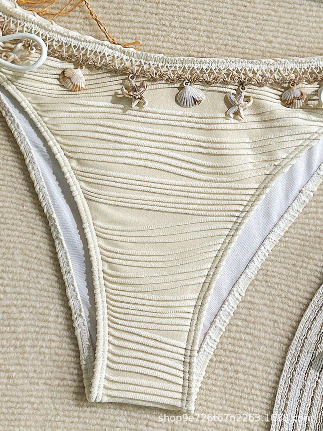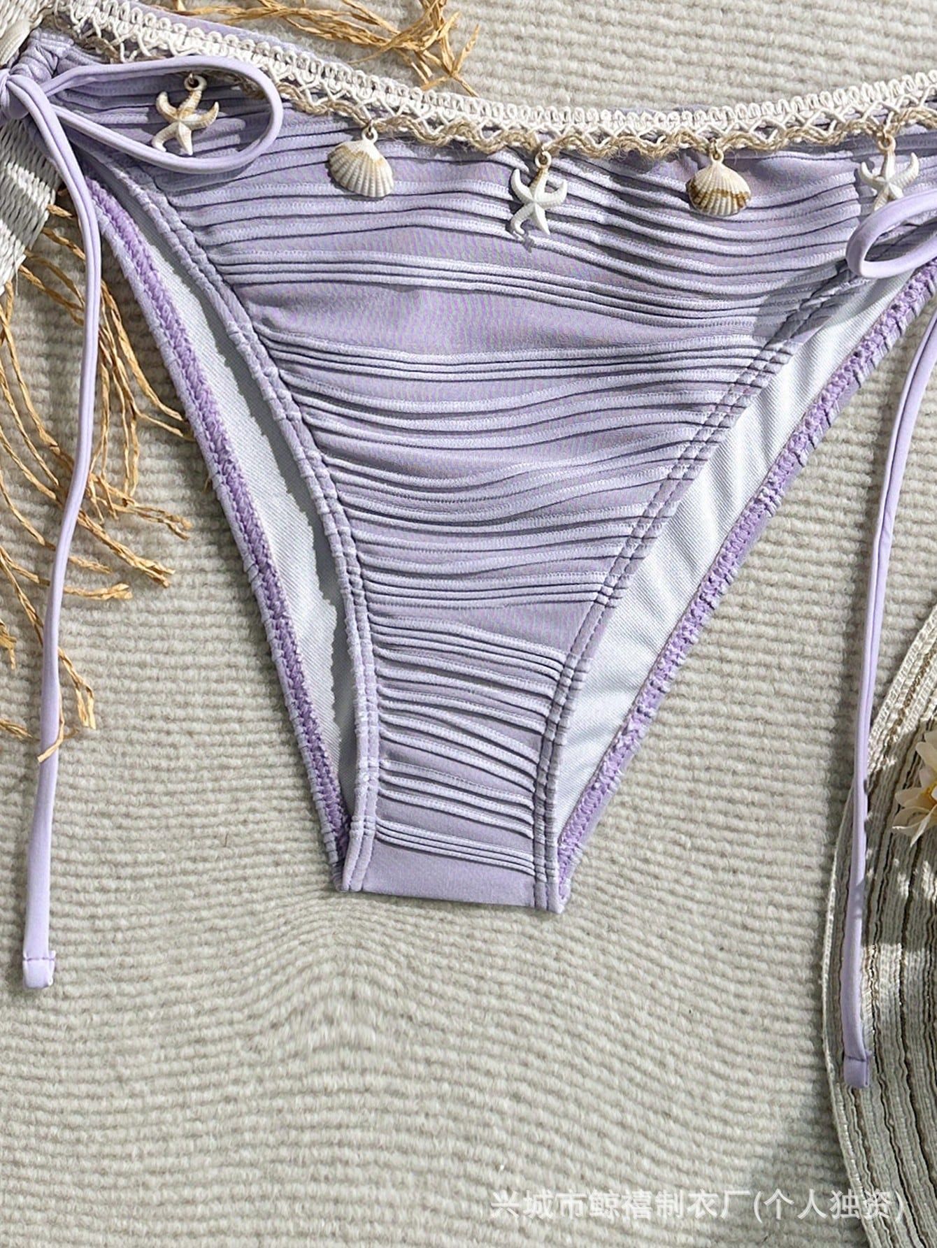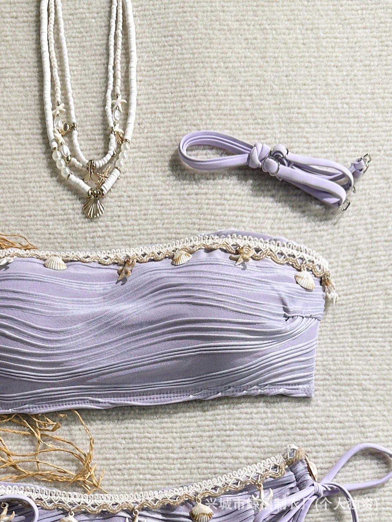 2025 유럽과 미국의 새로운 섹시한 솔리드 컬러 튜브 탑 쉘 여성 해변 휴가 수영복 비키니 대외 무역 수영복