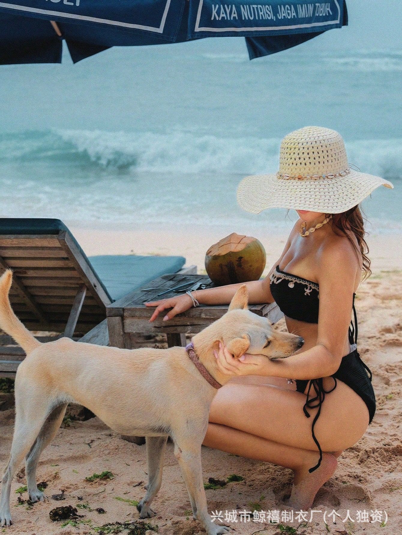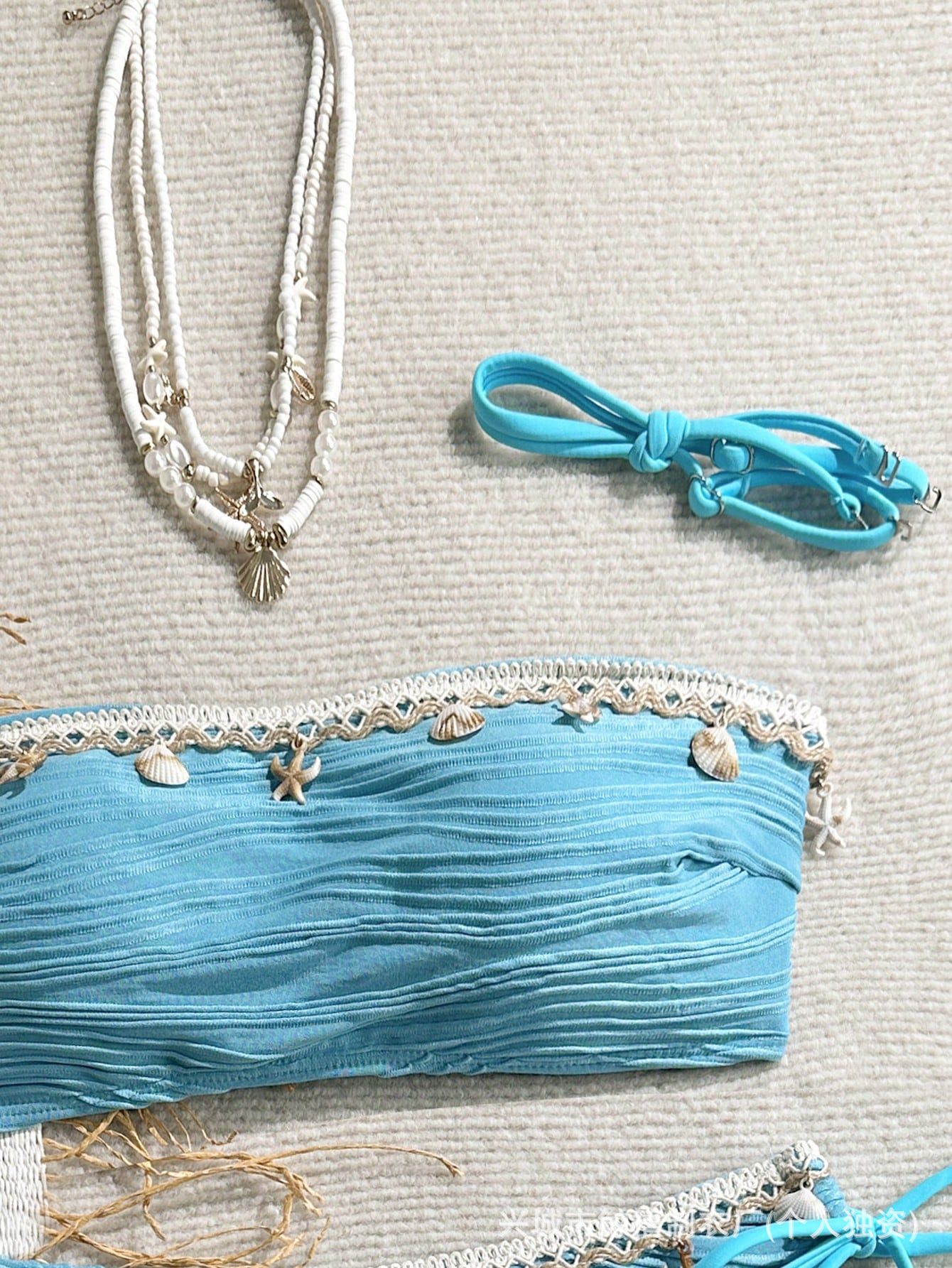 2025 유럽과 미국의 새로운 섹시한 솔리드 컬러 튜브 탑 쉘 여성 해변 휴가 수영복 비키니 대외 무역 수영복스토어 가기