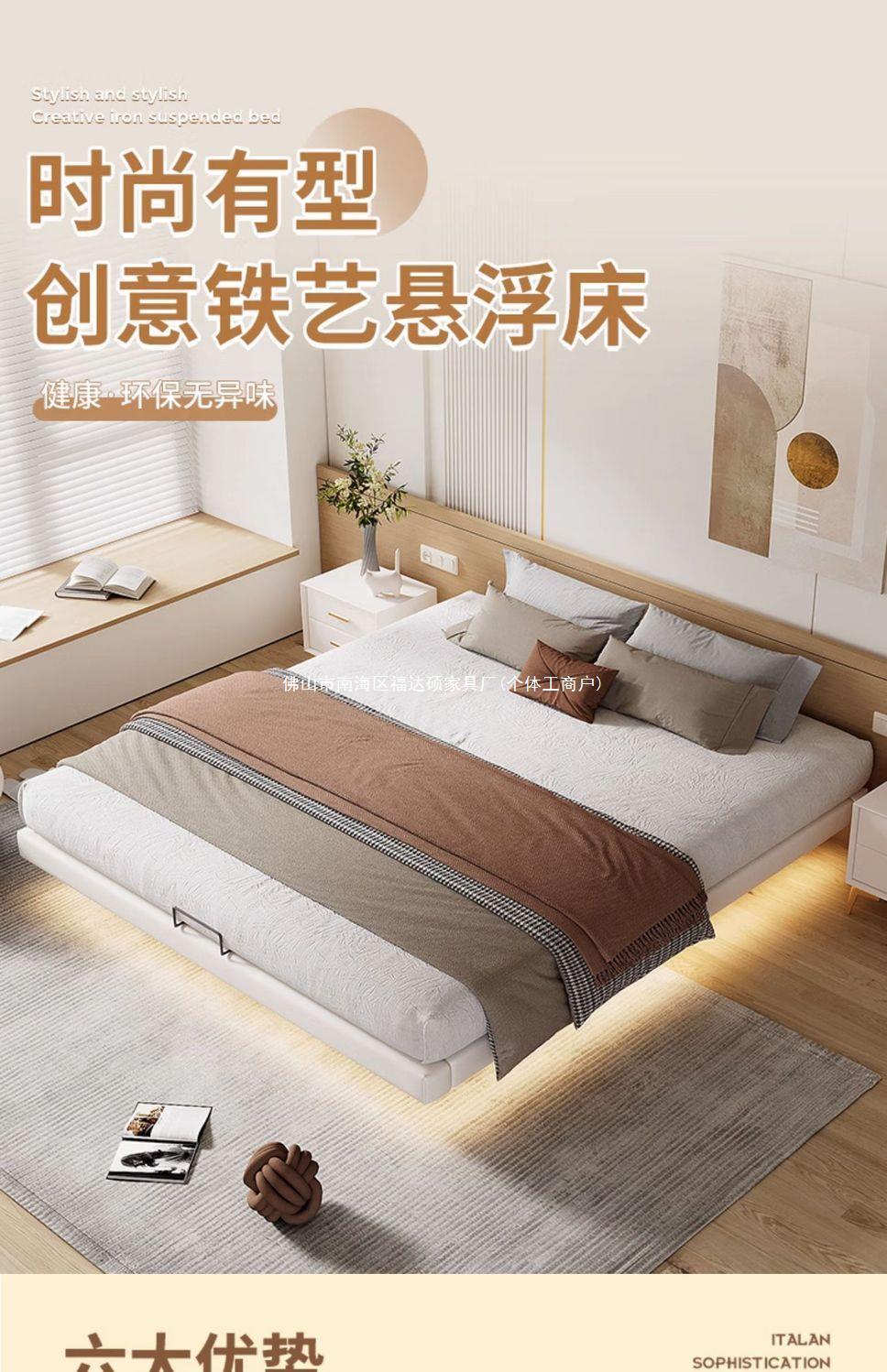 공중에 뜨는 침대, 모던하고 심플한 침대 없음, 이탈리안 미니멀 철제 마스터 침실 더블 침대, 다다미 랙 프레임 공중에 뜨는 침대