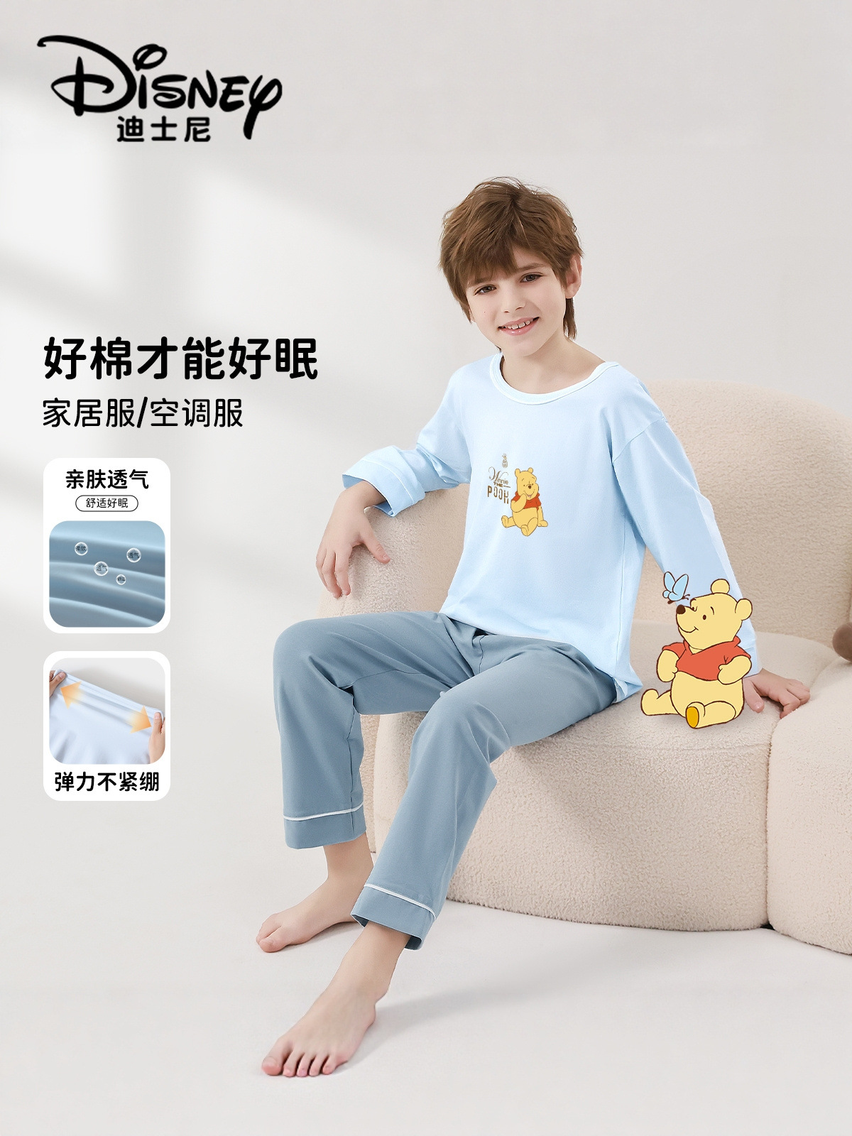 디즈니 어린이 잠옷, 가정복, 남아용 긴팔 에어컨 의류, 여름용 얇은 중대형 어린이 잠옷 세트스토어 가기