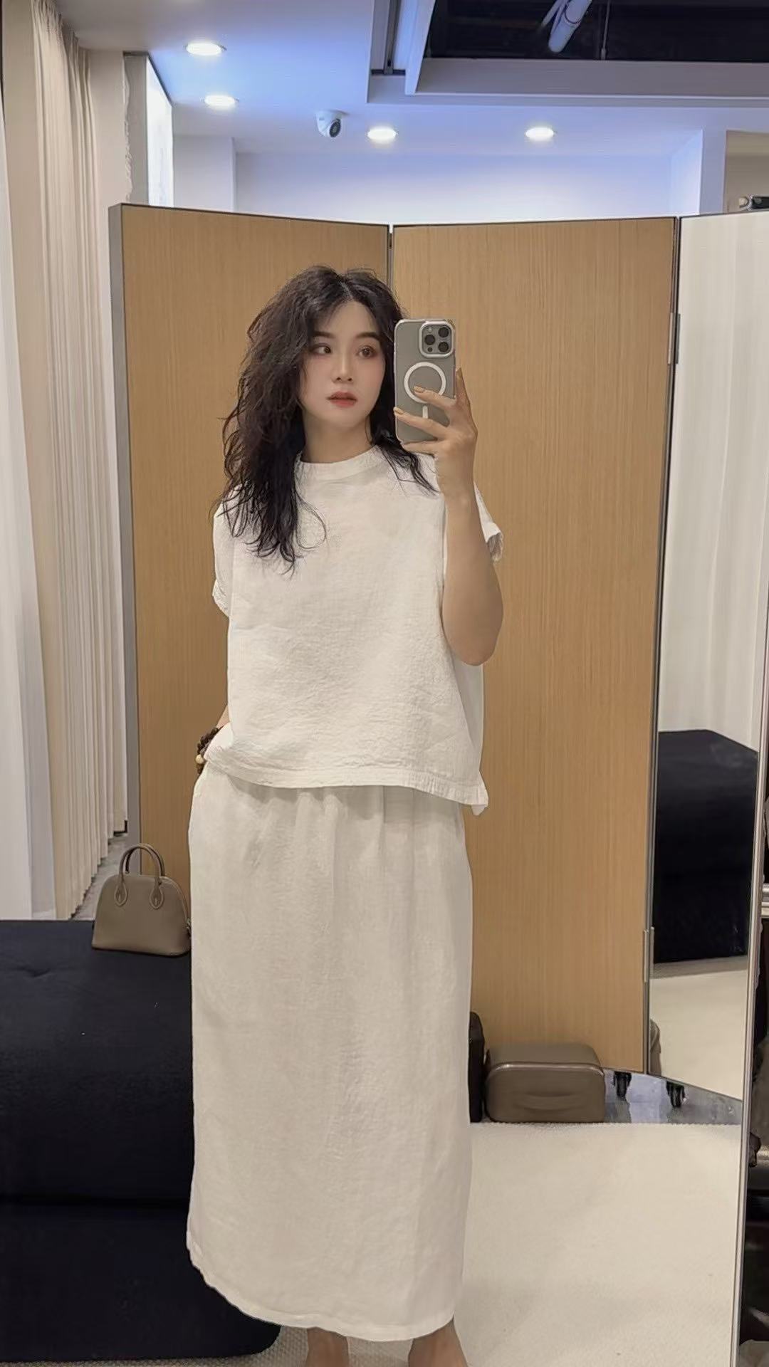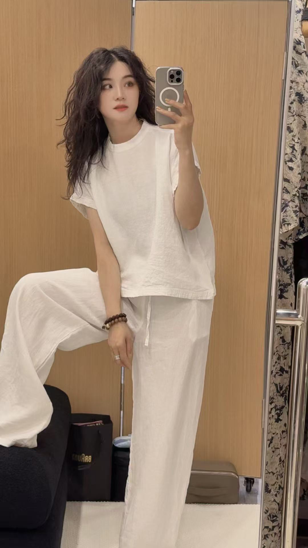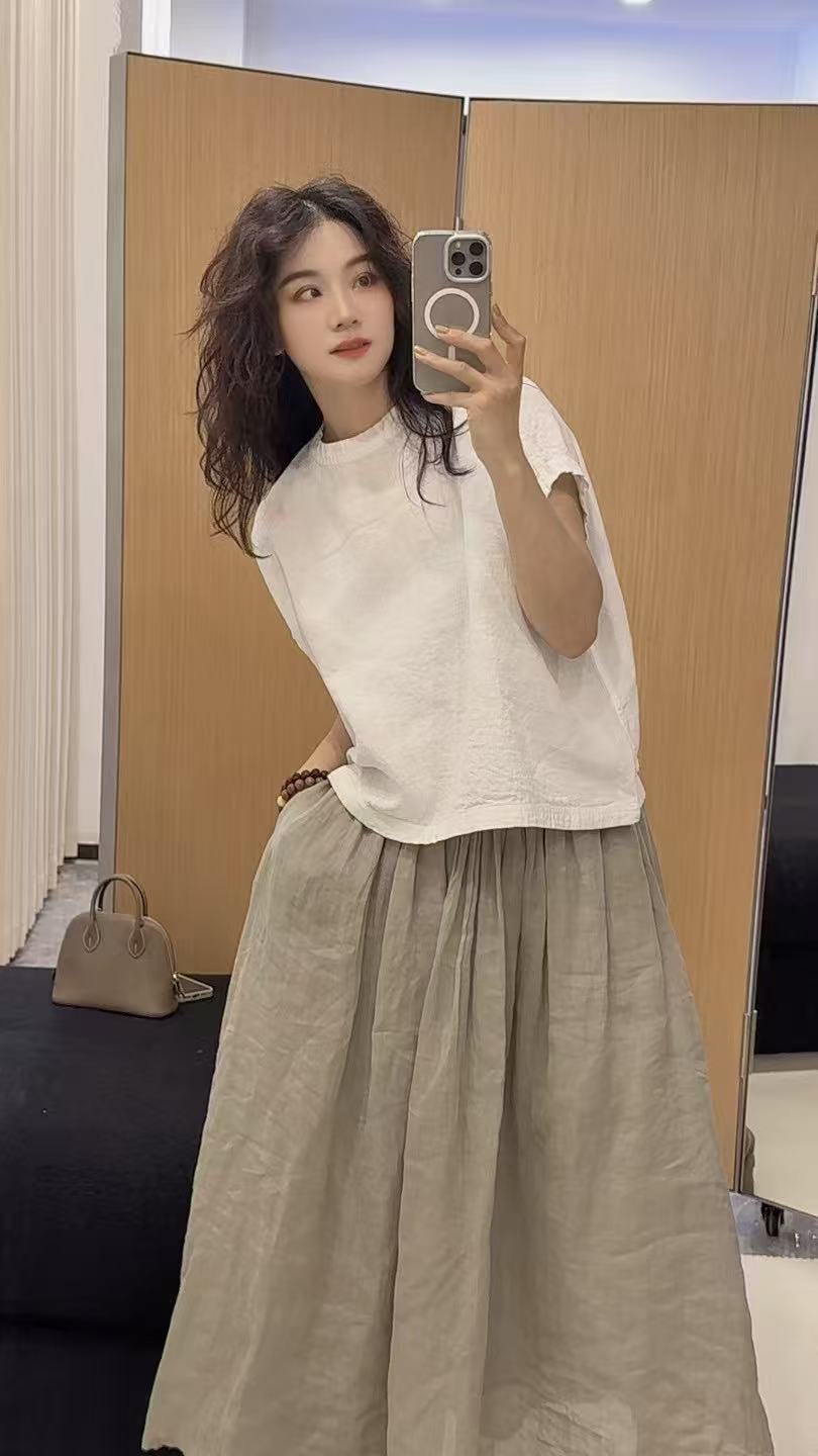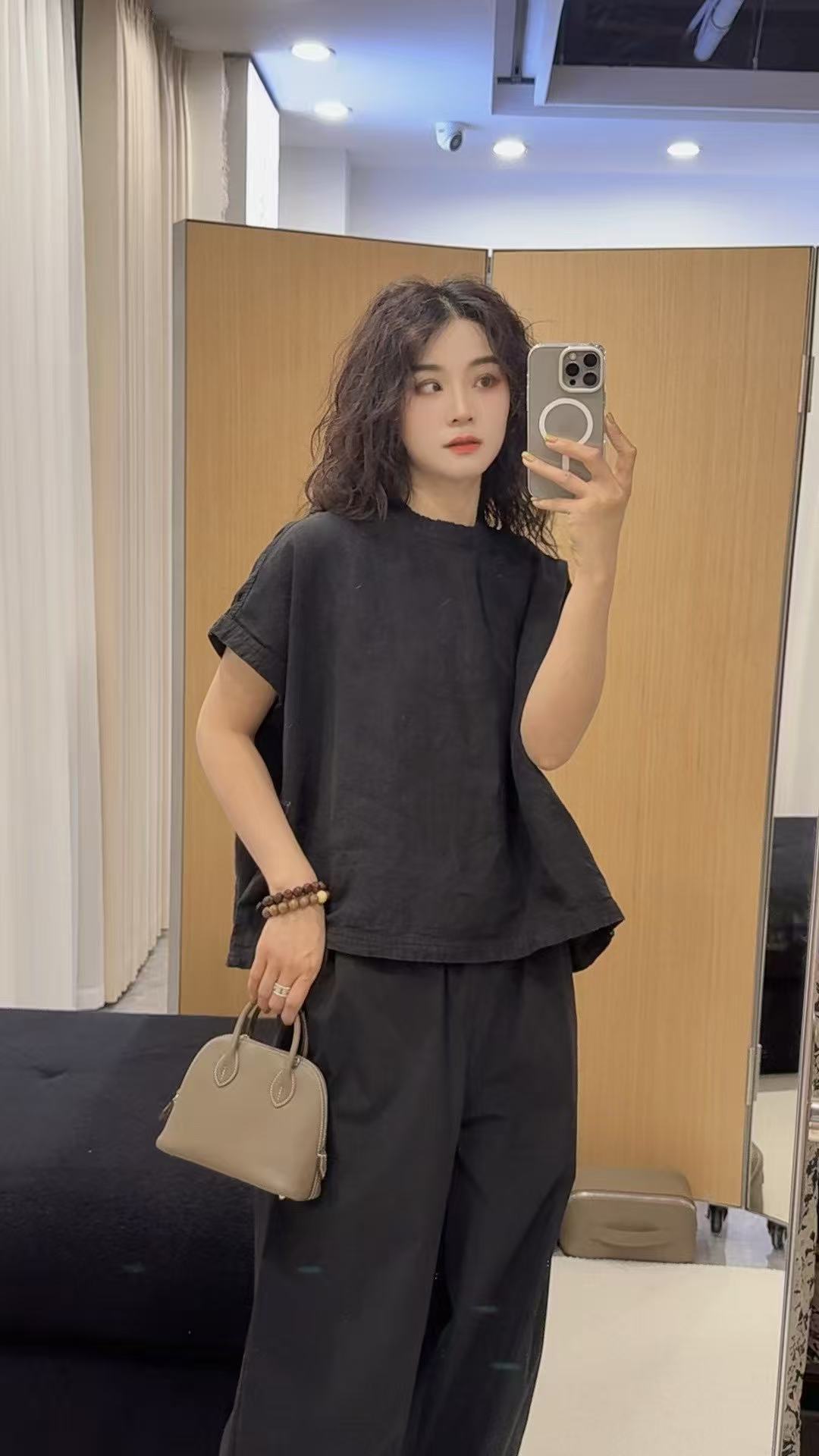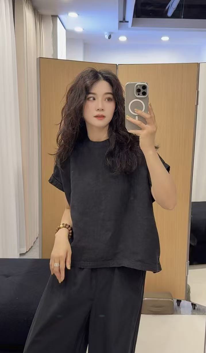 2025 여름 한국 스타일 느슨하고 간단한 대마 작은 플라잉 슬리브 스탠드 칼라 솔리드 컬러 풀오버 티셔츠 여성용 다용도 셔츠 Q652