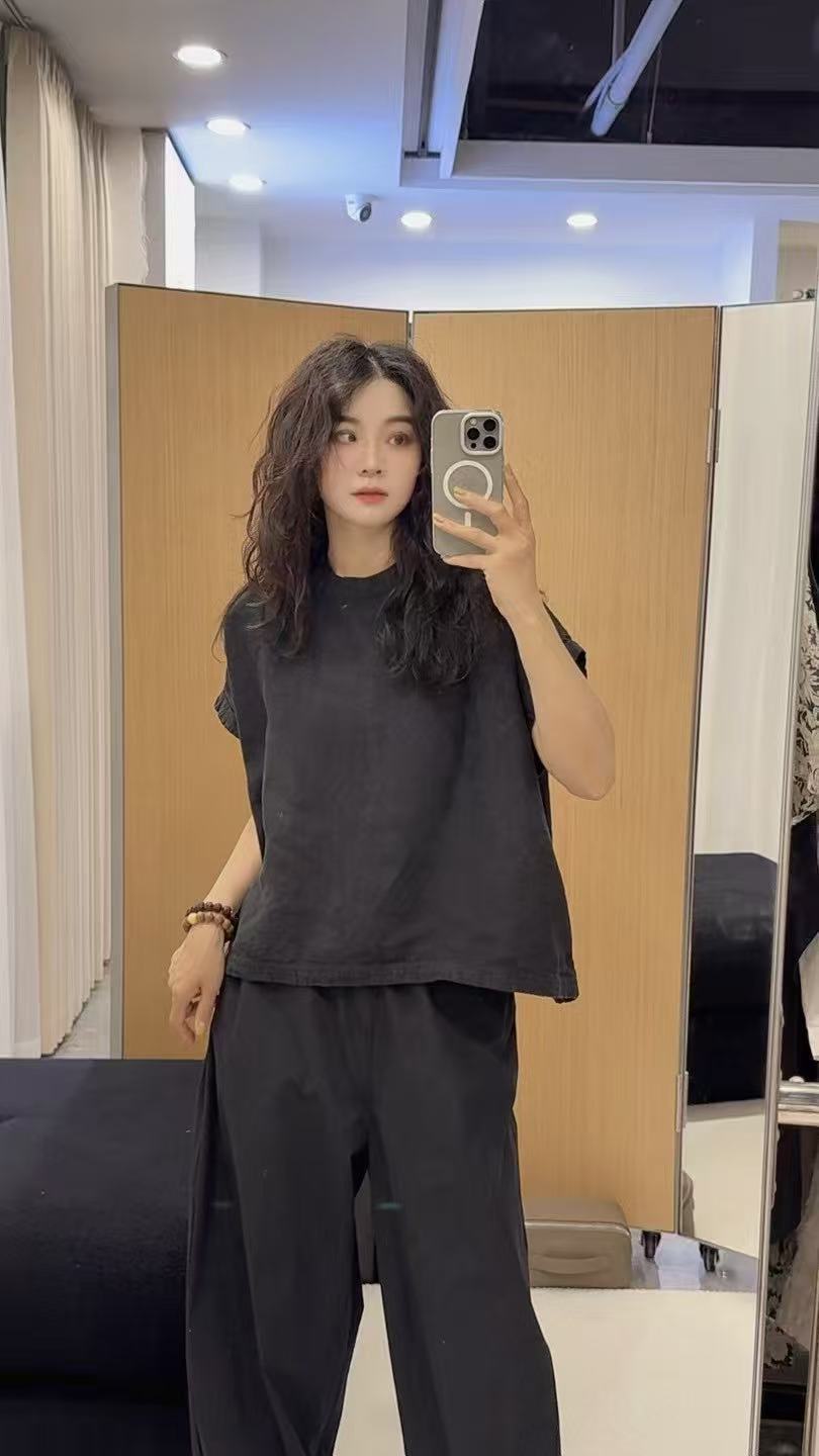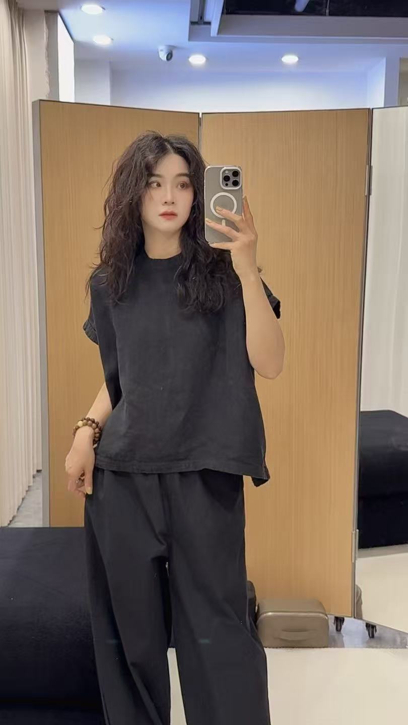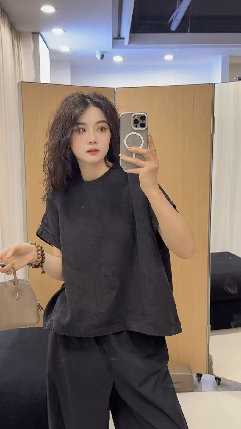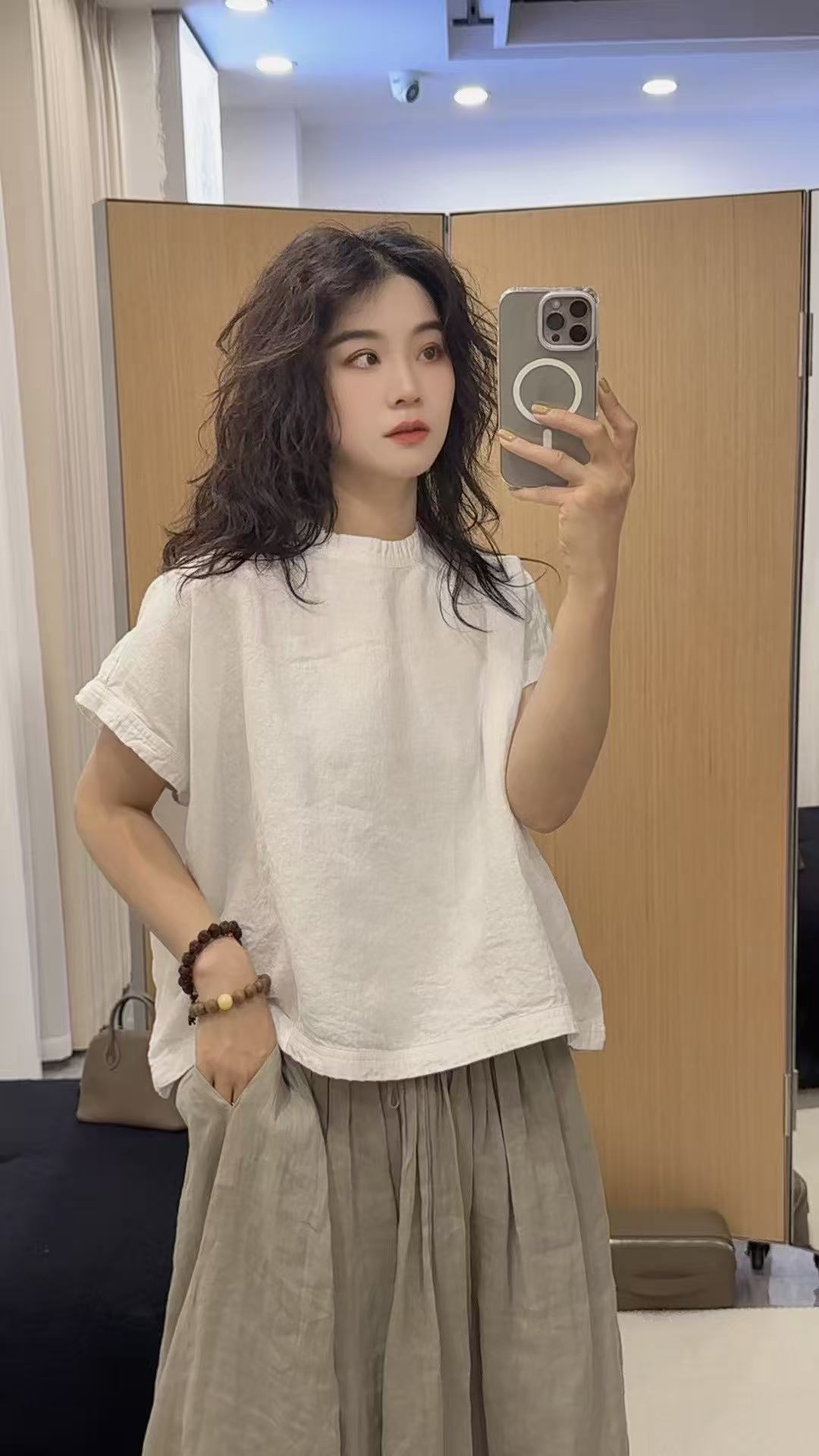 2025 여름 한국 스타일 느슨하고 간단한 대마 작은 플라잉 슬리브 스탠드 칼라 솔리드 컬러 풀오버 티셔츠 여성용 다용도 셔츠 Q652스토어 가기