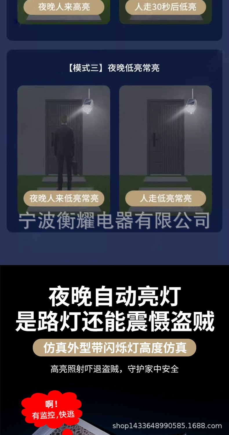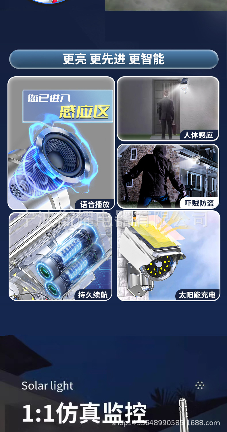 대형 고객 도매 태양 광 모니터링 조명 도난 방지 인체 유도 태양 시뮬레이션 언어 모니터링 조명