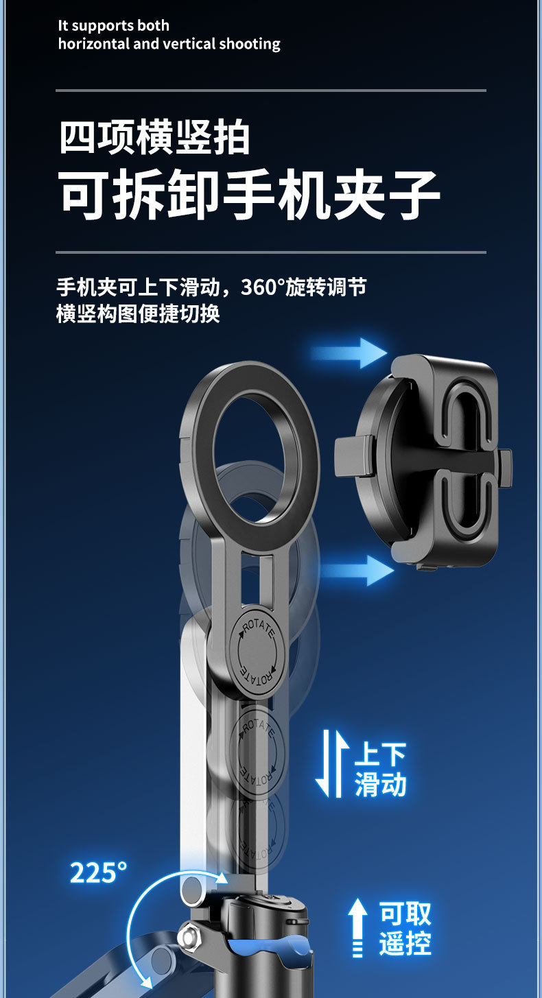 국경 간 자기 셀카 스틱 블루투스 셀카 스틱 휴대용 텔레스코픽 휴대 전화 홀더 Magsafe 핸들 촬영 보조 장치스토어 가기