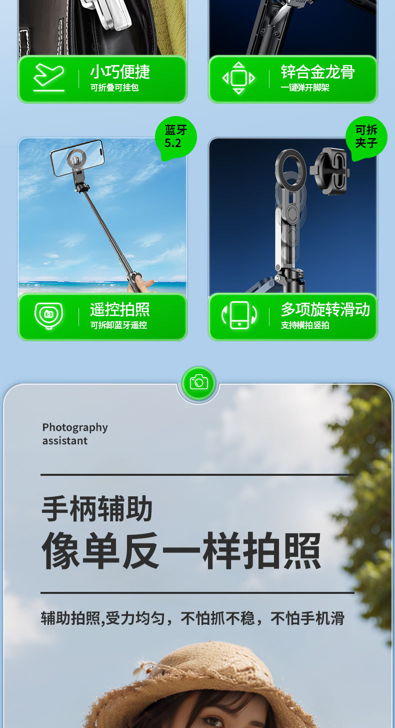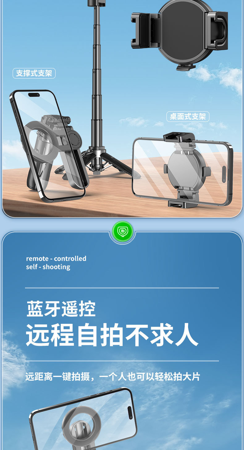 국경 간 자기 셀카 스틱 블루투스 셀카 스틱 휴대용 텔레스코픽 휴대 전화 홀더 Magsafe 핸들 촬영 보조 장치