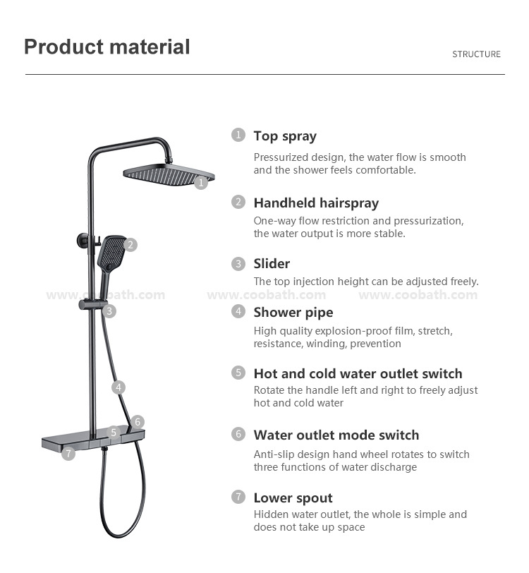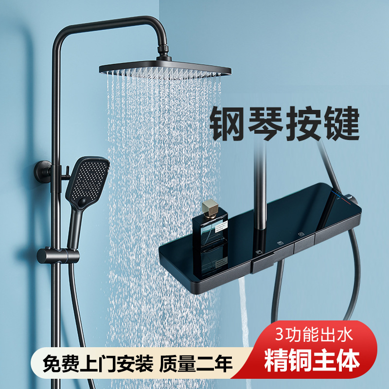 둥근 튜브 전체 구리 샤워 피아노 키 샤워 가정용 일정한 온도 부스터 노즐 욕실 레인 샤워스토어 가기