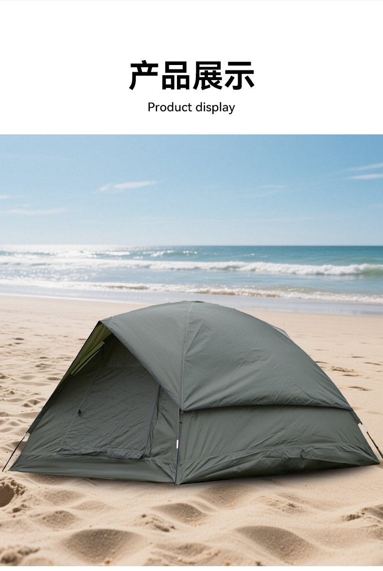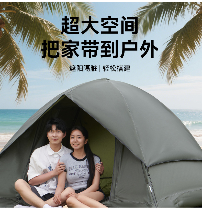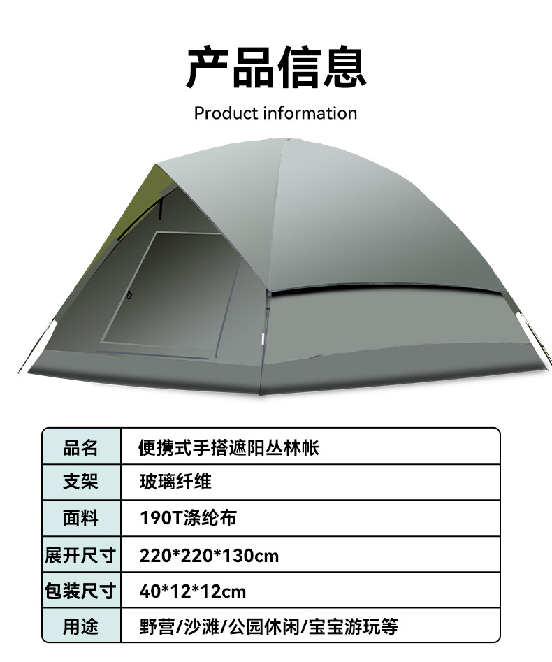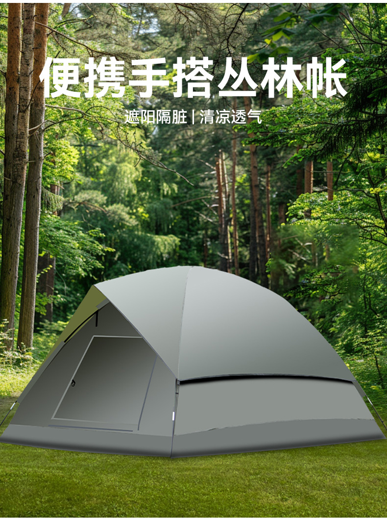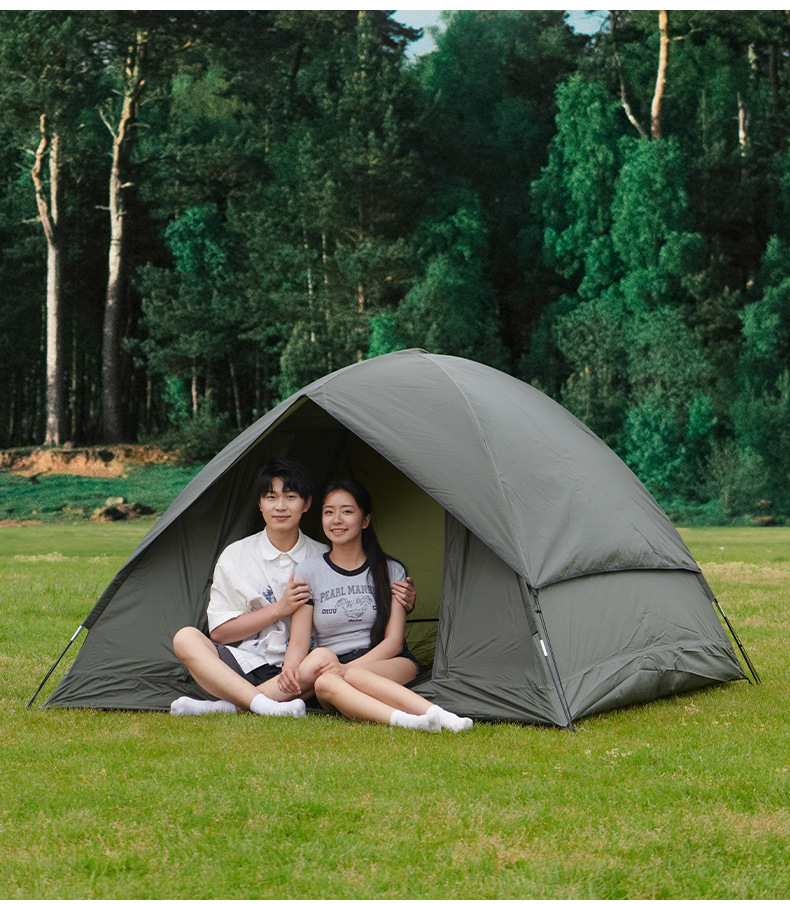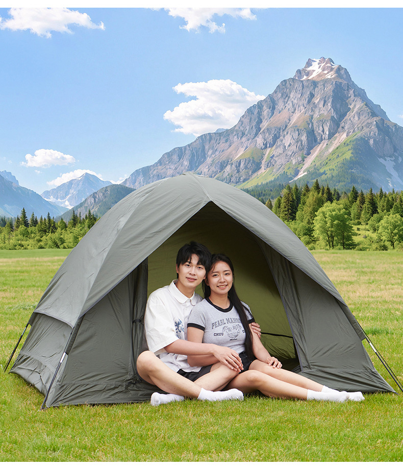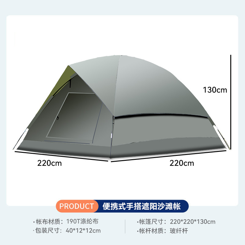 3-4인용 더블 레이어 핸드 캠핑 텐트, 넓은 공간, 야외 자외선 차단제 캠핑 텐트, 공원 가족 캠핑 텐트