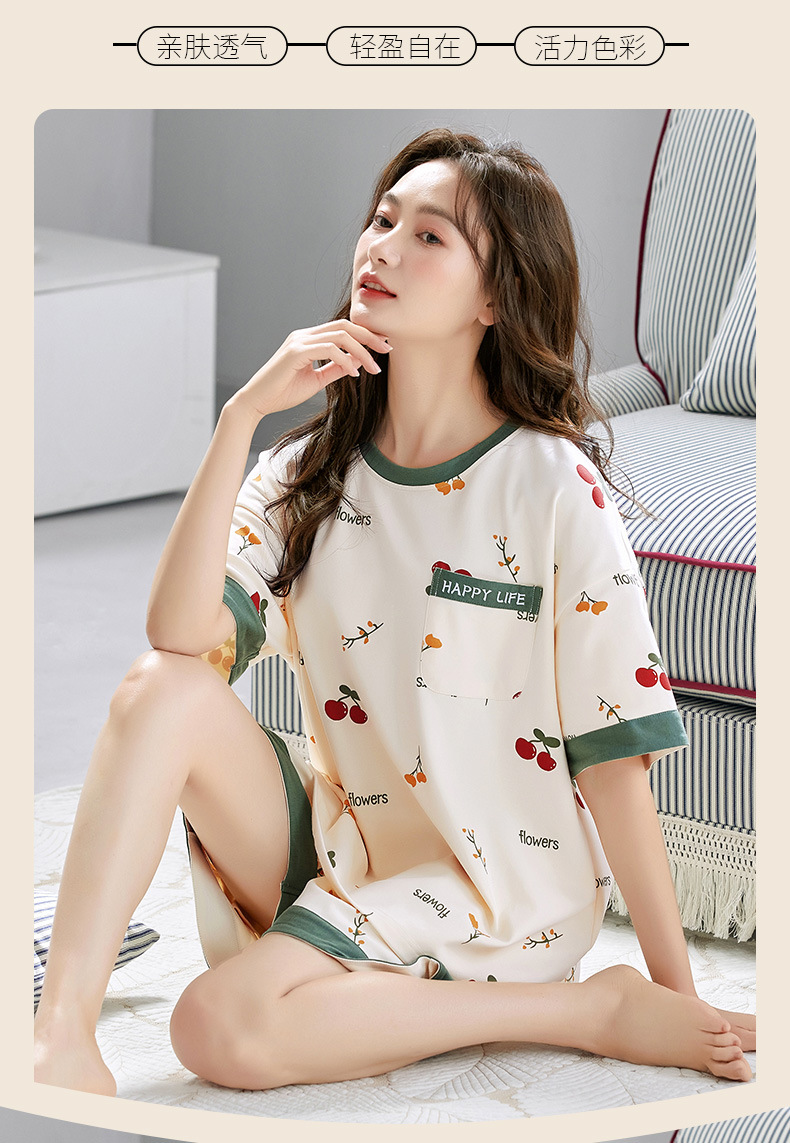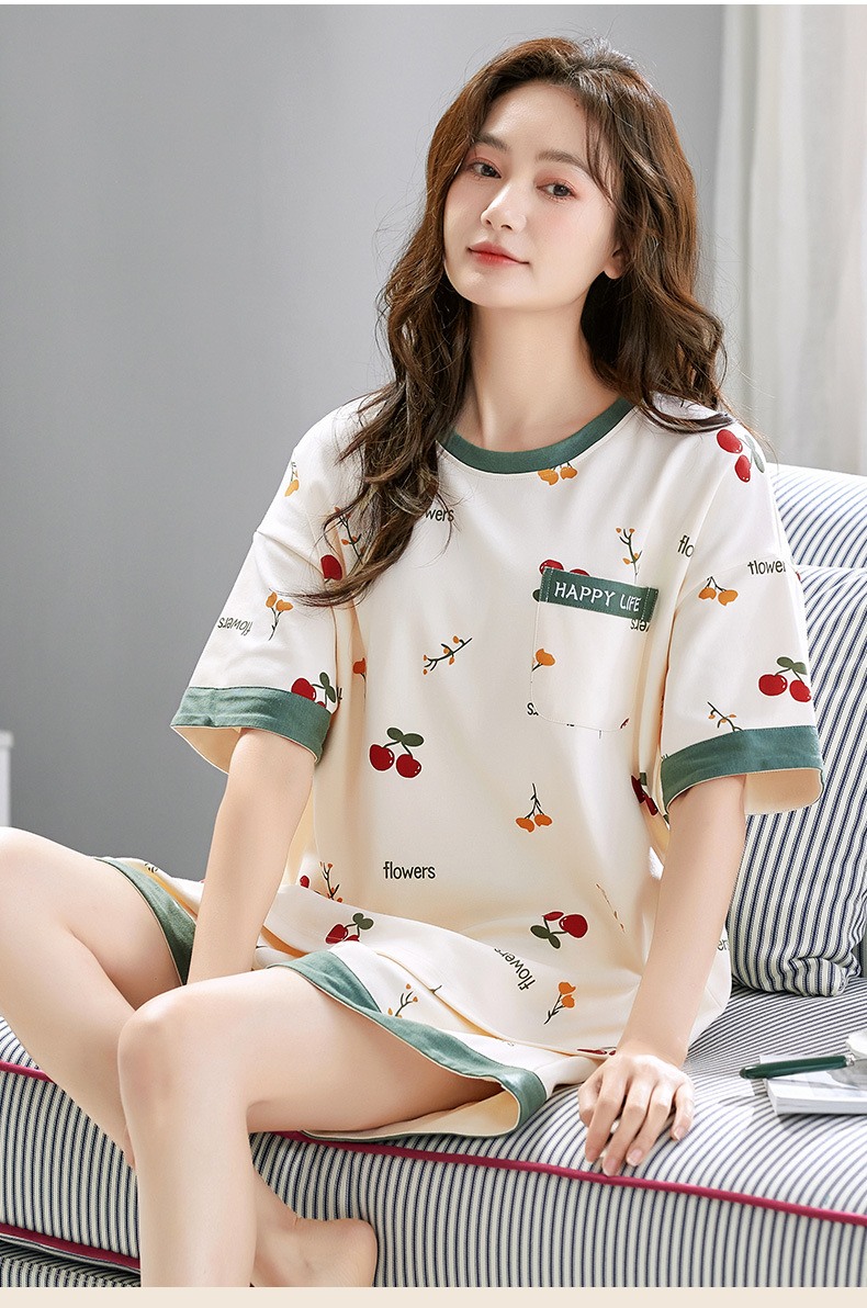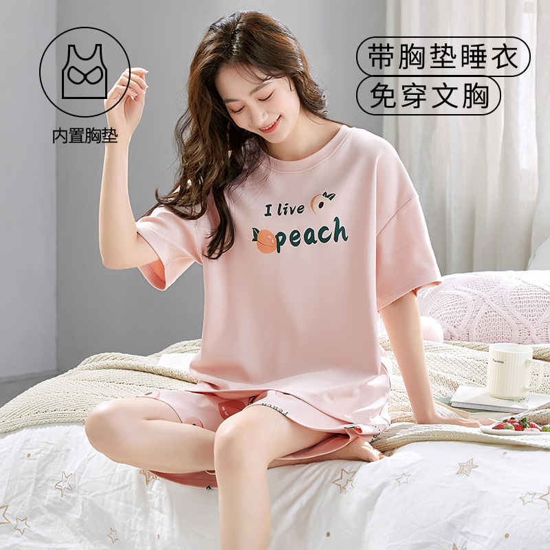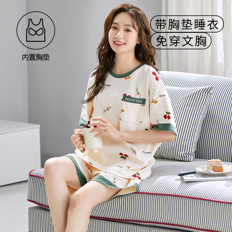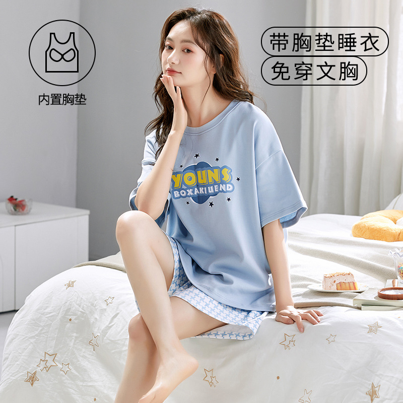 여성용 여름 잠옷, 고정형 가슴 패드가 있는 반팔 반바지 투피스 세트, 외출복으로도 착용 가능, 헐렁한 핏의 캐주얼 홈웨어스토어 가기