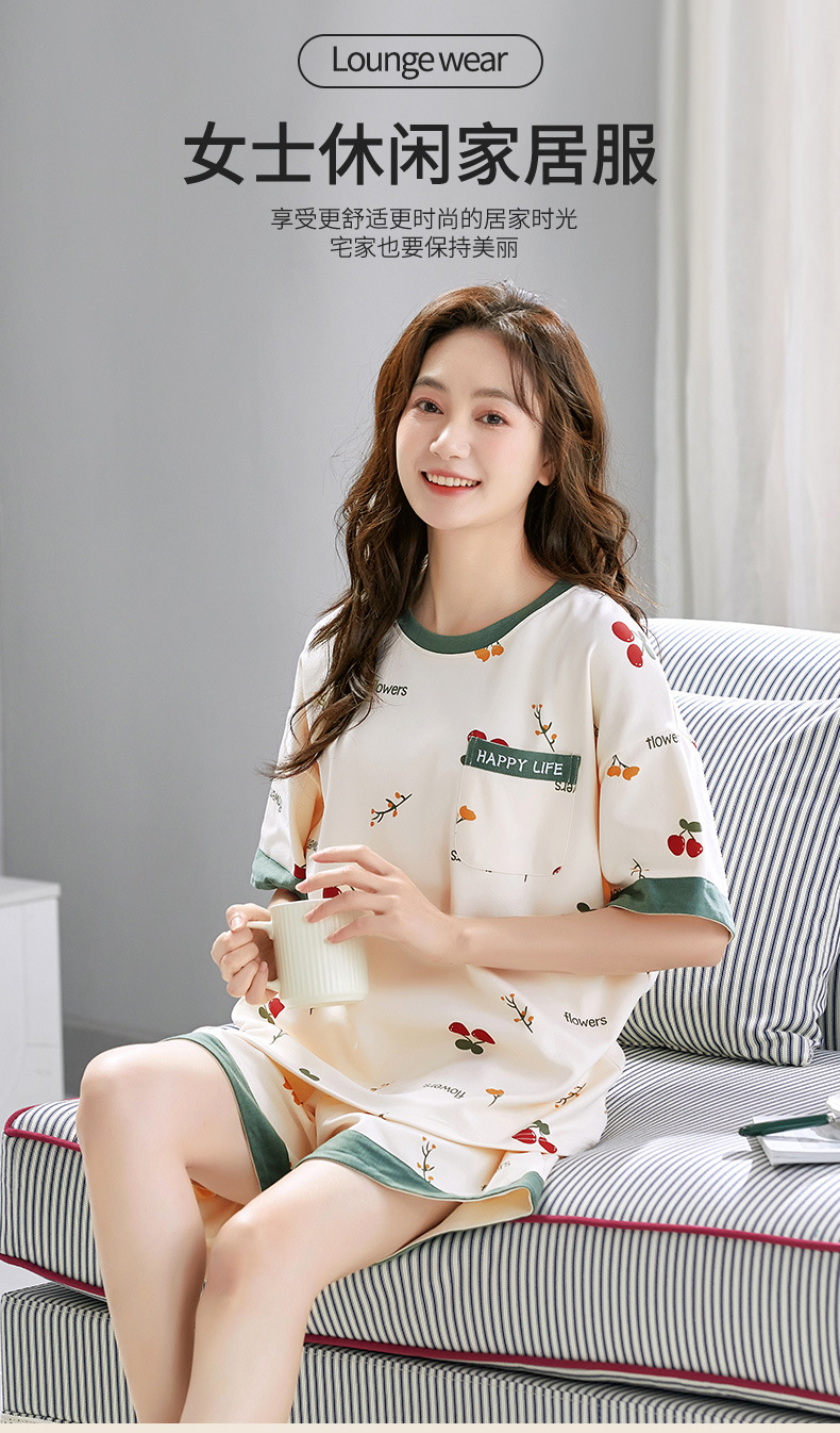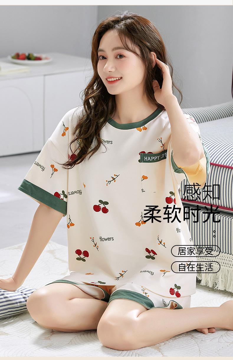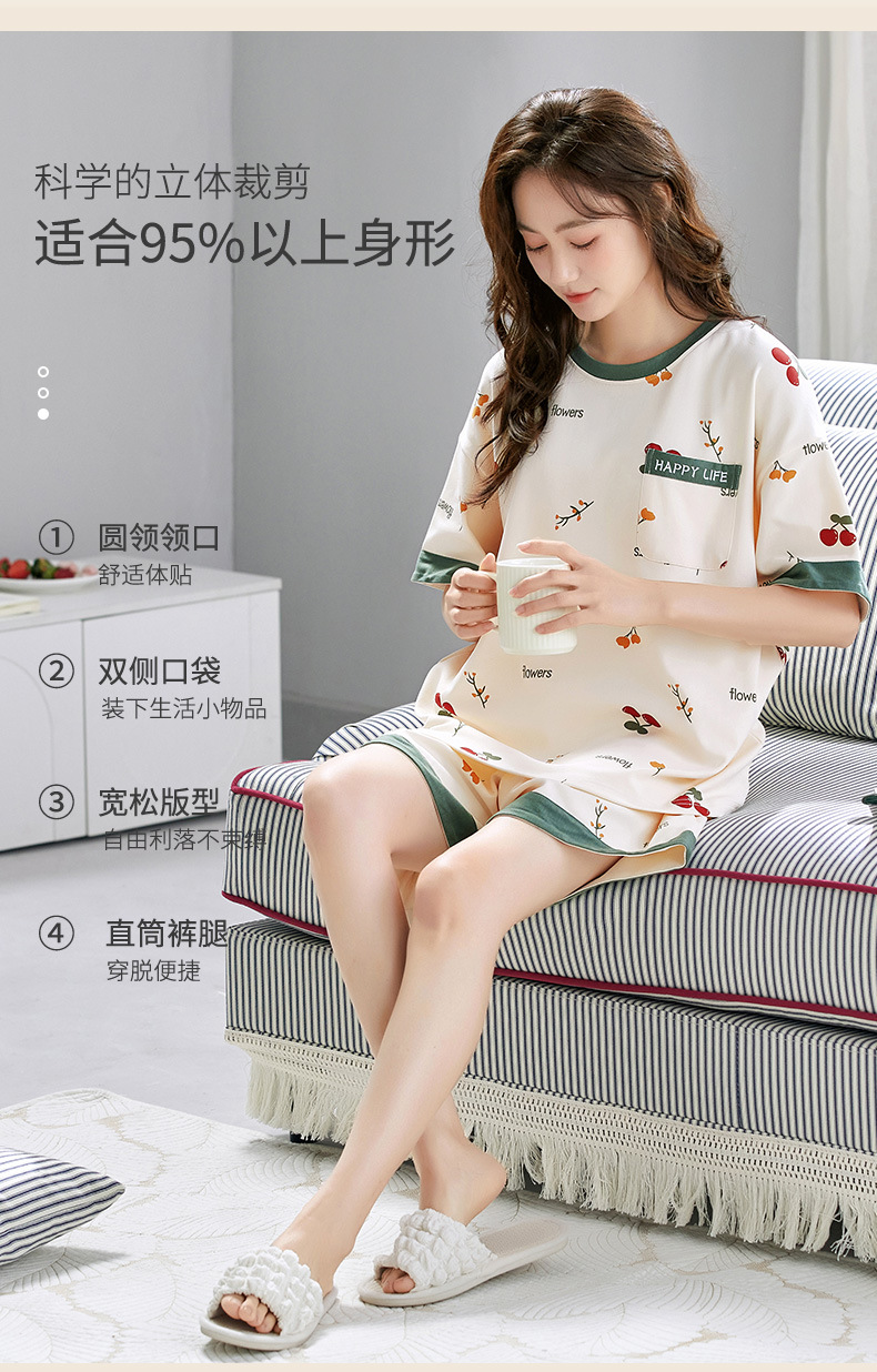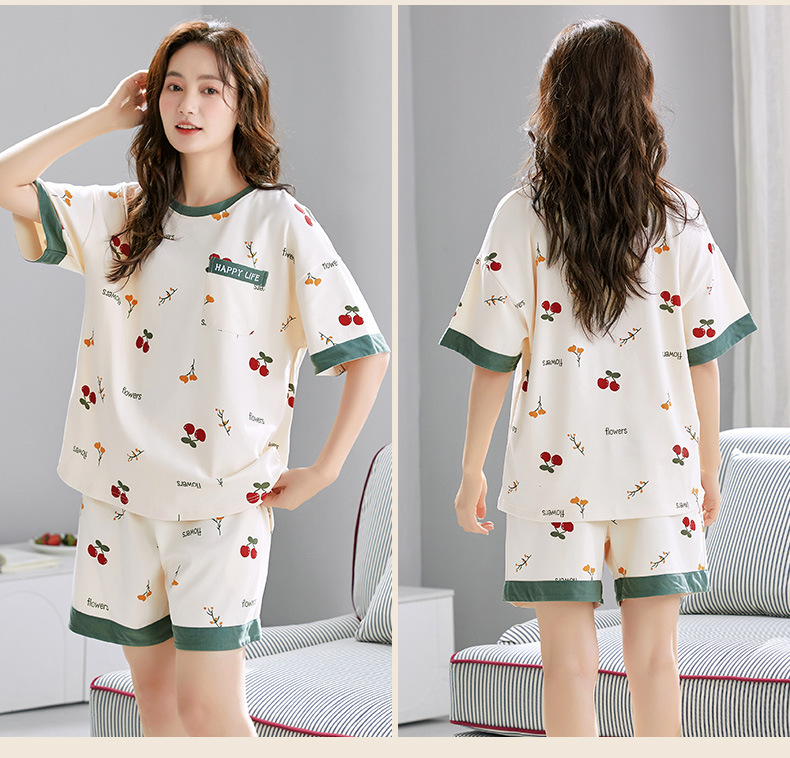 여성용 여름 잠옷, 고정형 가슴 패드가 있는 반팔 반바지 투피스 세트, 외출복으로도 착용 가능, 헐렁한 핏의 캐주얼 홈웨어스토어 가기