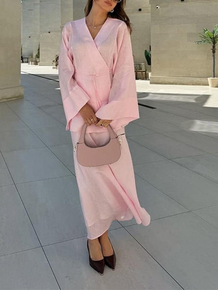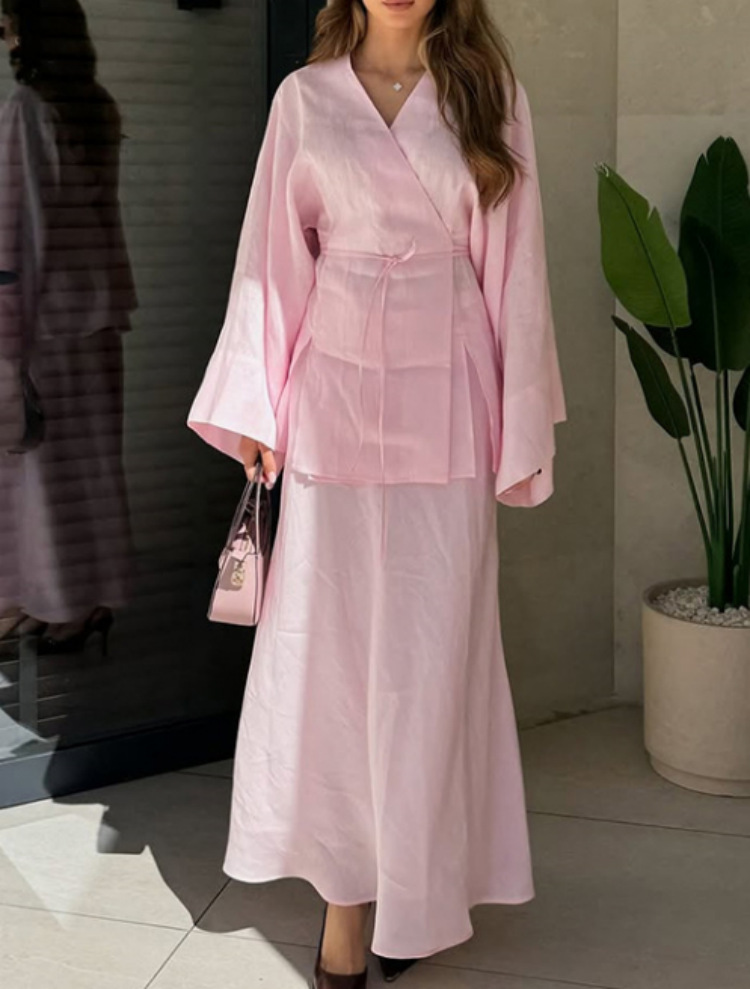 독립 웹사이트 해외배송 유럽 및 미국 스타일 레이스업 긴팔 스커트 세트, 여성용 패셔너블 캐주얼 투피스 세트 NTZ6013스토어 가기