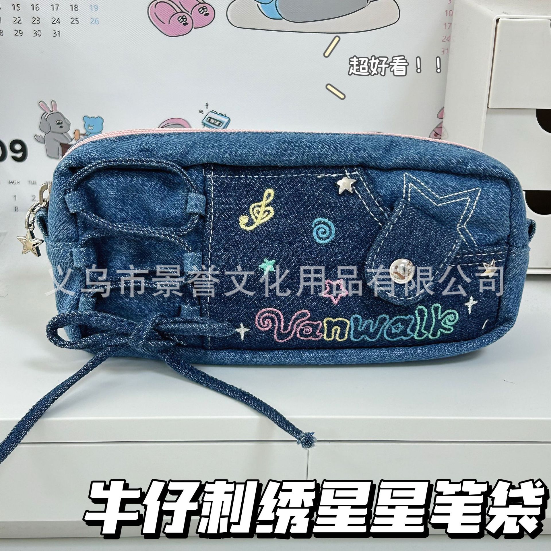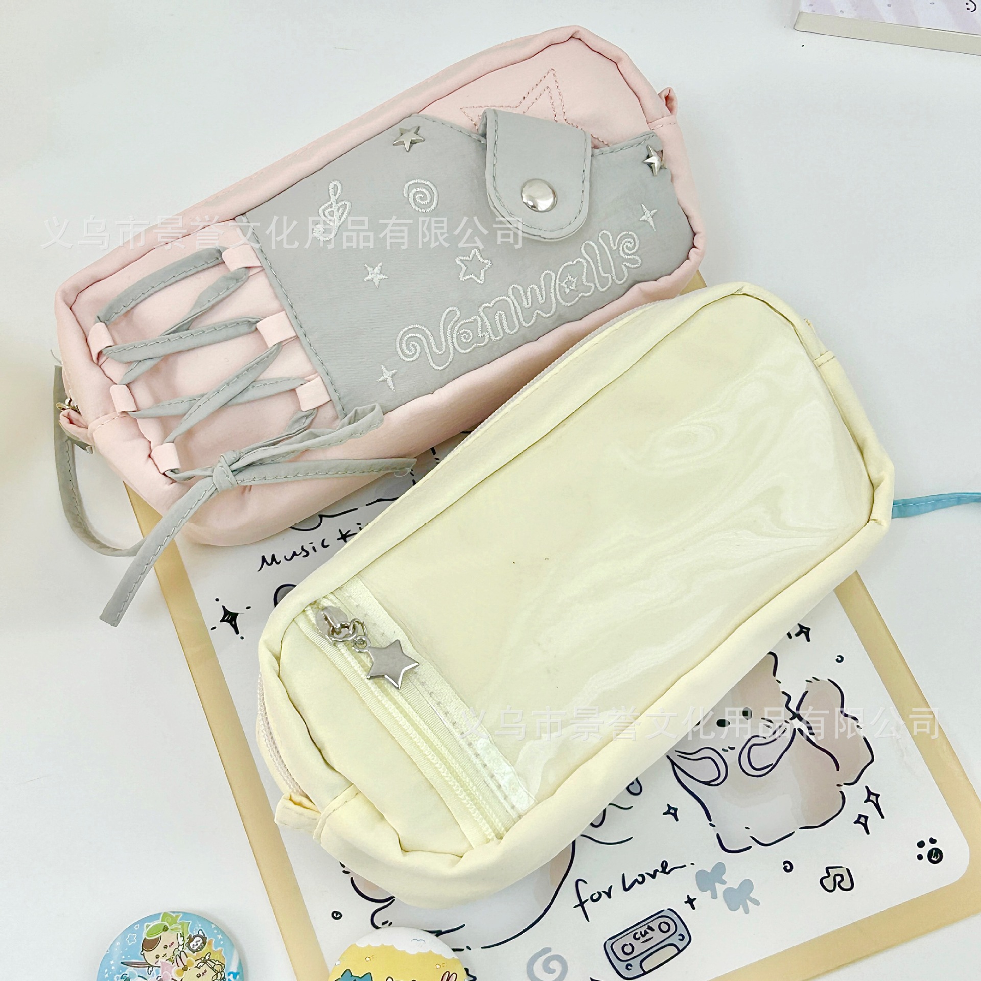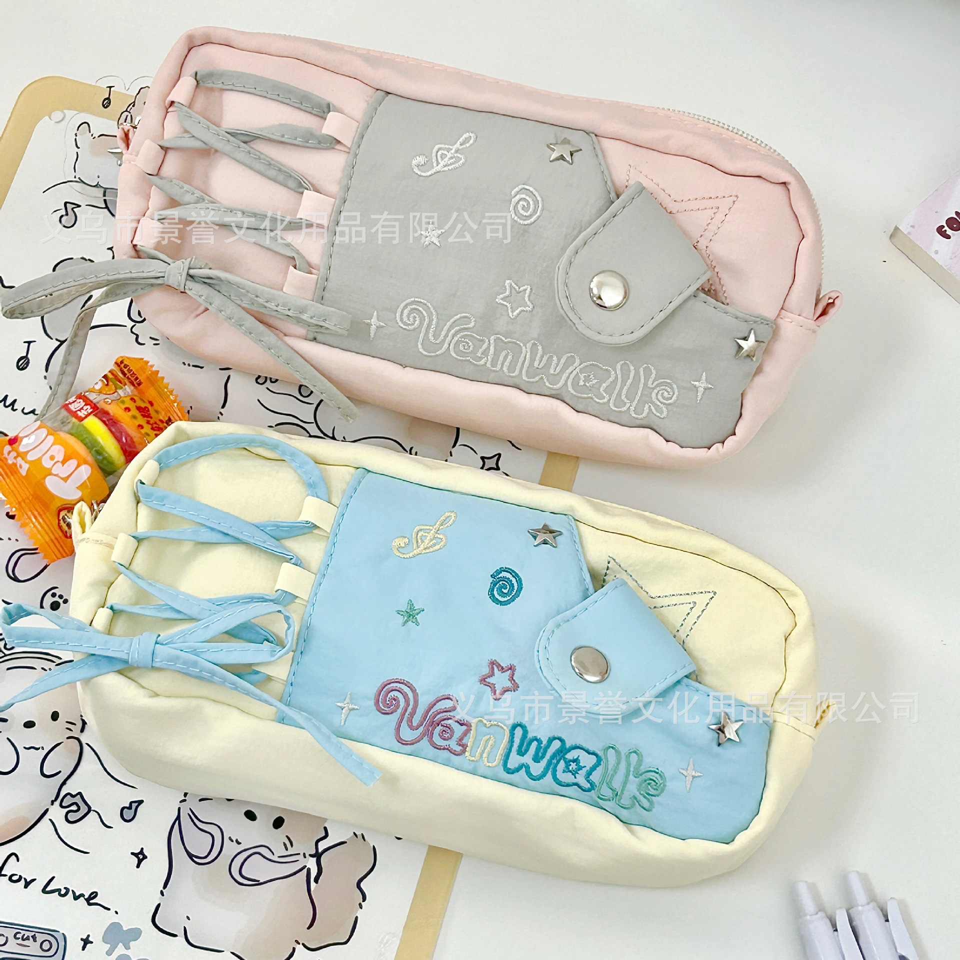 샤오홍슈 동일 스타일 별 모양 노트 드로우스트링 필통 대용량 고급스러운 디자인 학생용 귀여운 문구류 수납 가방스토어 가기
