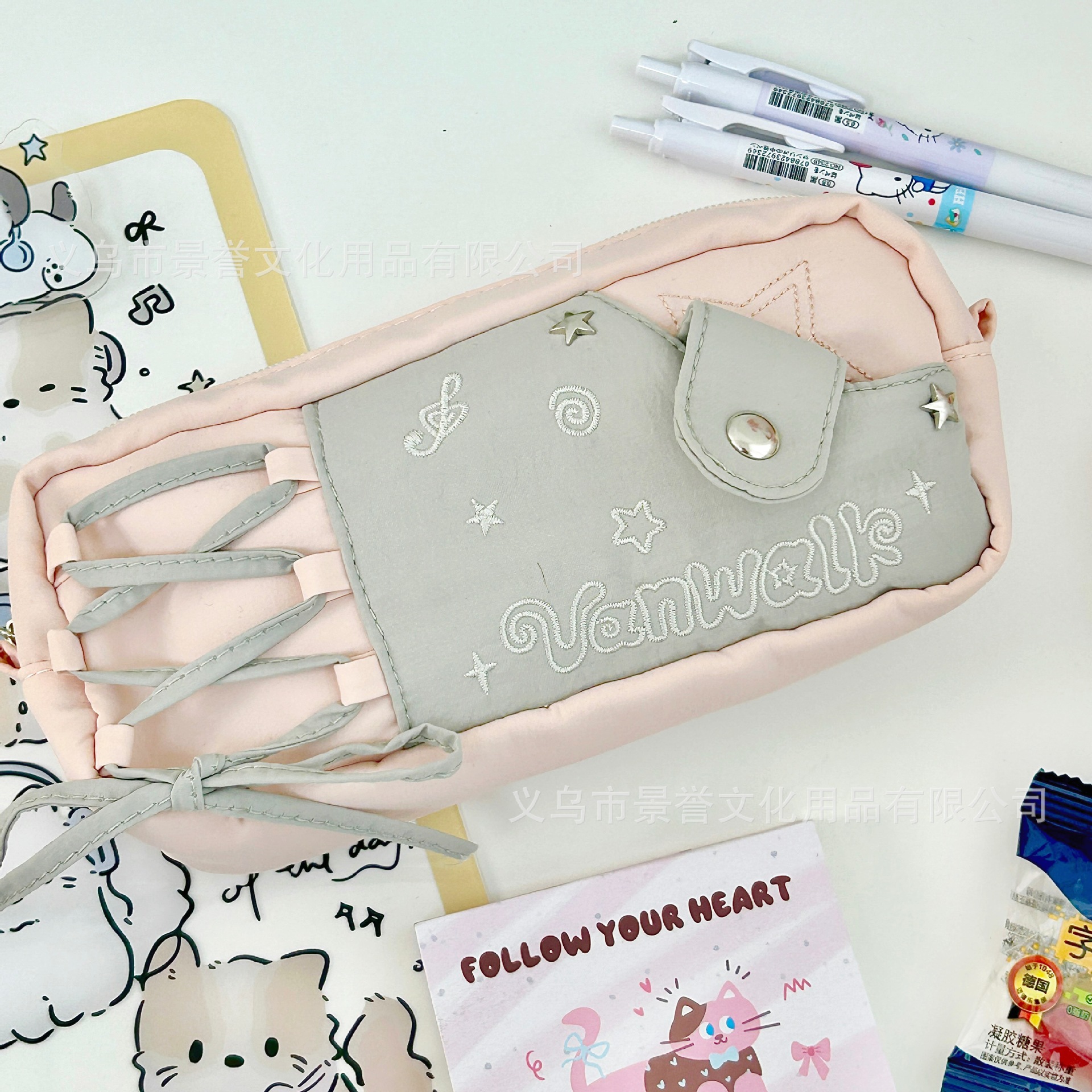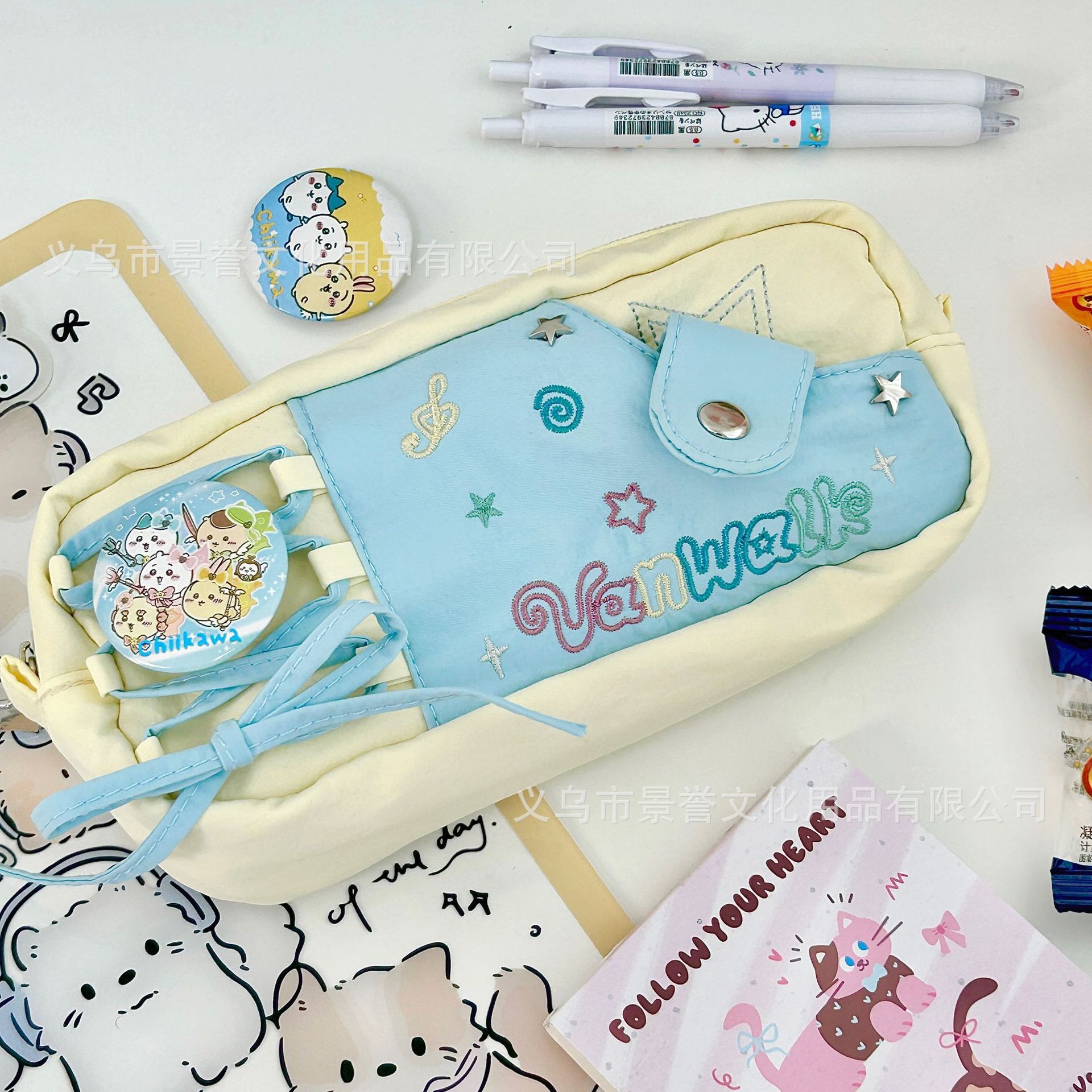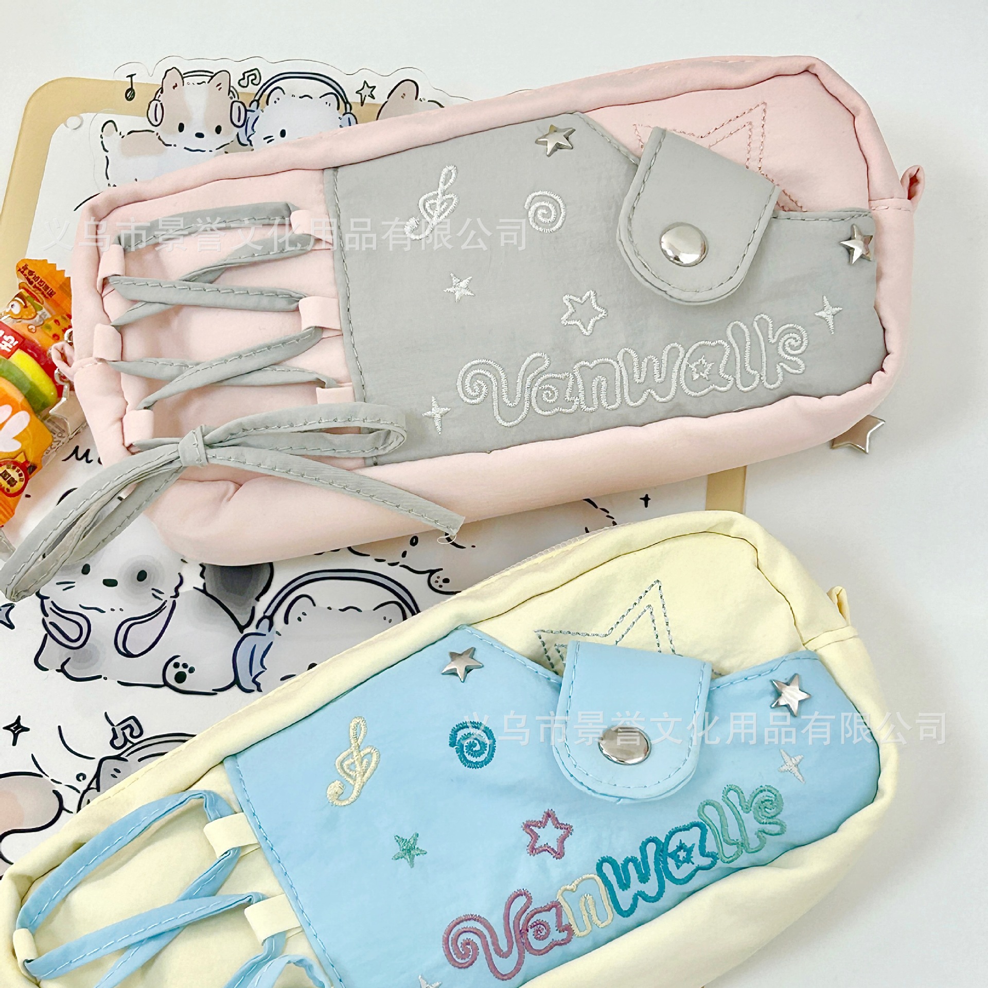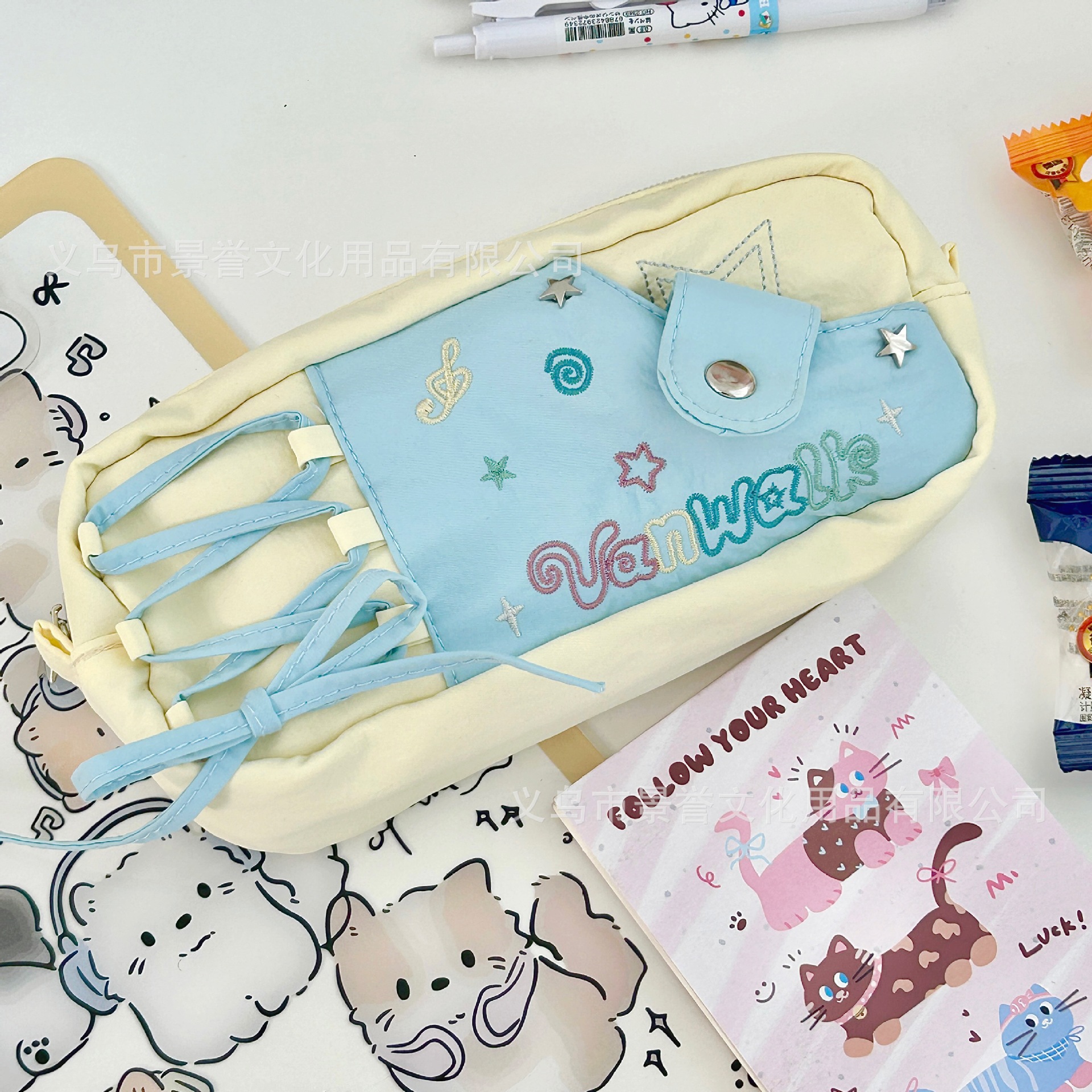 샤오홍슈 동일 스타일 별 모양 노트 드로우스트링 필통 대용량 고급스러운 디자인 학생용 귀여운 문구류 수납 가방스토어 가기