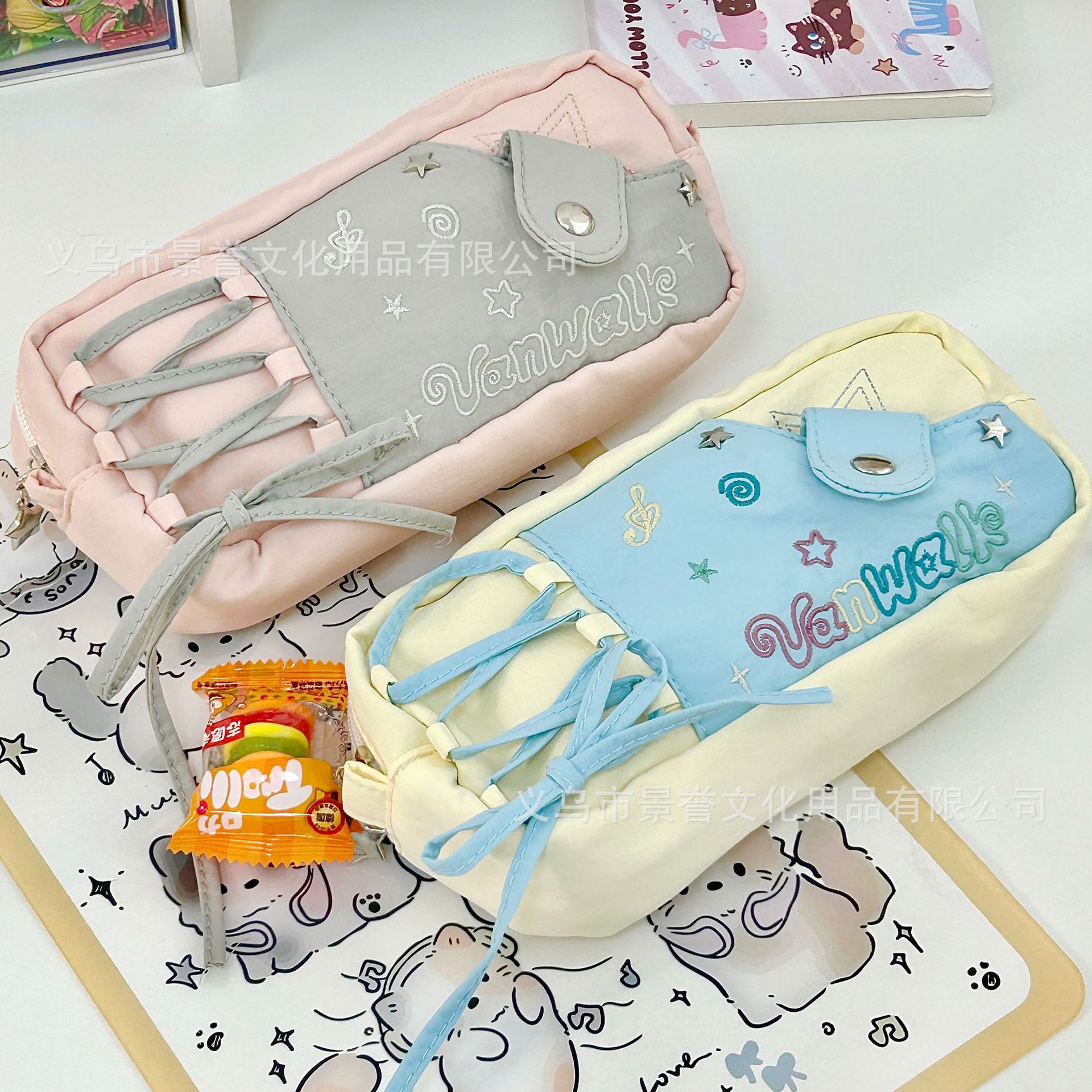 샤오홍슈 동일 스타일 별 모양 노트 드로우스트링 필통 대용량 고급스러운 디자인 학생용 귀여운 문구류 수납 가방