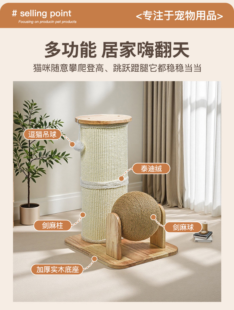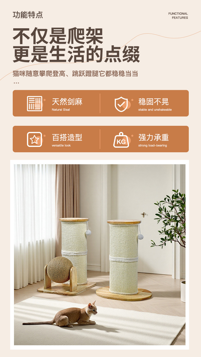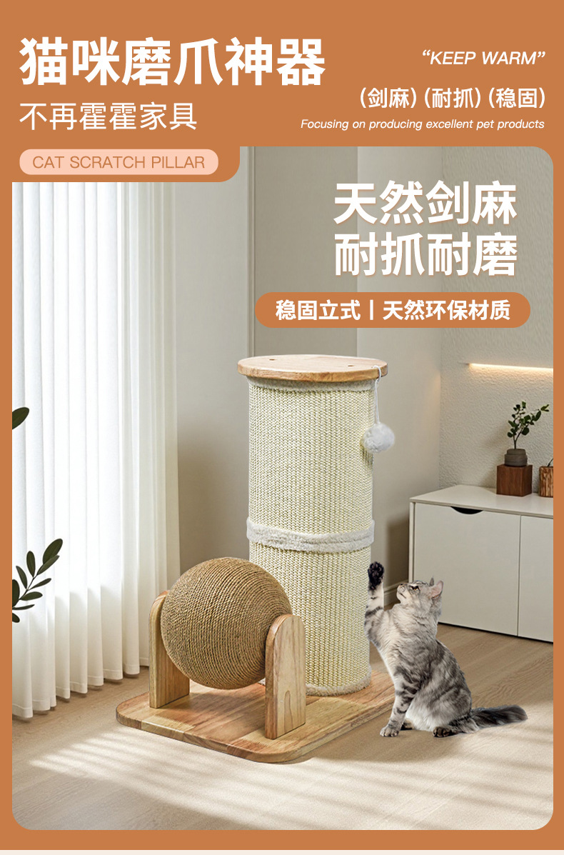 고양이 스크래치 기둥 소형 스탠드형 사자수염 고양이 발톱판 고양이 클라이밍 프레임 일체형 고양이 놀이용품 내구성 및 긁힘 방지스토어 가기