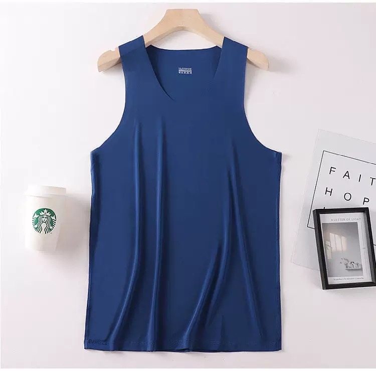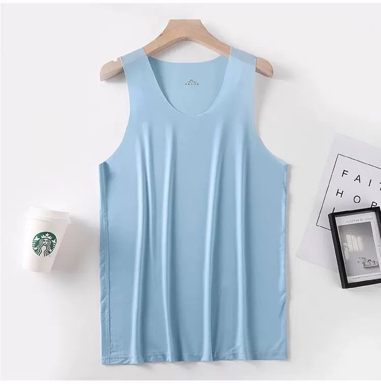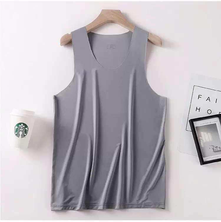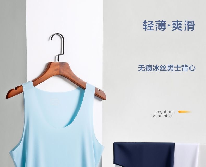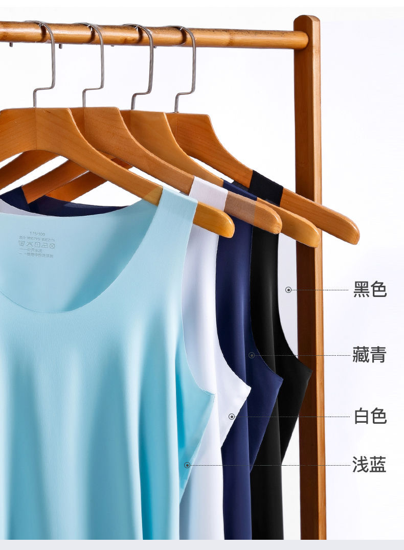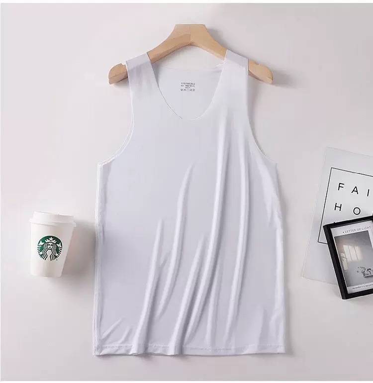 새로운 여름 남성용 아이스 실크 심리스 조끼 라운드 넥 슬림 피트 스포츠 고탄성 바닥 탑 탑 좁은 어깨 속옷스토어 가기