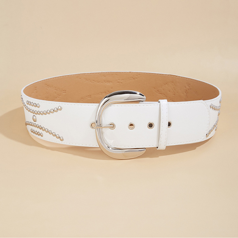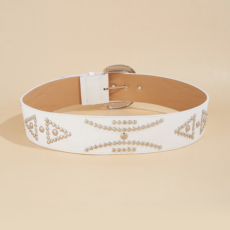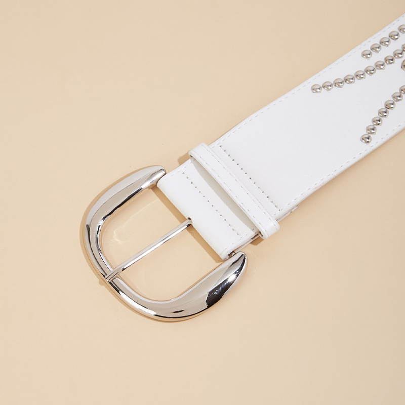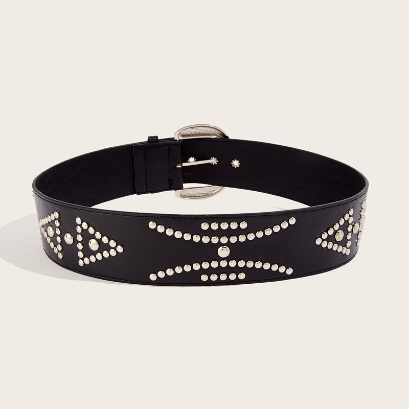 유럽과 미국의 복고풍 맞춤형 핫 소녀 실버 와이드 벨트 y2k 리벳 가죽 펑크 스타일 패션 벨트 여성용 허리띠