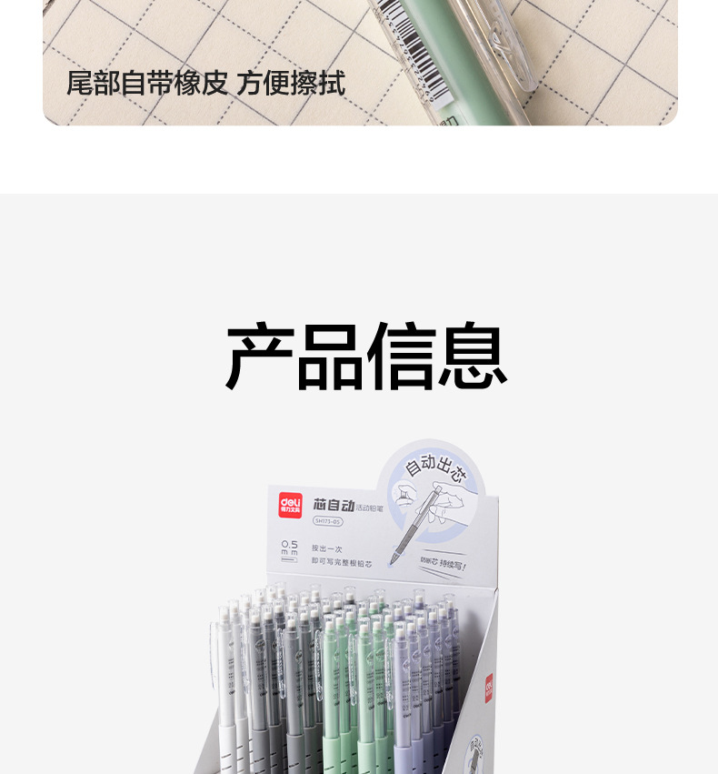 초등학생을 위한 델리 자동연필 0.5 자동심 샤프펜슬 0.7 필기펜 자동펜 문구