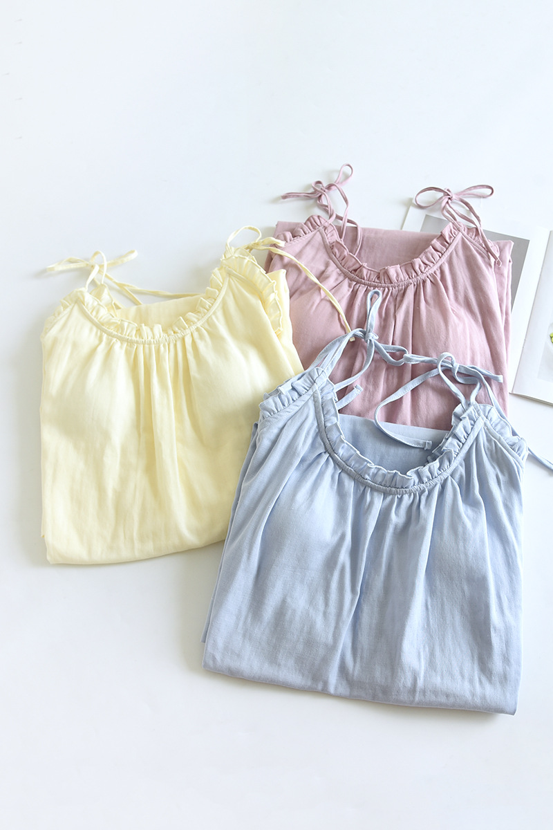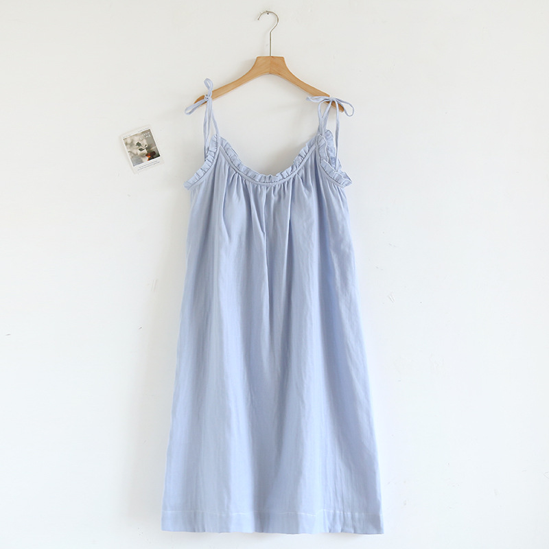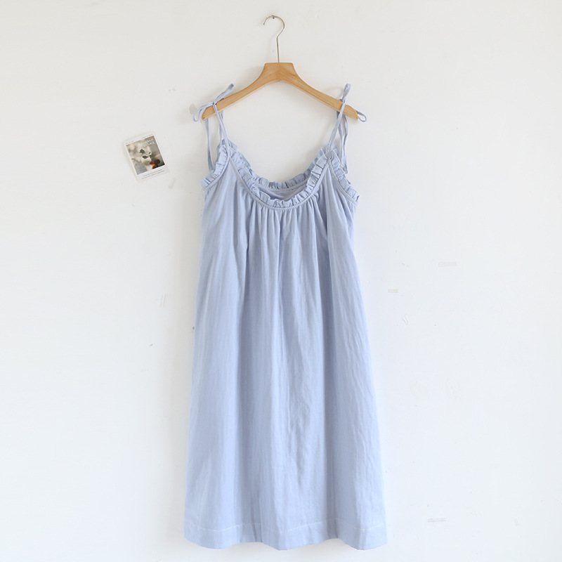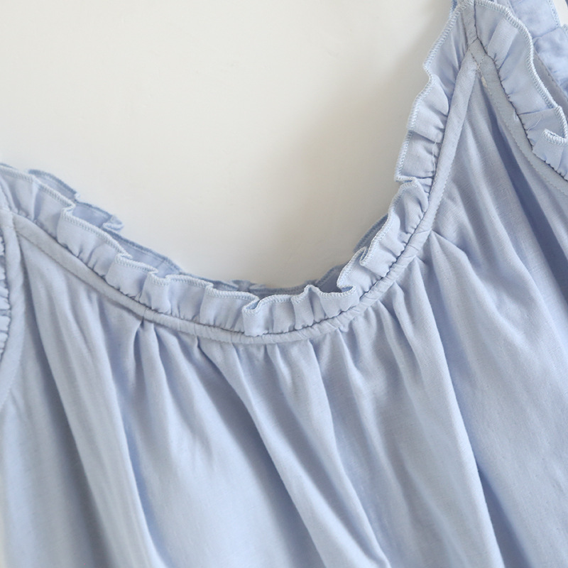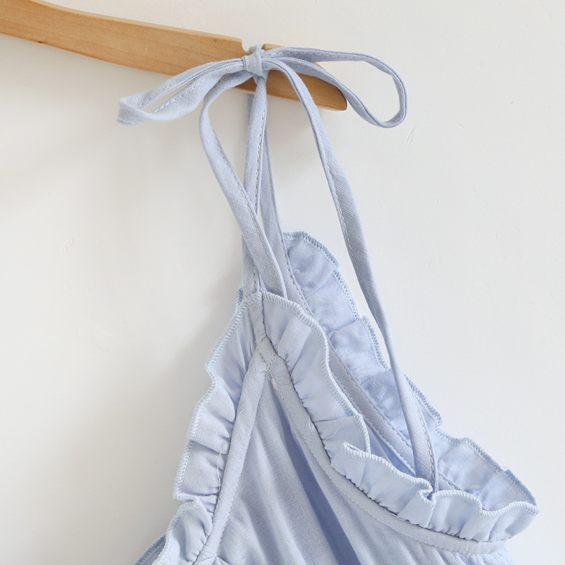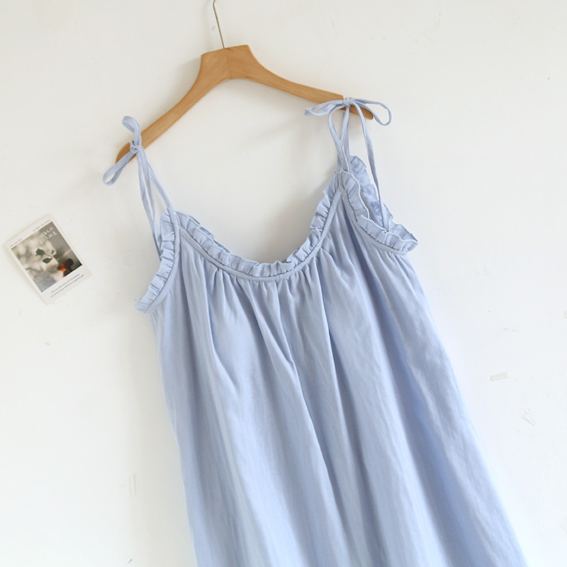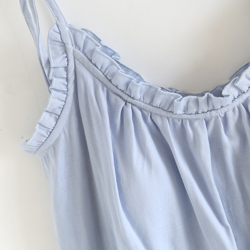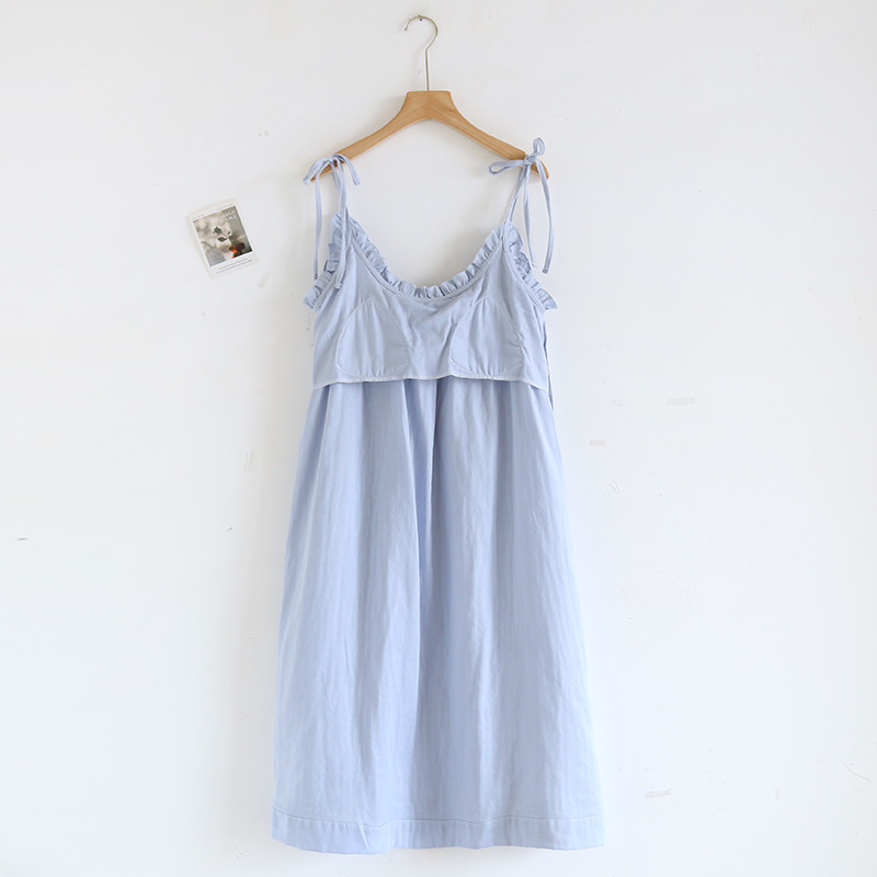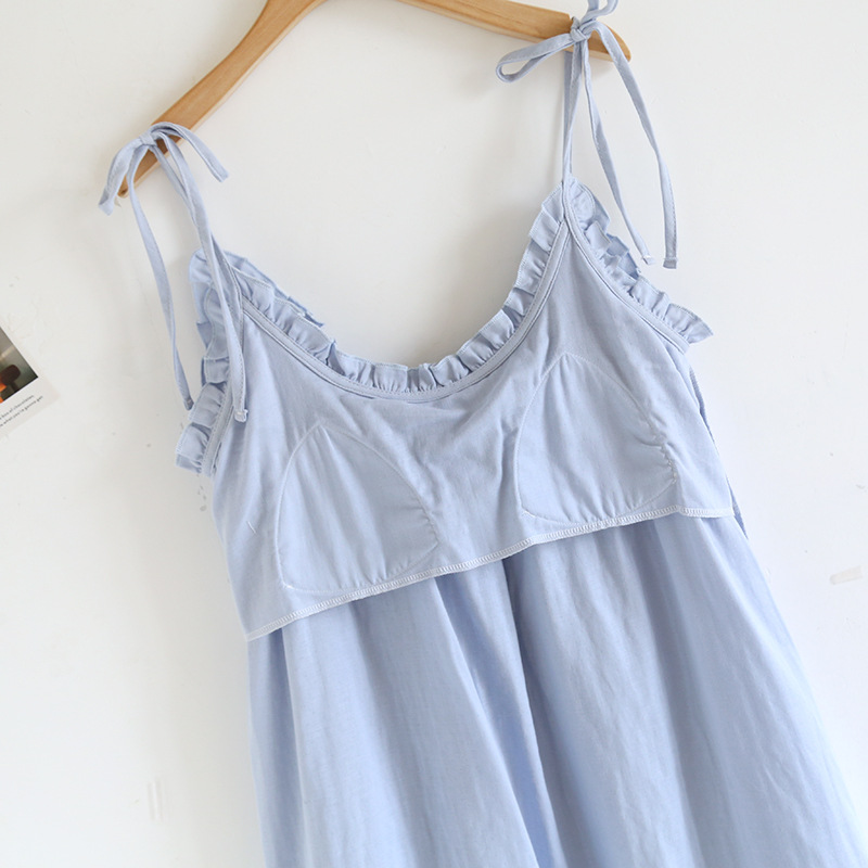 봄 여름 여성용 서스펜더 작은 나무 귓불 등이없는 루즈한 잠옷, 가슴 패드 포함, 홈웨어, 외부에서 착용할 수 있는 서스펜더 롱 스커트스토어 가기