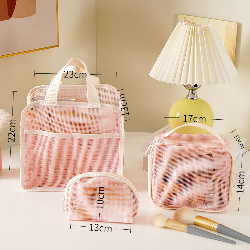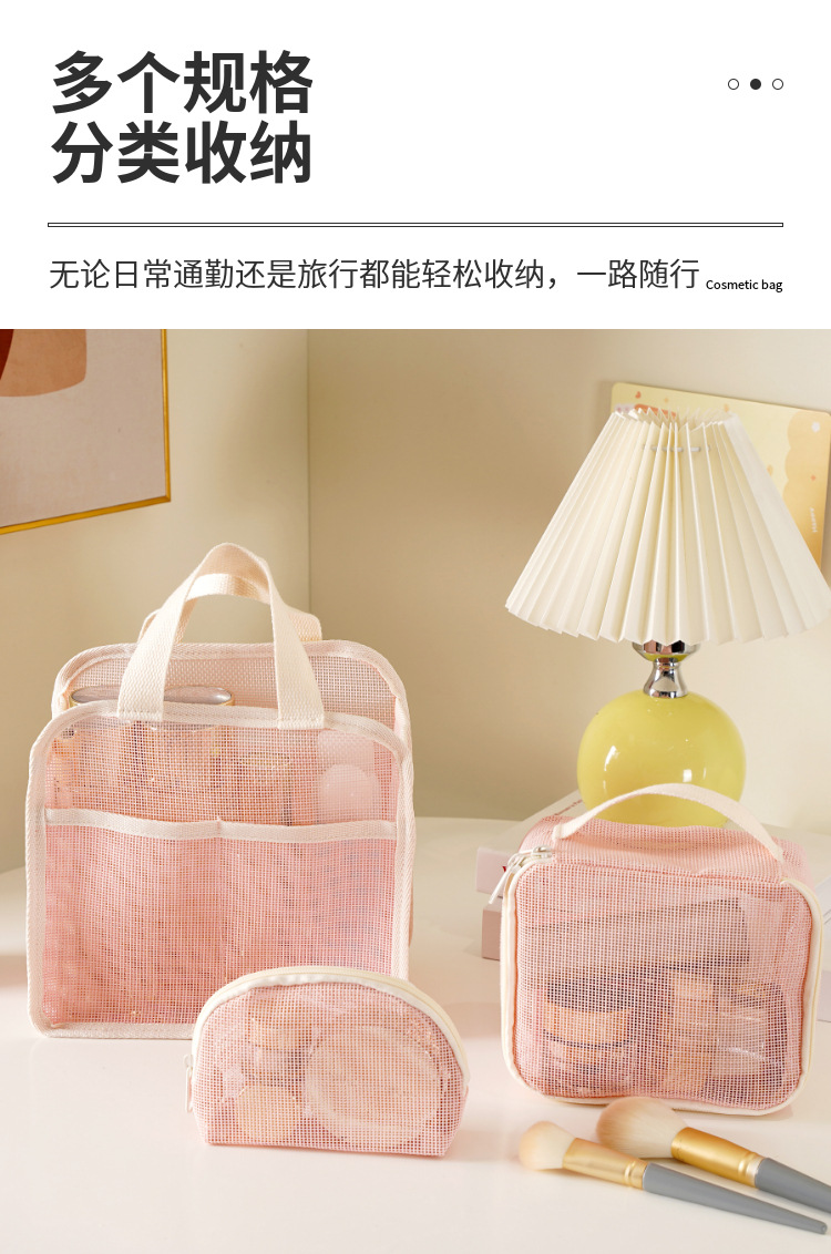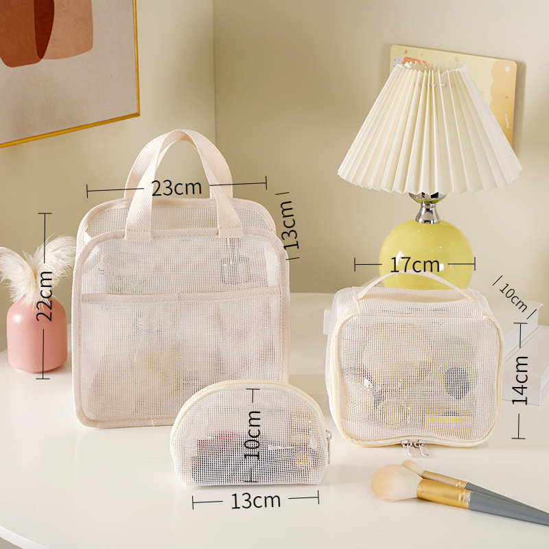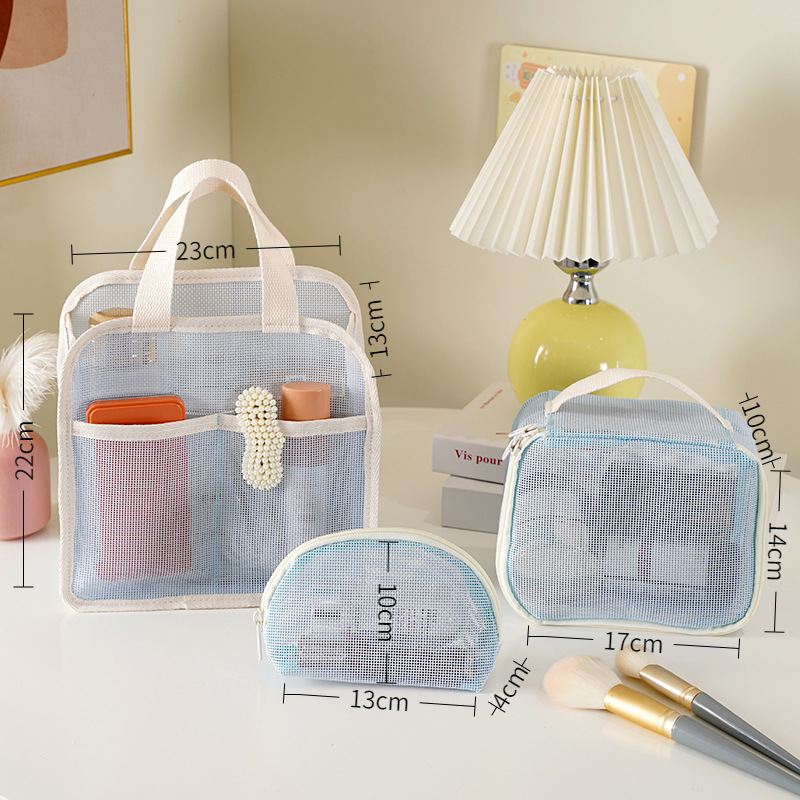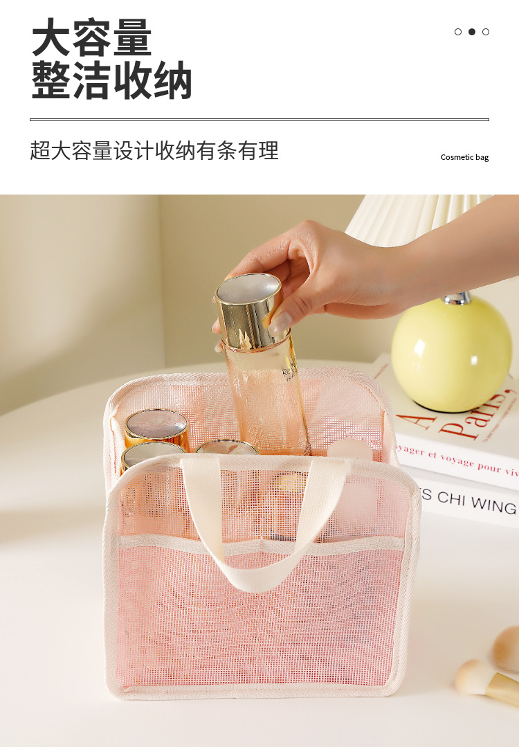 메이크업 보관 가방 일본과 한국 메쉬 대용량 세면 용품 가방 여행 통기성 배수 휴대용 화장품 가방 국경 간 인기 판매스토어 가기
