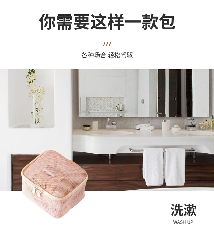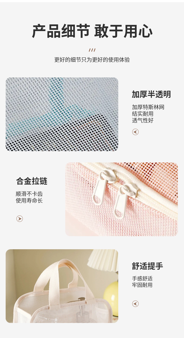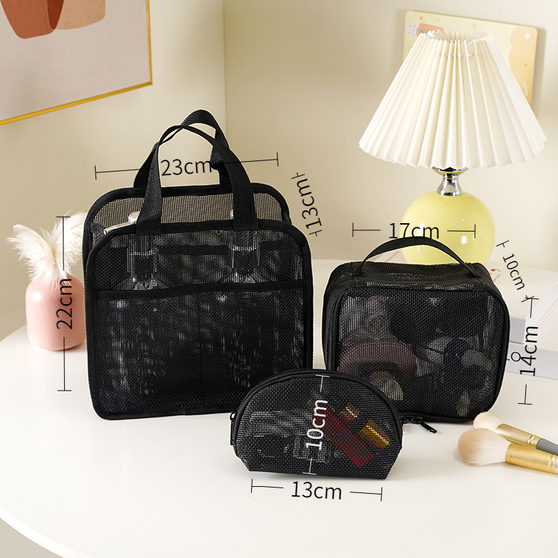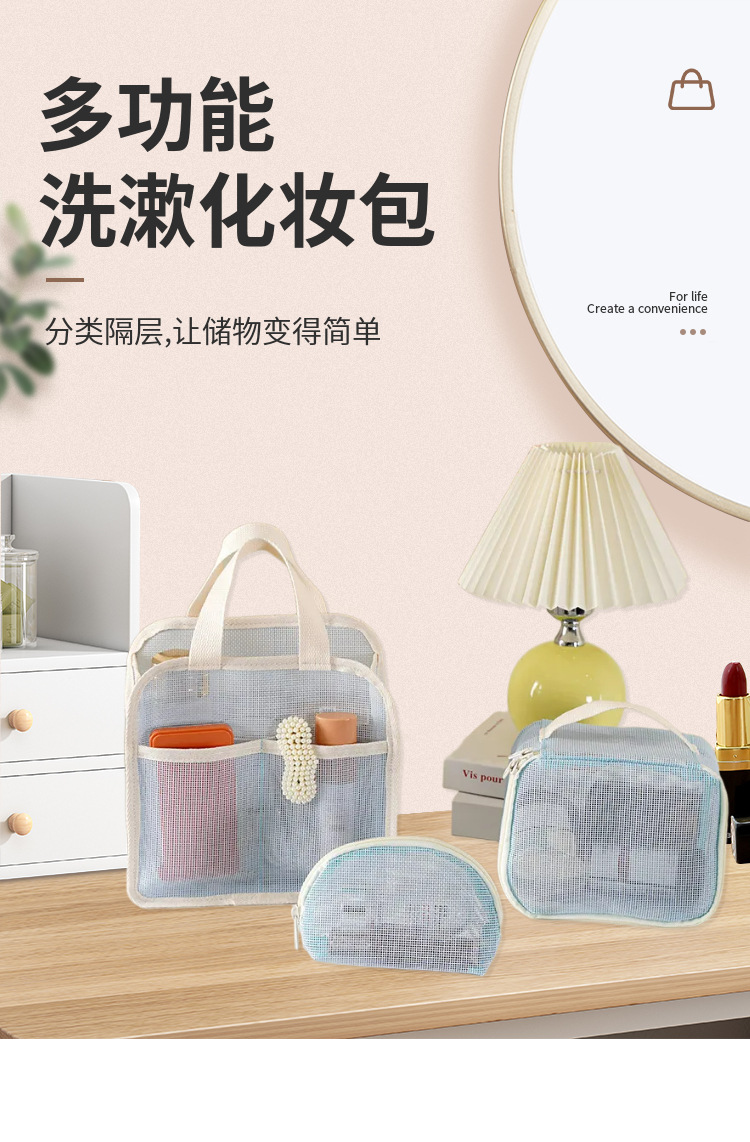 메이크업 보관 가방 일본과 한국 메쉬 대용량 세면 용품 가방 여행 통기성 배수 휴대용 화장품 가방 국경 간 인기 판매스토어 가기