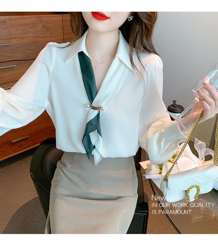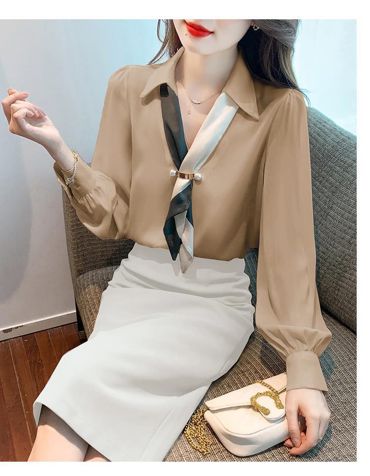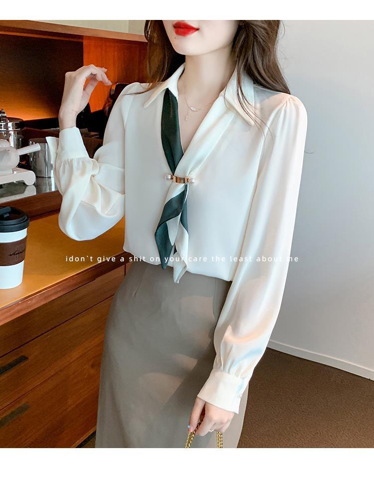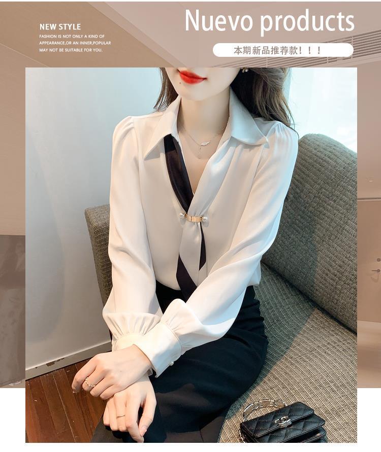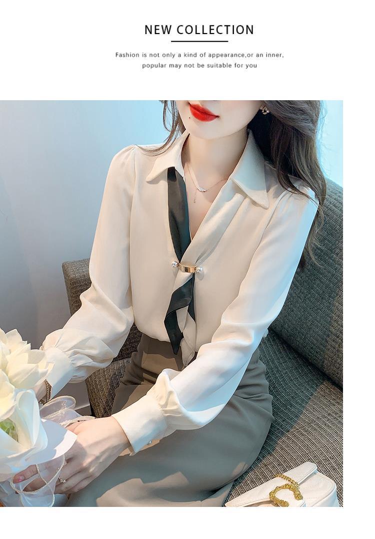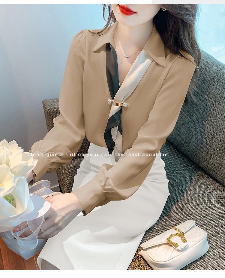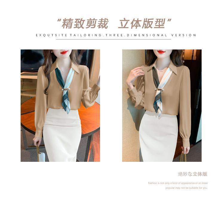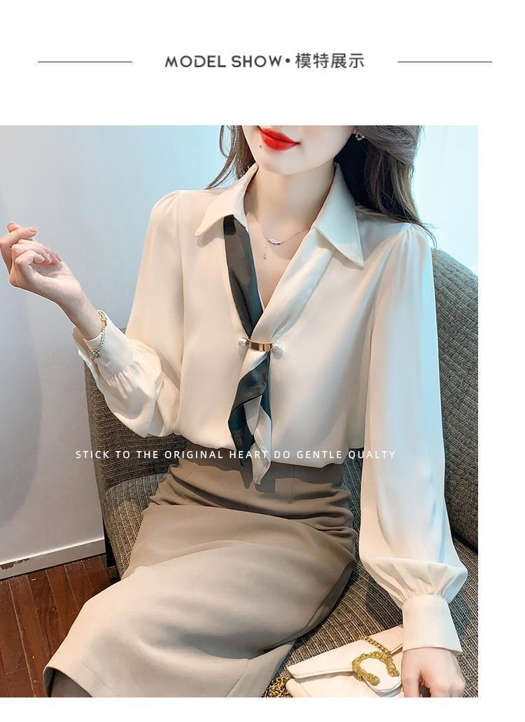 초가을 전문 쉬폰 셔츠 여성 가을 의류 2025 새로운 디자인 플러터 칼라 탑 가볍고 성숙한 스타일스토어 가기