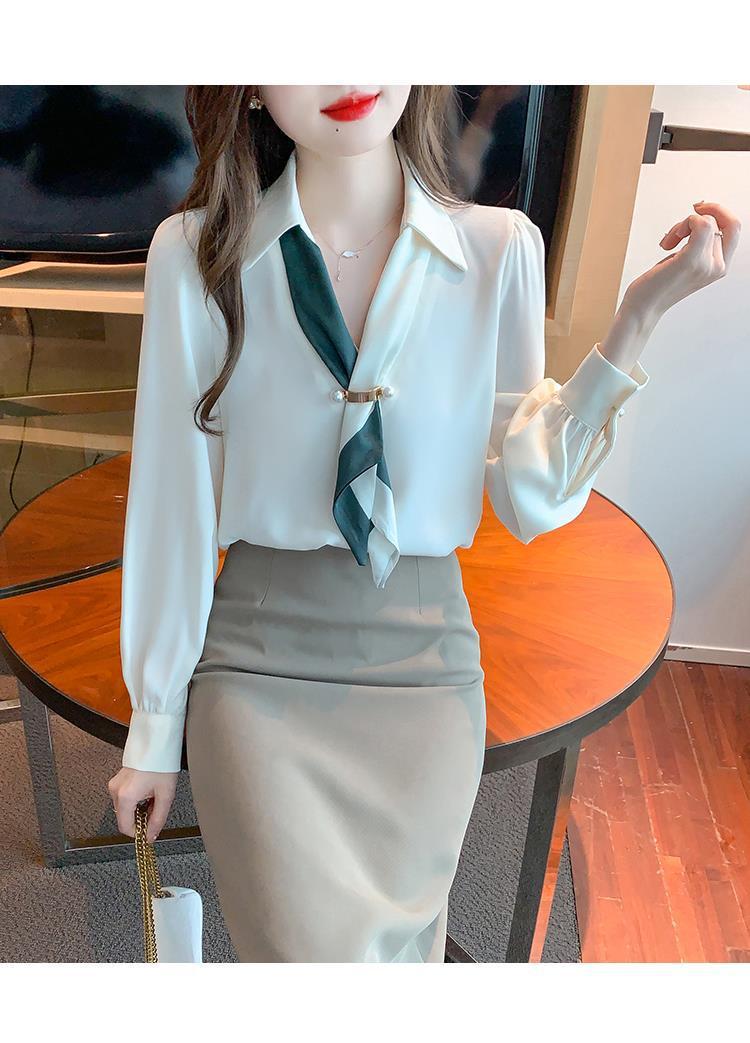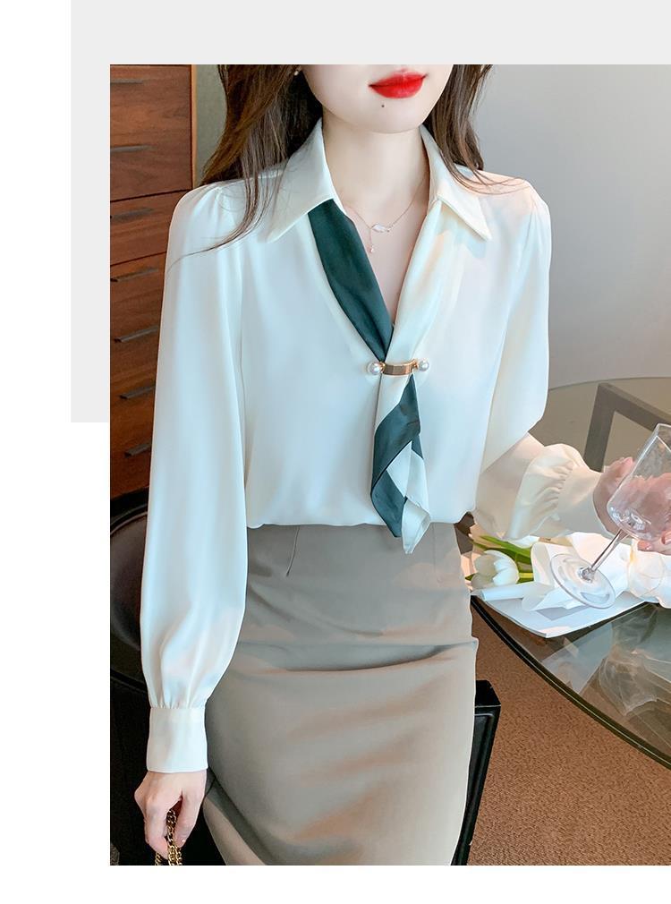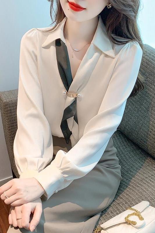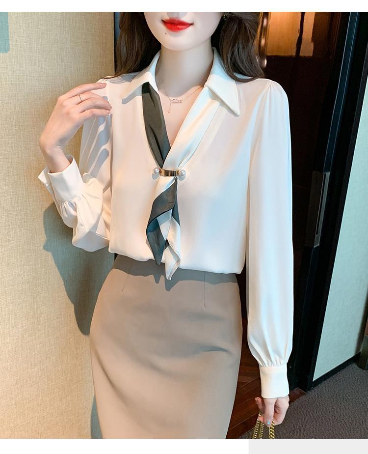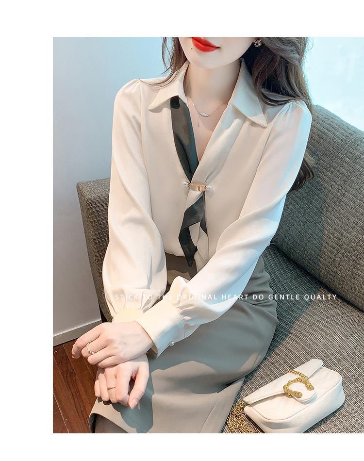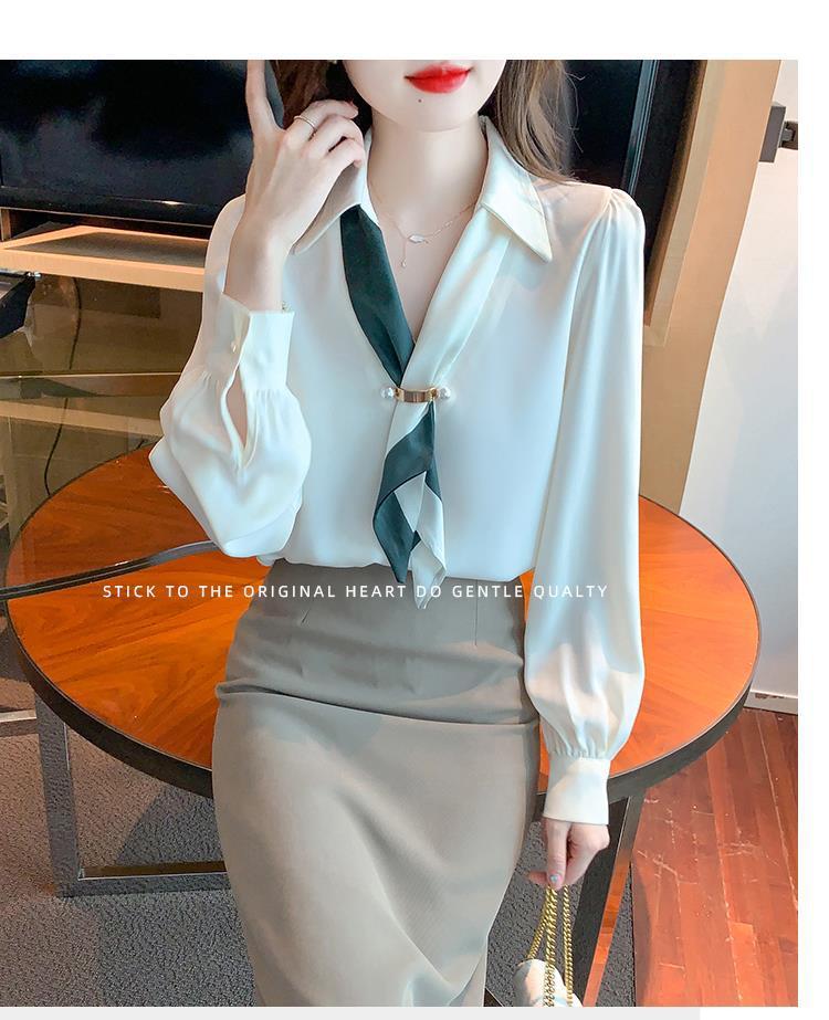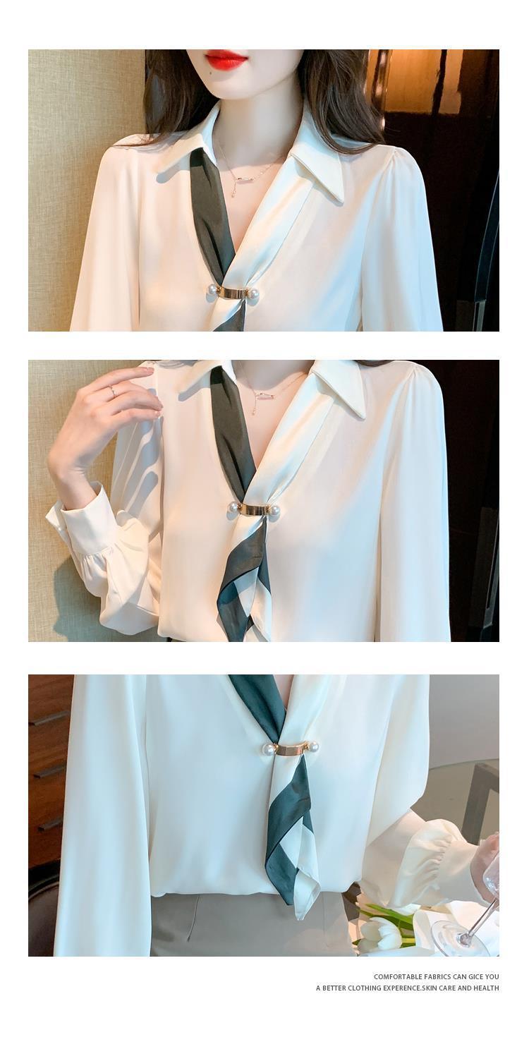 초가을 전문 쉬폰 셔츠 여성 가을 의류 2025 새로운 디자인 플러터 칼라 탑 가볍고 성숙한 스타일스토어 가기