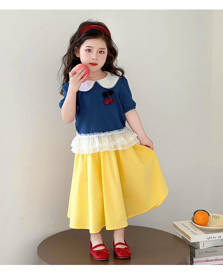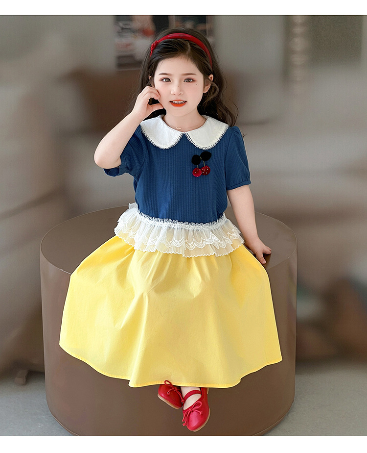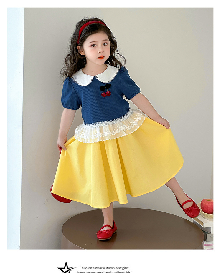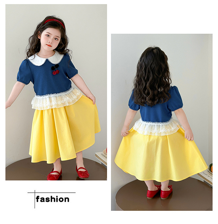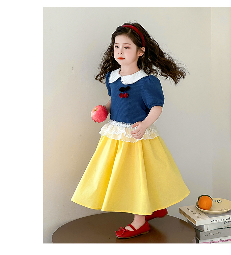 아동 의류 어린이 어린 소녀 스플 라이스 레이스 보우 스커트 소녀 백설 공주 스커트 스웨터 탑 슈트