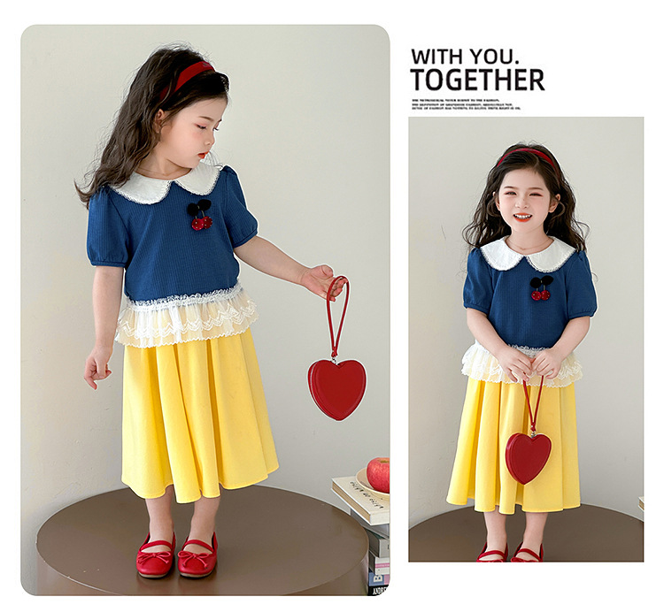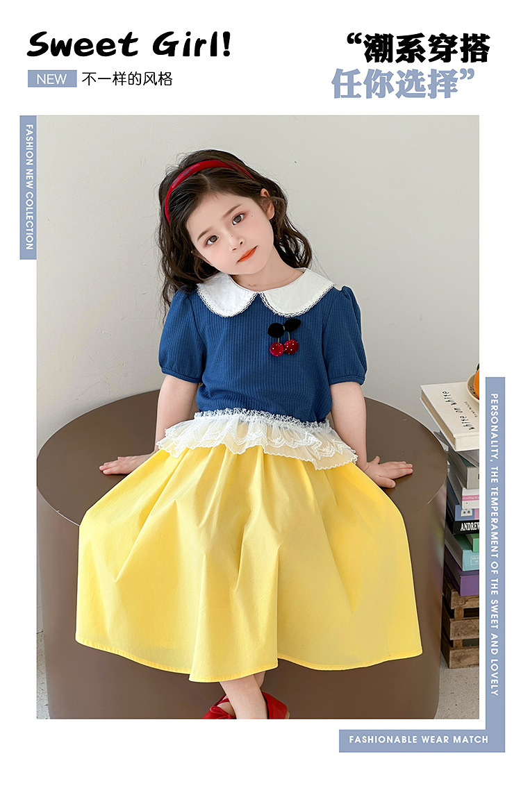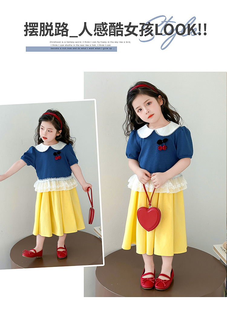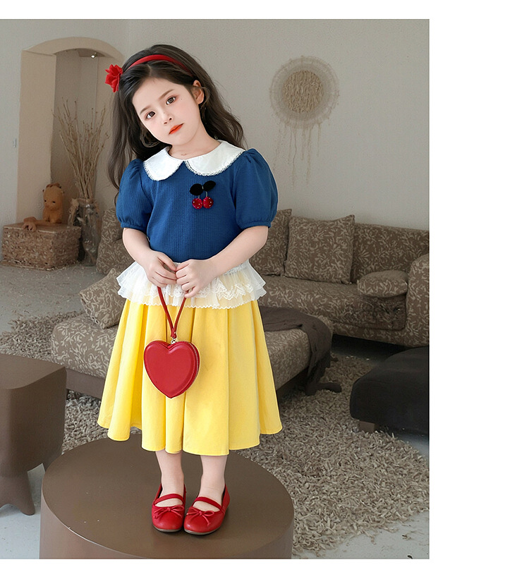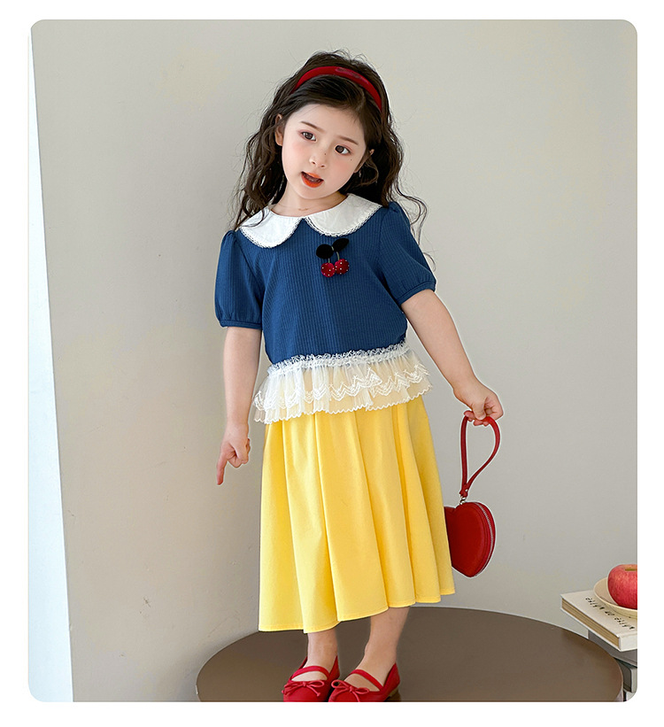 아동 의류 어린이 어린 소녀 스플 라이스 레이스 보우 스커트 소녀 백설 공주 스커트 스웨터 탑 슈트