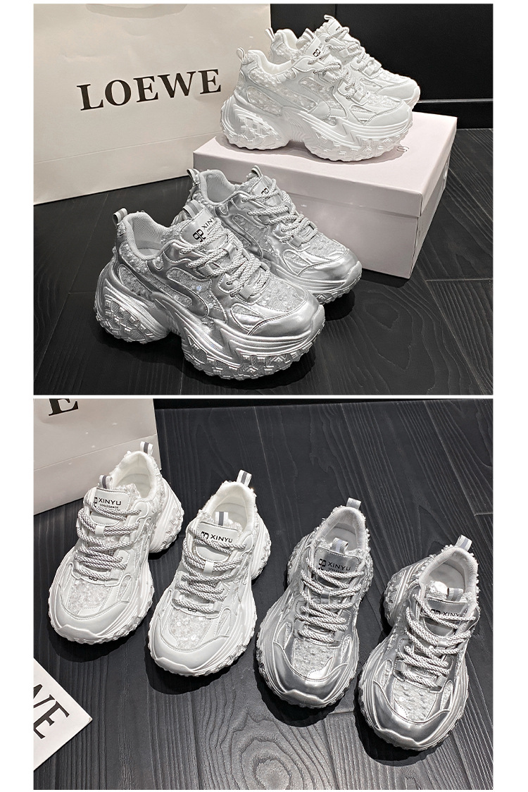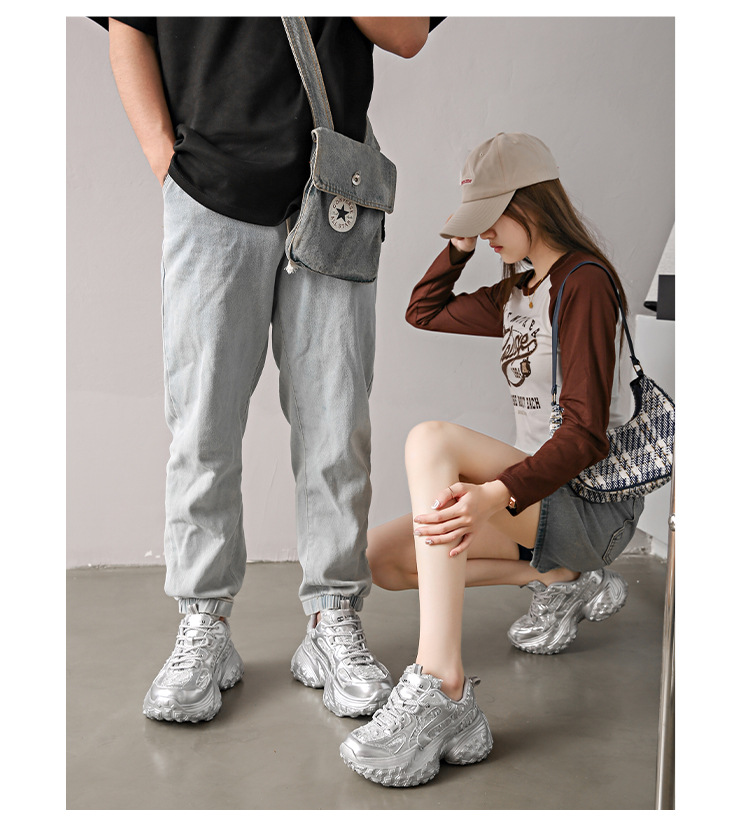 두리안 타이어 밑창 스팽글 통기성 인터넷 연예인 아빠 신발 여성 여름 신작 스포츠 캐주얼 신발 두꺼운 밑창 커플 남성 신발