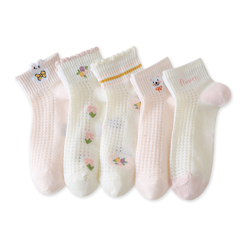여름 메쉬 얇은 어린이 양말 만화 강아지와 고양이 귀여운 구멍 짧은 소녀 아기 양말