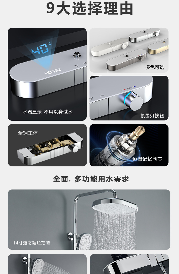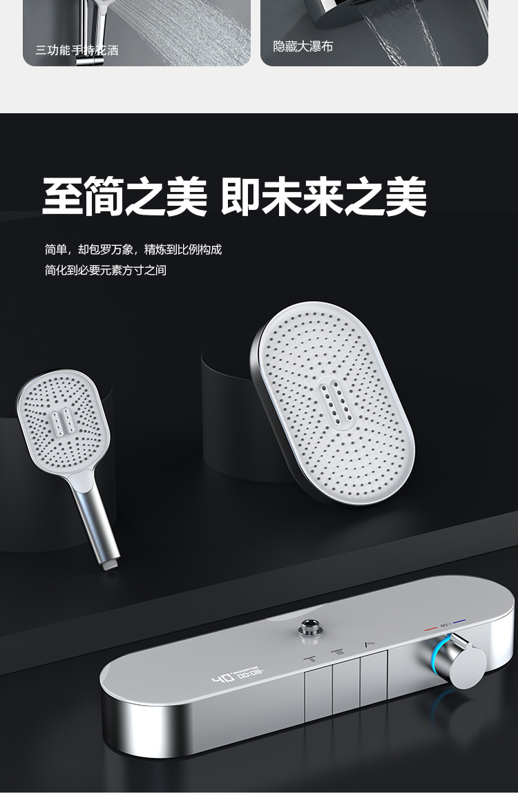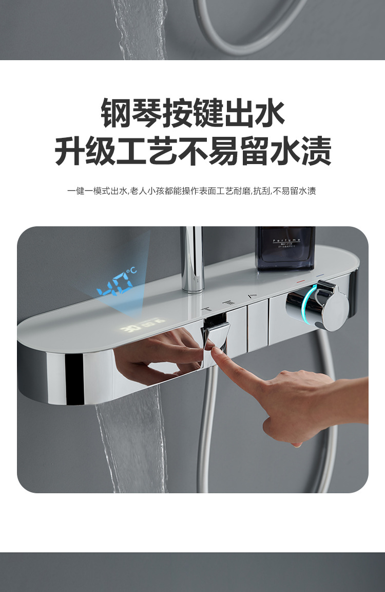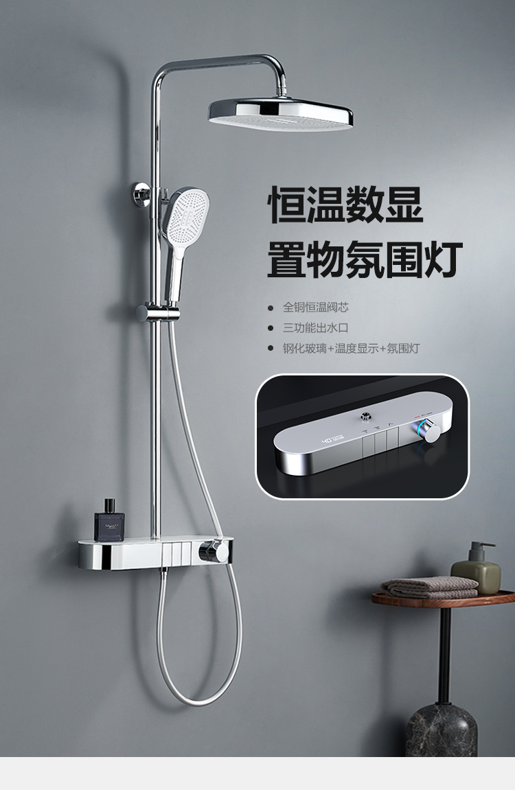 분위기 조명 전체 구리 샤워 피아노 키 샤워 가정용 일정한 온도 부스터 노즐 욕실 레인 샤워